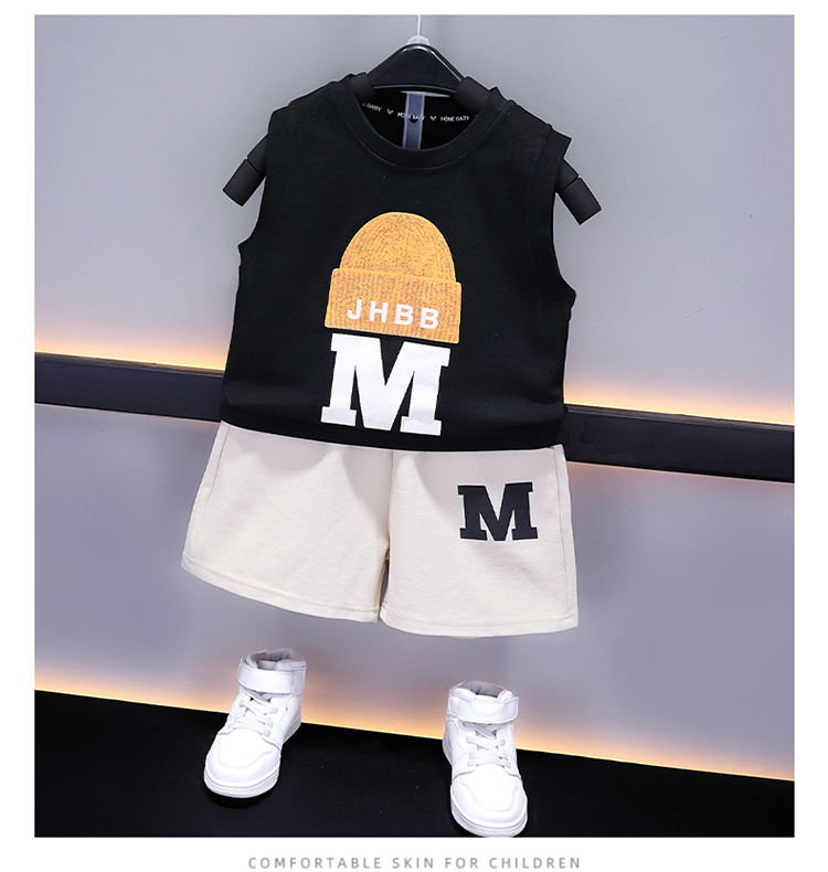 소년 여름 얇은 조끼 정장 2025 여름 어린이 멋진 민소매 탑과 반바지 투피스 세트