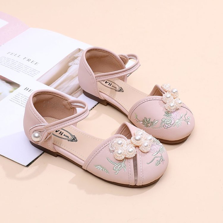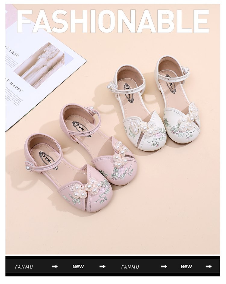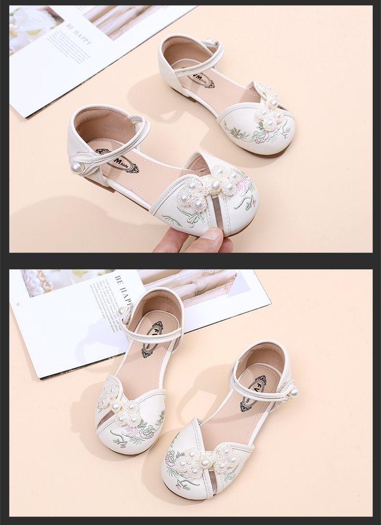 여자 한푸 신발 어린이 바오 터우 서양식 공주 샌들 2025 여름 새 여자 신발 자수 가죽 신발 트렌디