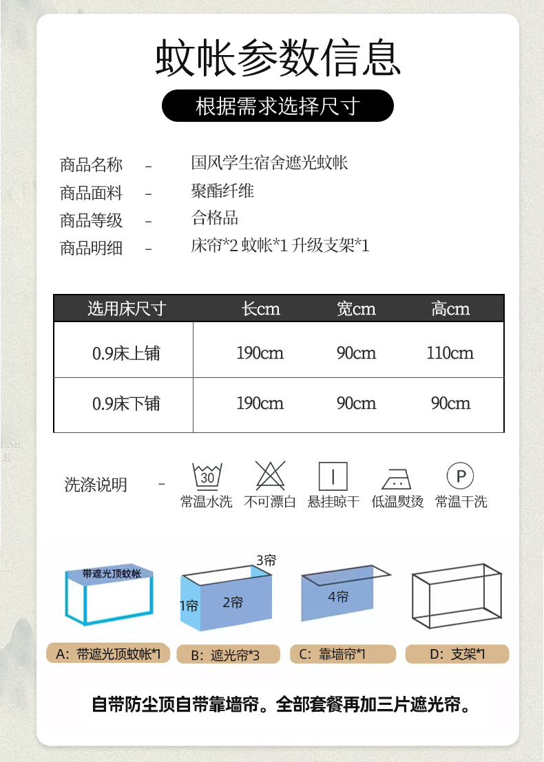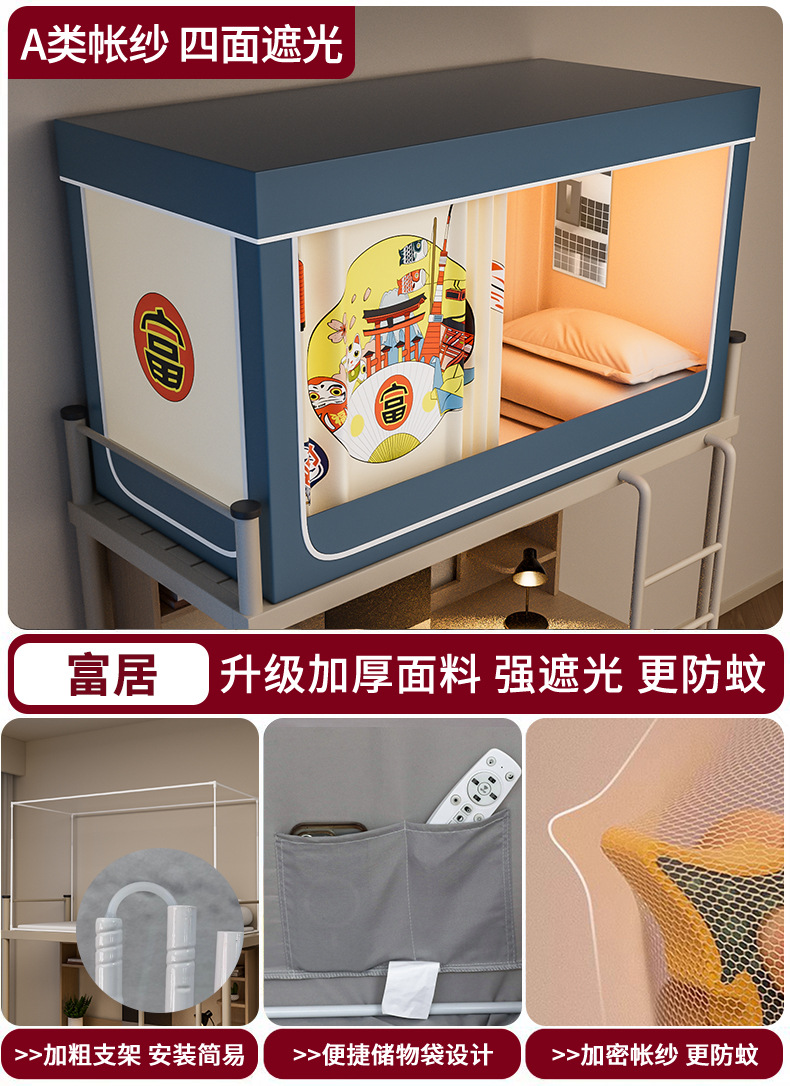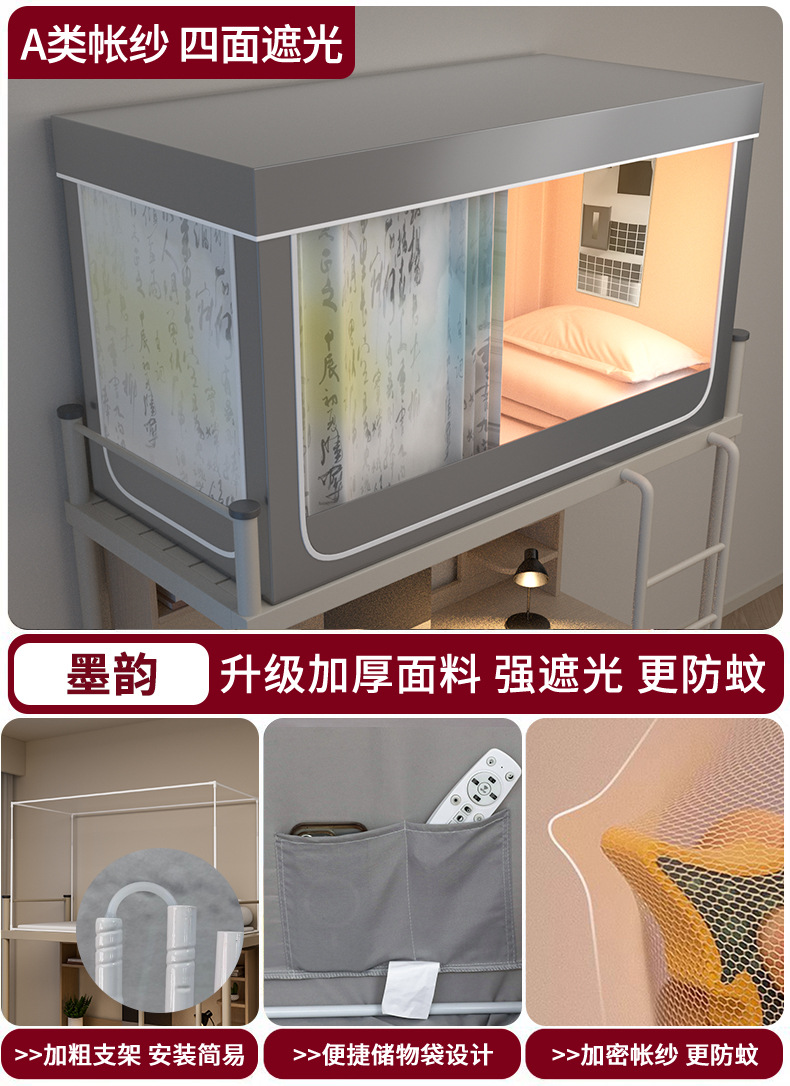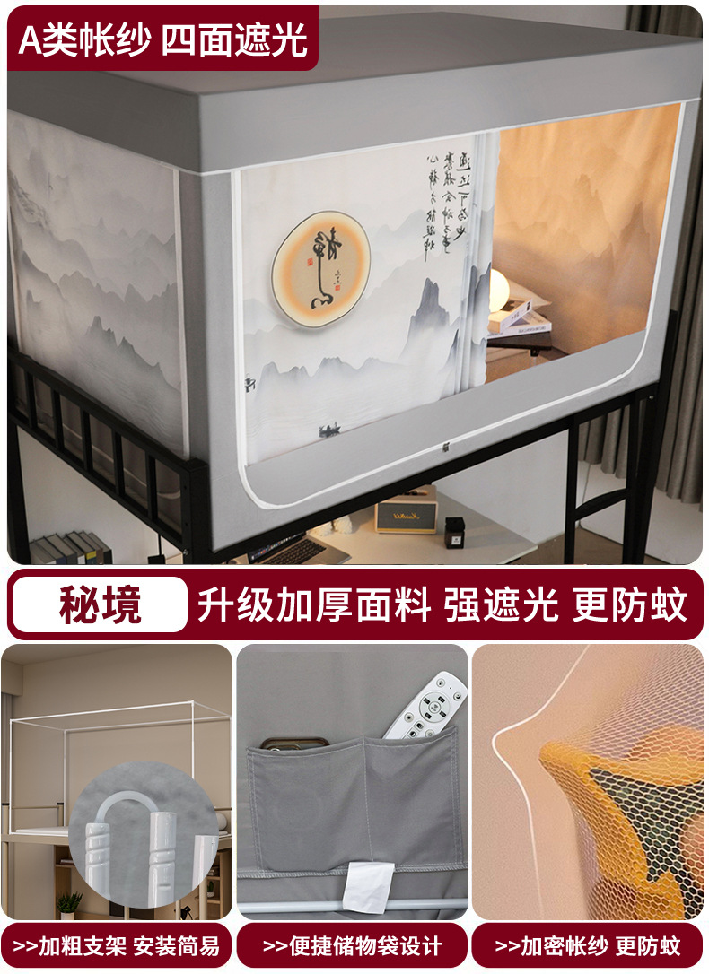 학생 기숙사 침대 차광 커튼 모기장 중국풍 만화 대학생 기숙사 모기 방지 프라이버시 차광용품