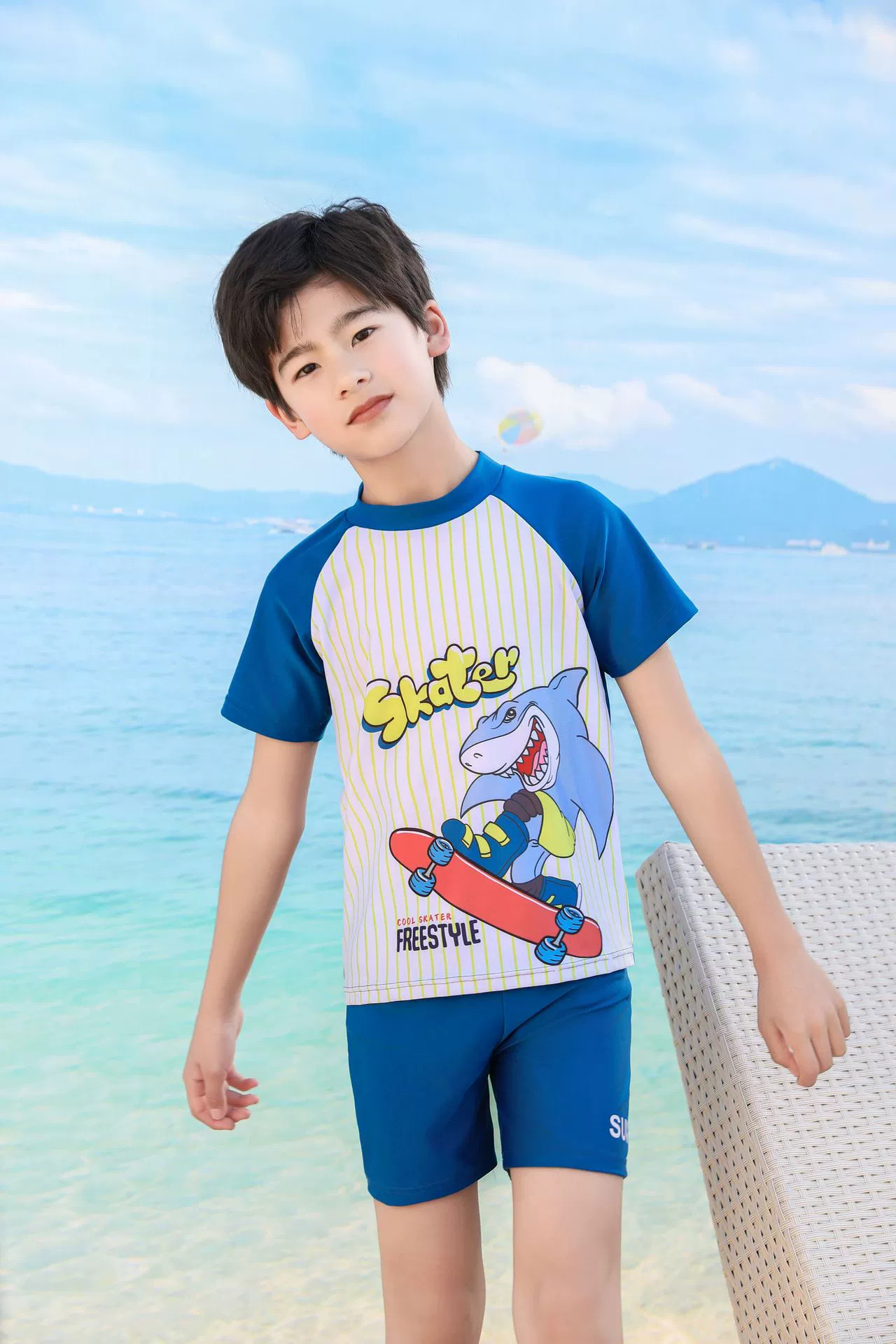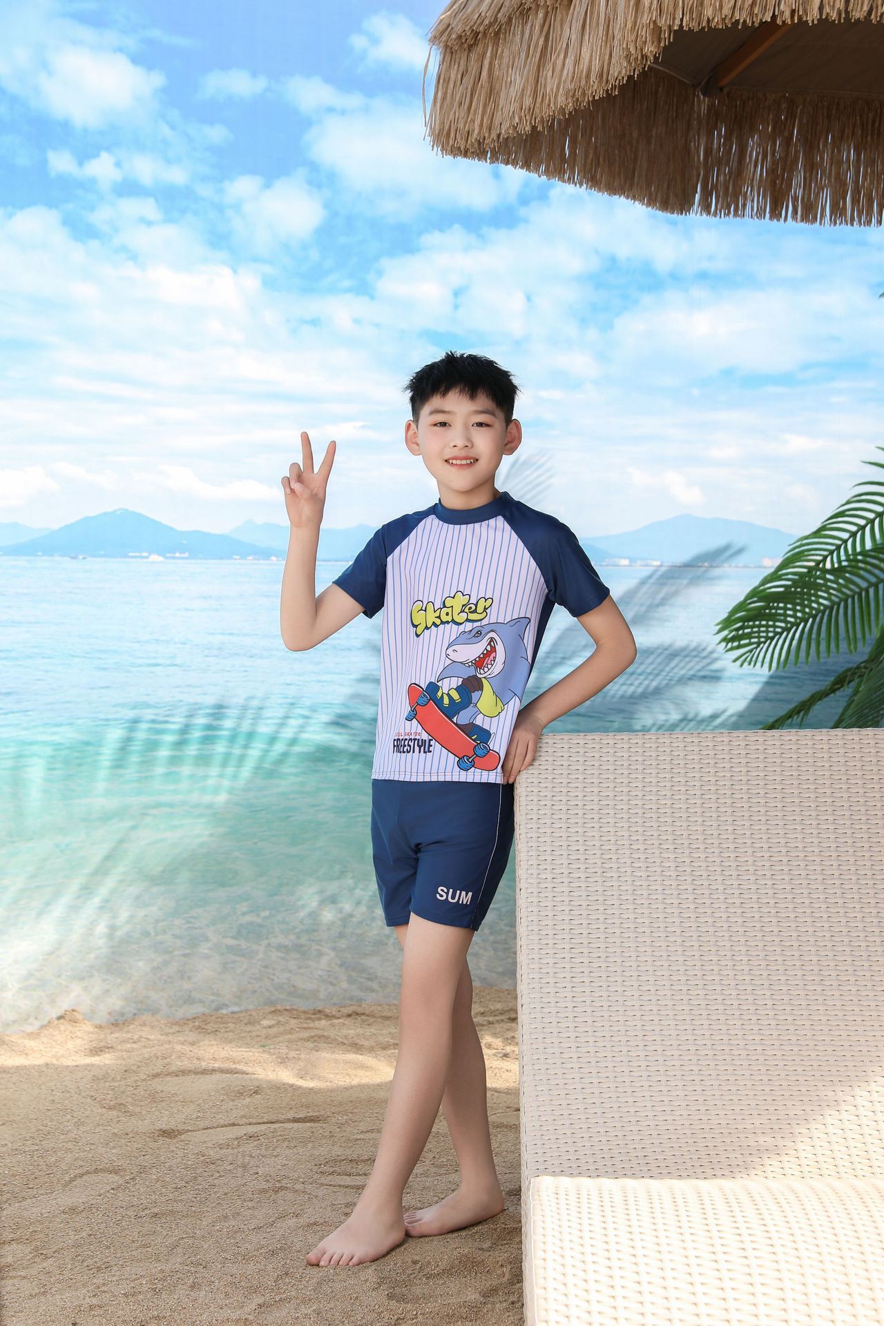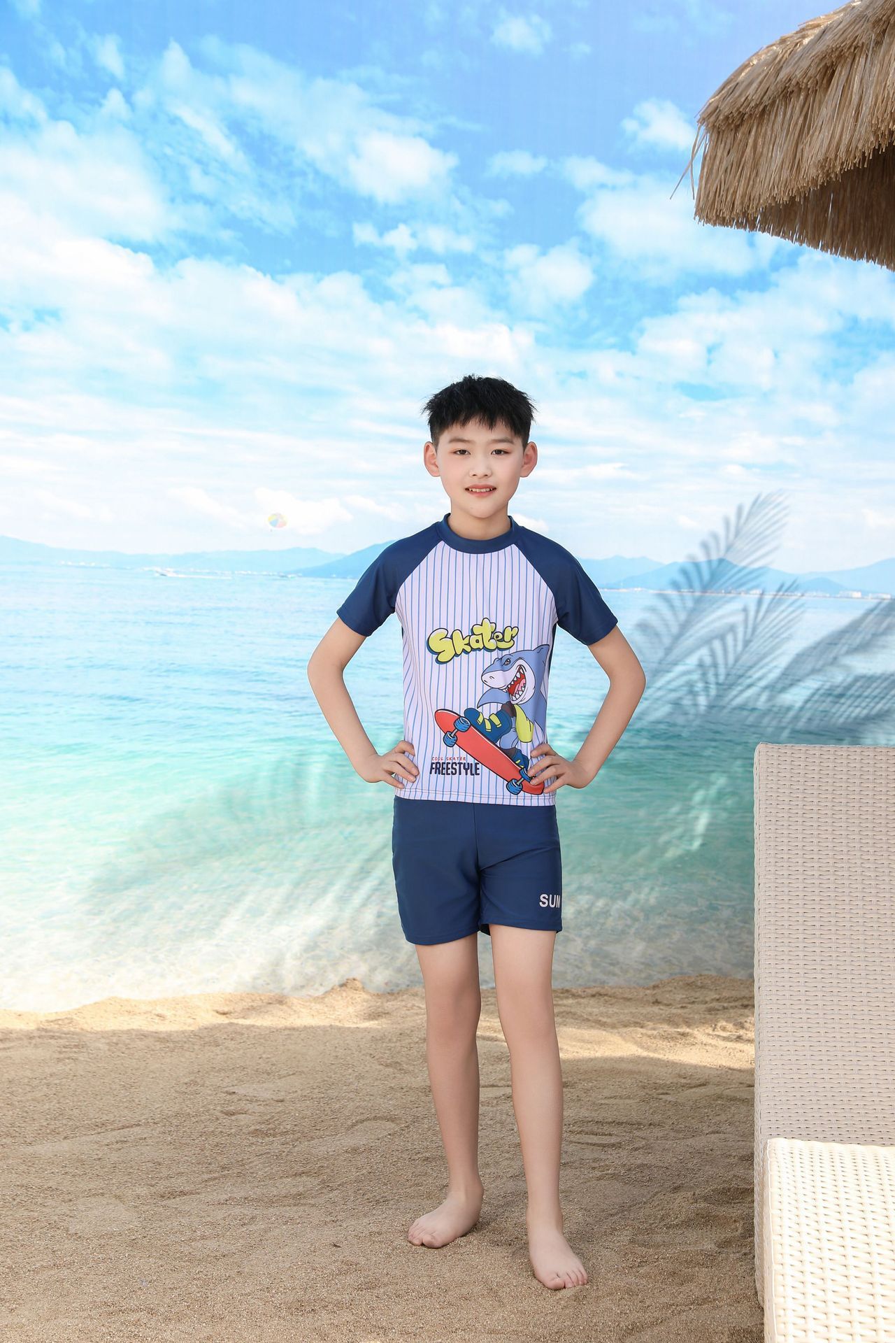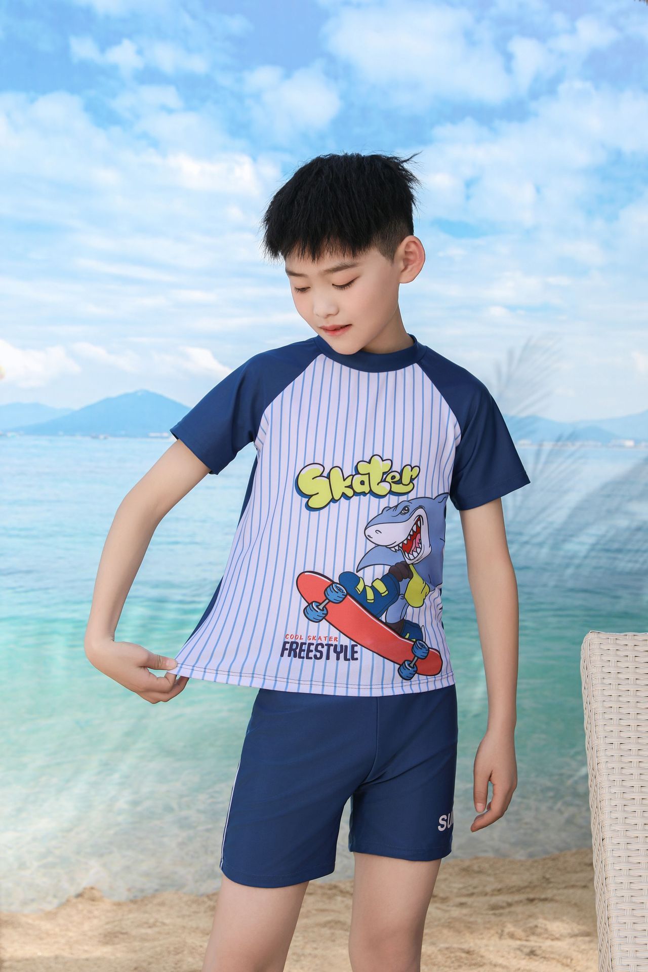 어린이 수영복 소년 중 큰 어린이 분할 태양 방지 빠른 건조 수영복 수영 트렁크 만화 소년 수영 세트 새로운 스타일스토어 가기