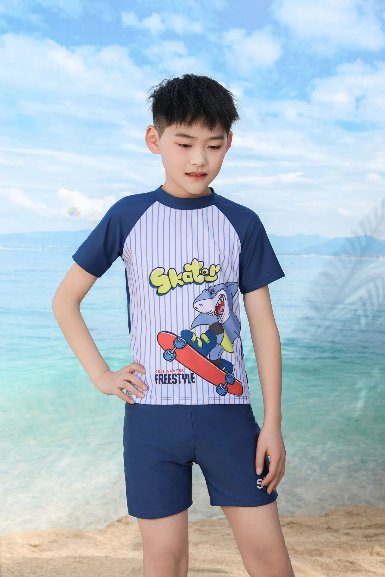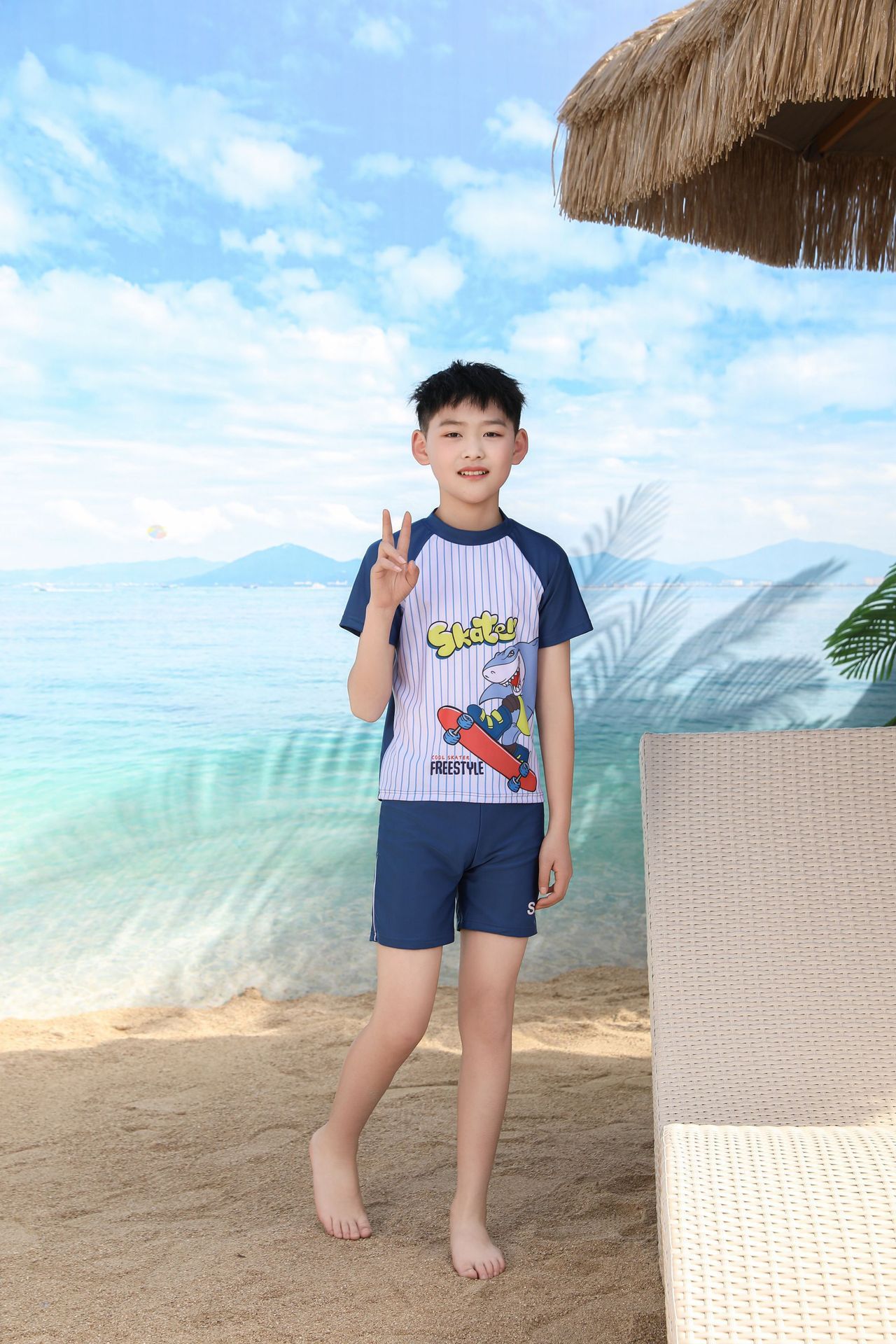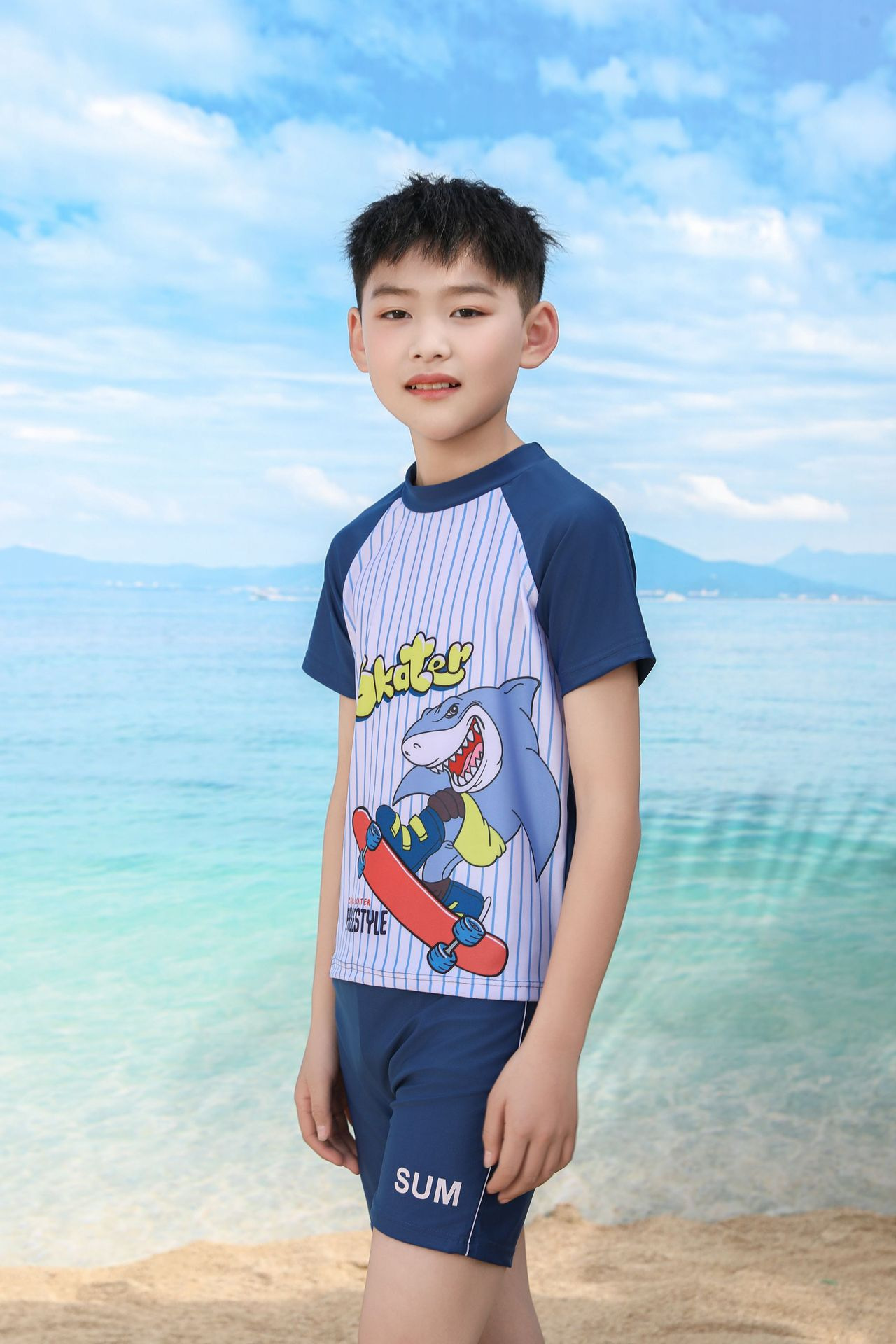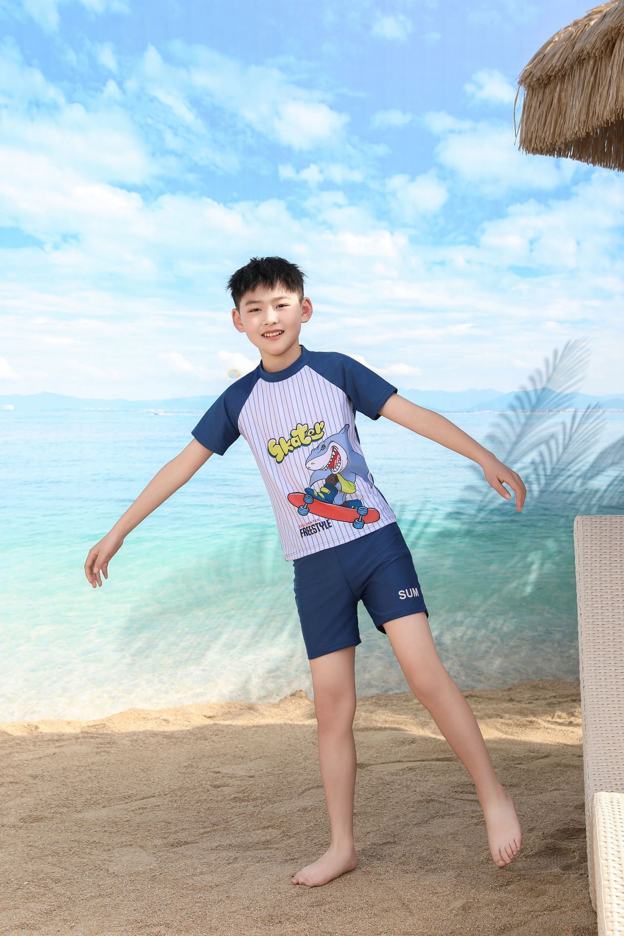 어린이 수영복 소년 중 큰 어린이 분할 태양 방지 빠른 건조 수영복 수영 트렁크 만화 소년 수영 세트 새로운 스타일스토어 가기