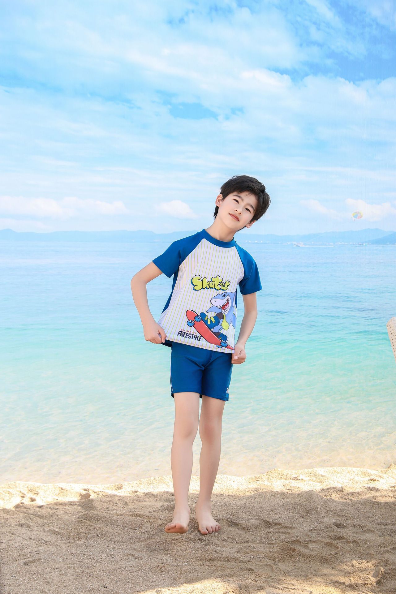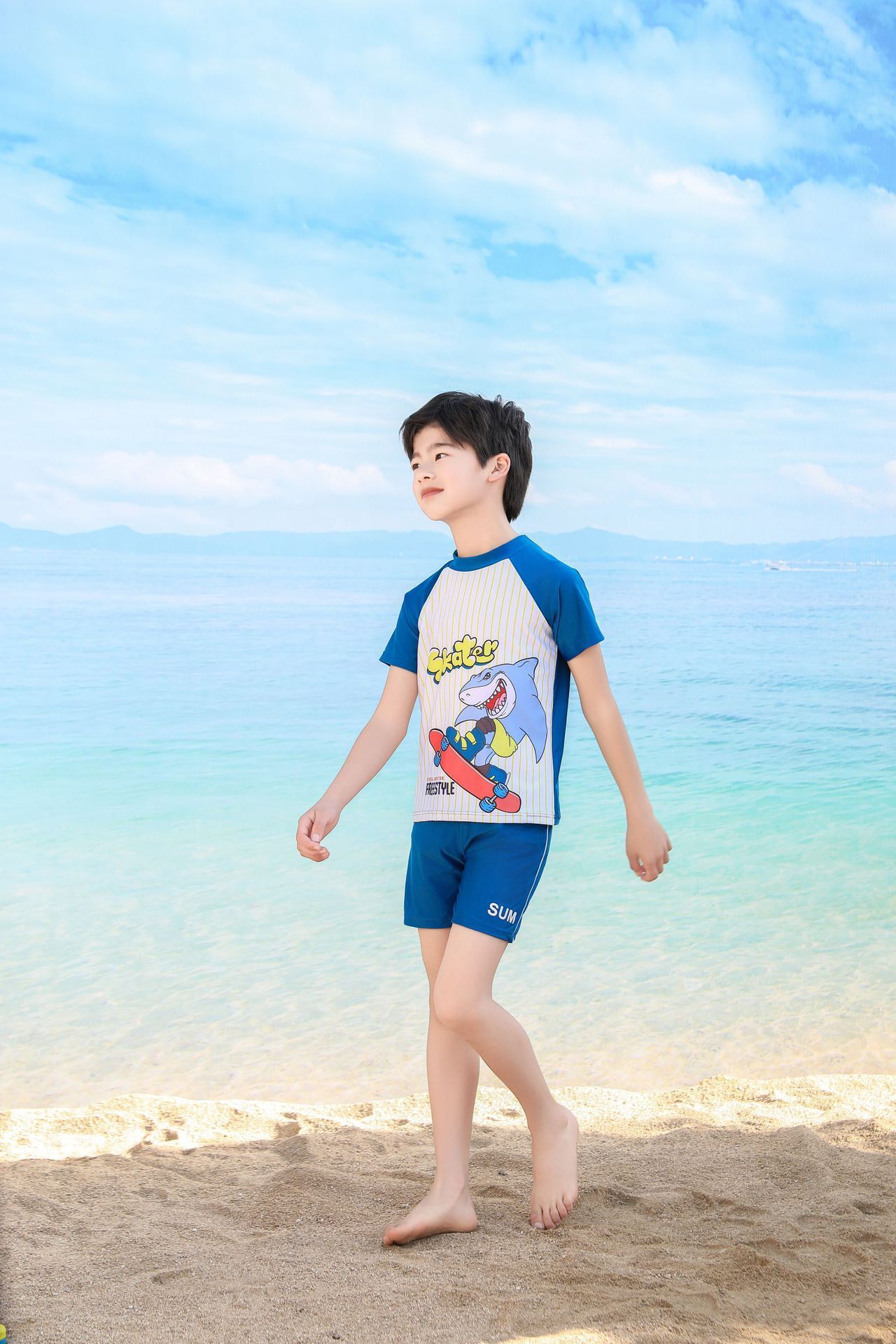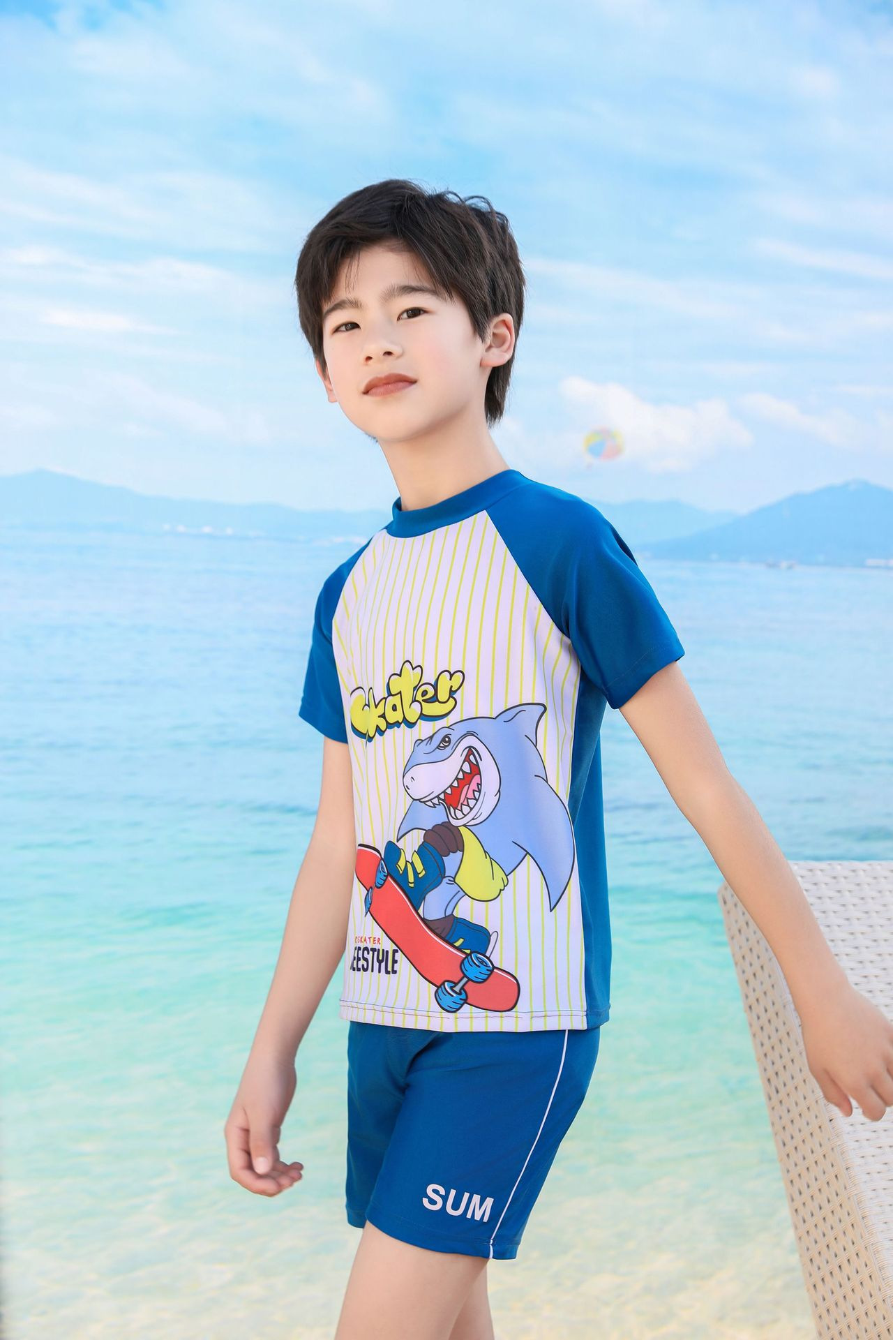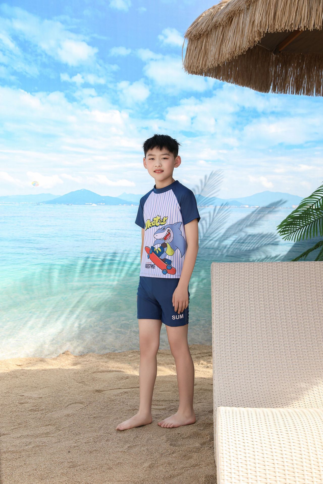어린이 수영복 소년 중 큰 어린이 분할 태양 방지 빠른 건조 수영복 수영 트렁크 만화 소년 수영 세트 새로운 스타일스토어 가기
