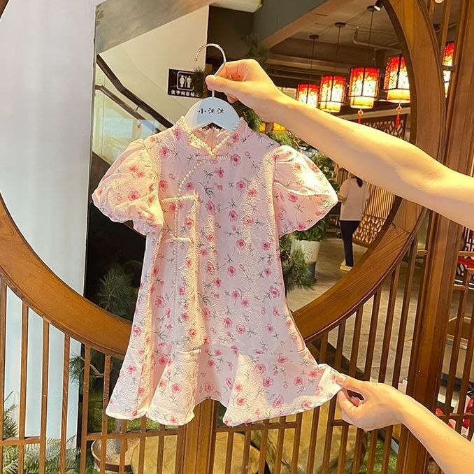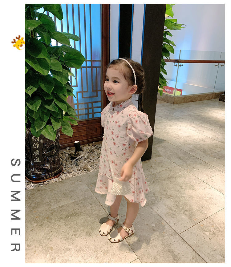 여자 드레스 새로운 복고풍 여름 어린이 스타일 치파오 공주 스커트 어린이 Hanfu 아기 소녀 여름 드레스