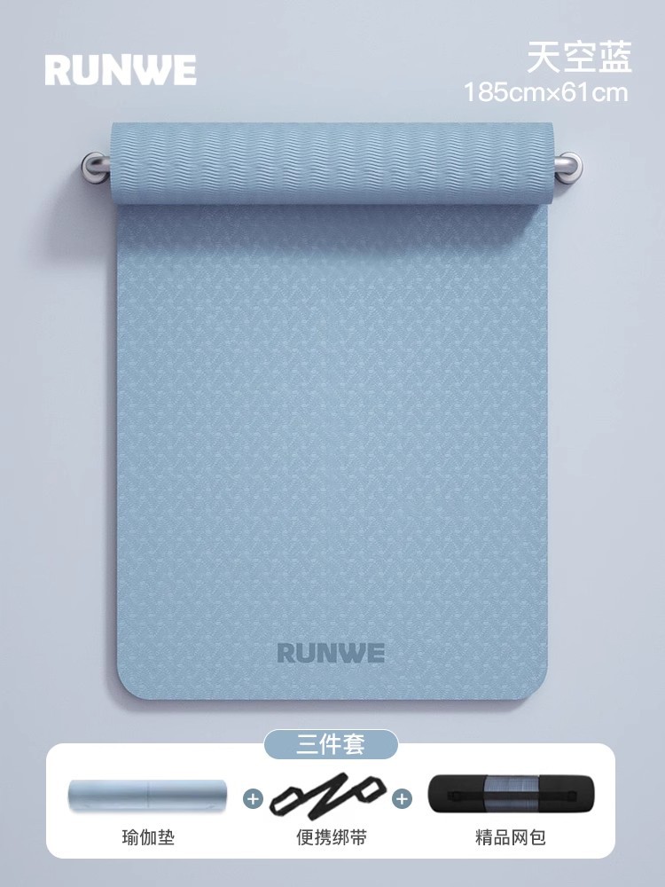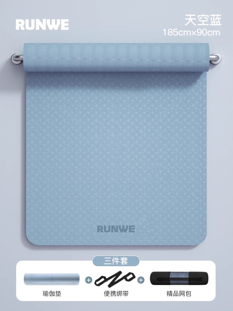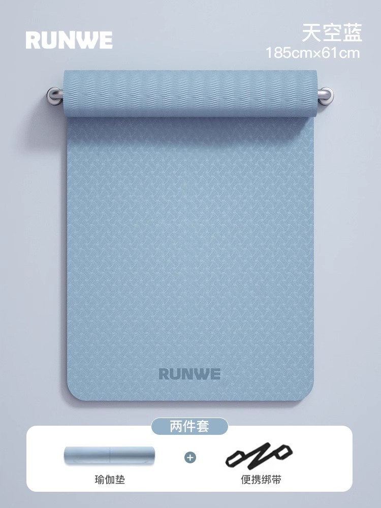 • 스카이블루 185*61cm 3종세트 [요가매트+수납가방+스트랩]두꺼워짐/미끄럼방지/항균