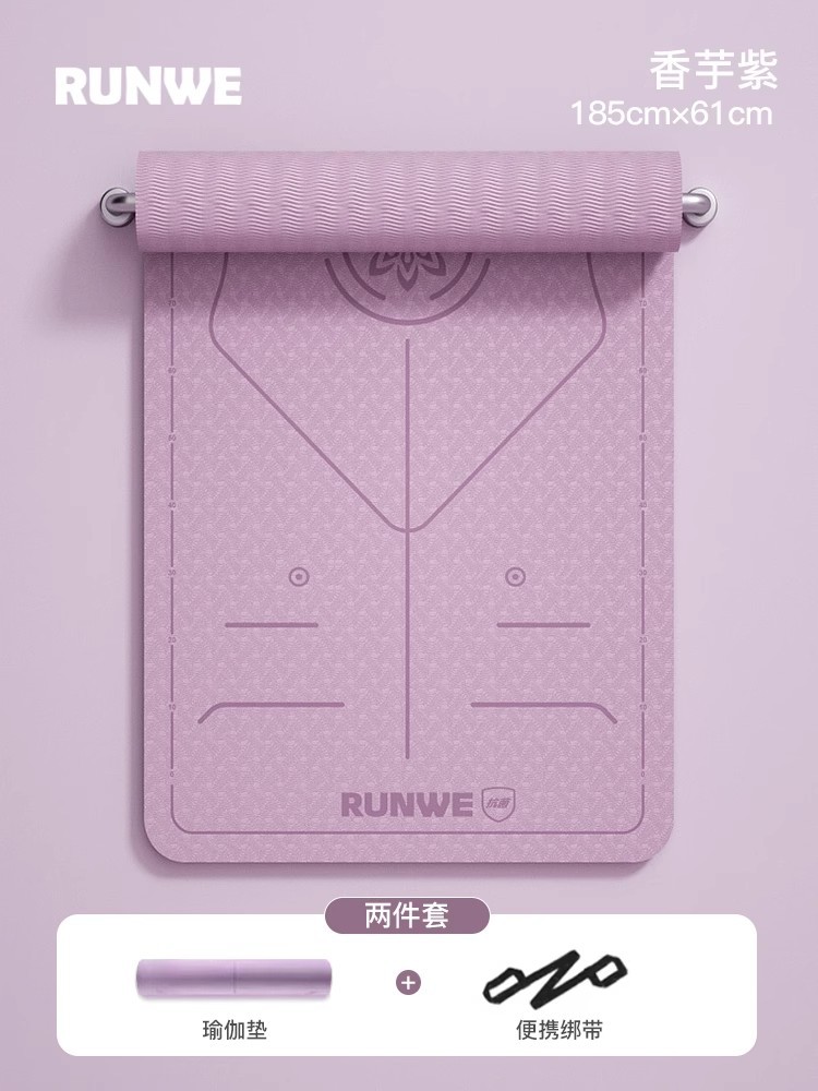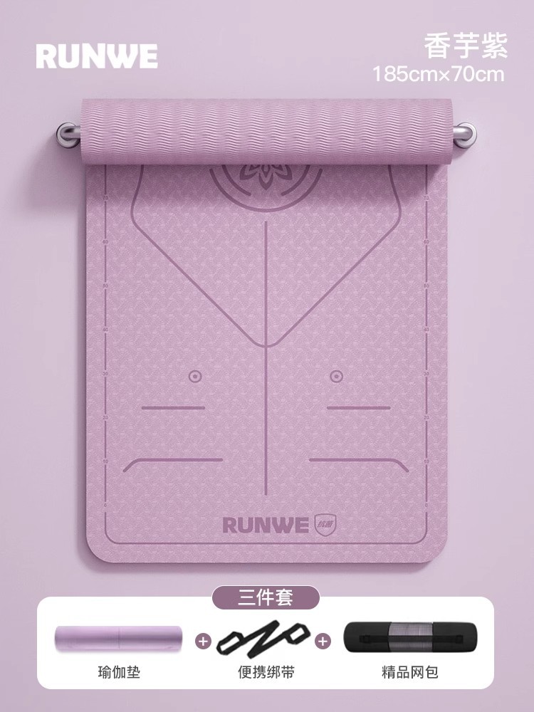 • 타로 퍼플 185*61cm 자세라인 3종세트 [요가매트+수납가방+스트랩]두꺼워짐/미끄럼방지/항균