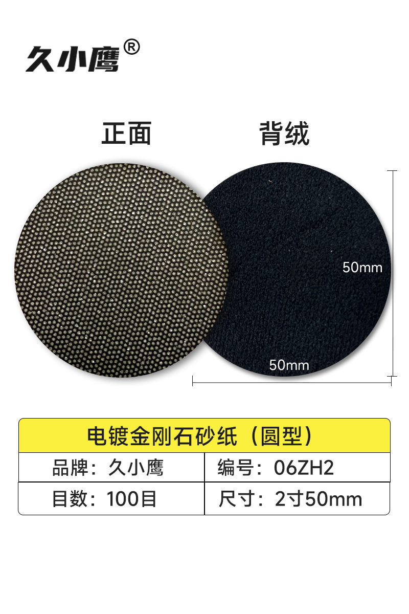 Jiu Xiaoying 전기 도금 다이아몬드 사포 천 연마 시트 둥근 벨벳 연마 금속 밸브 세라믹 2 인치 50mm