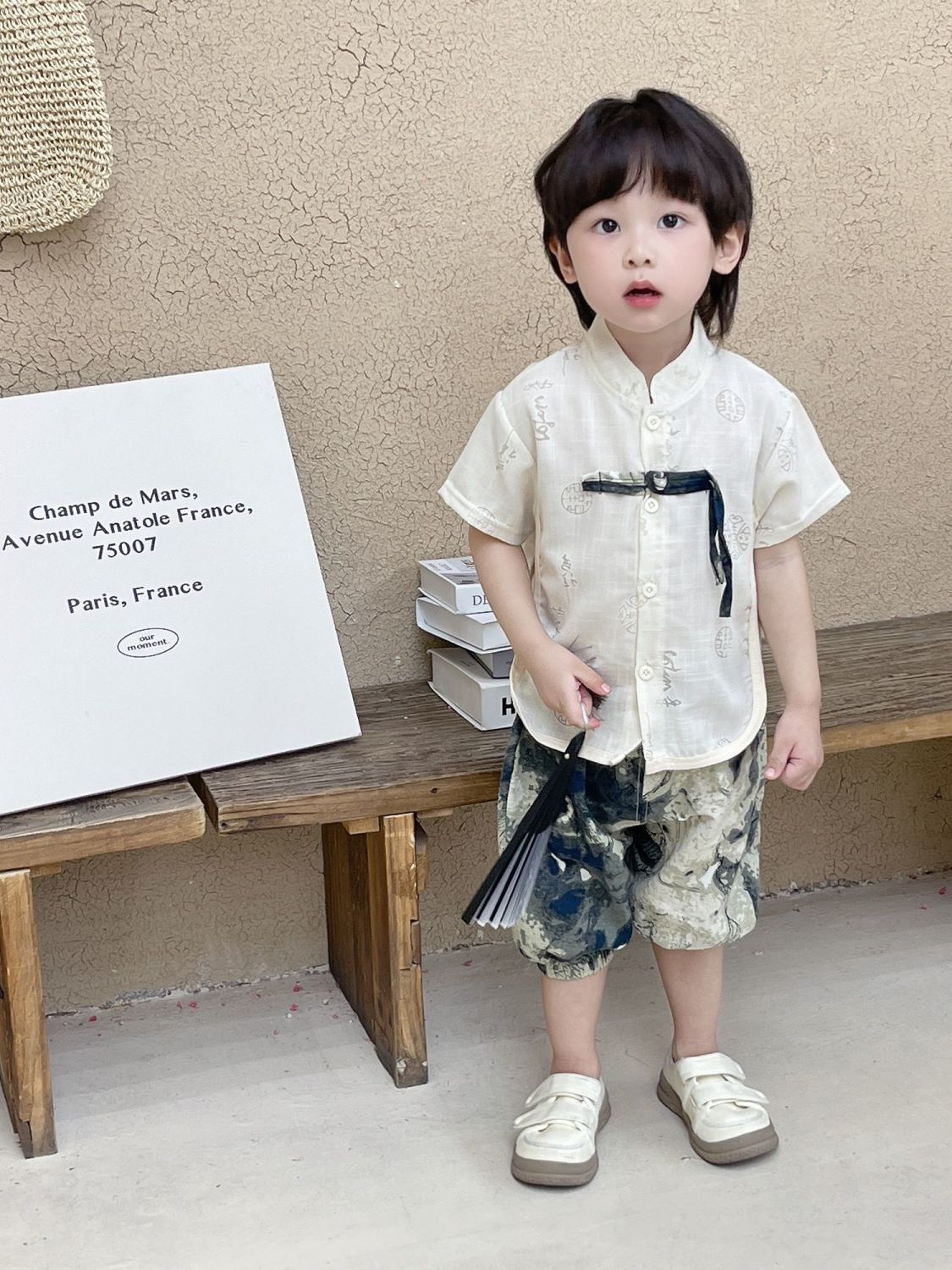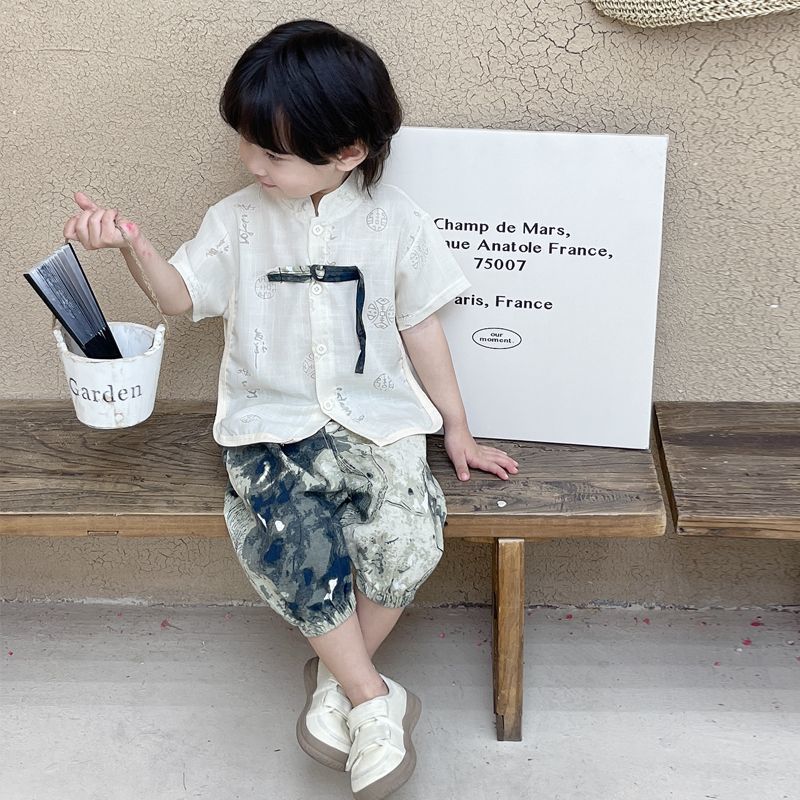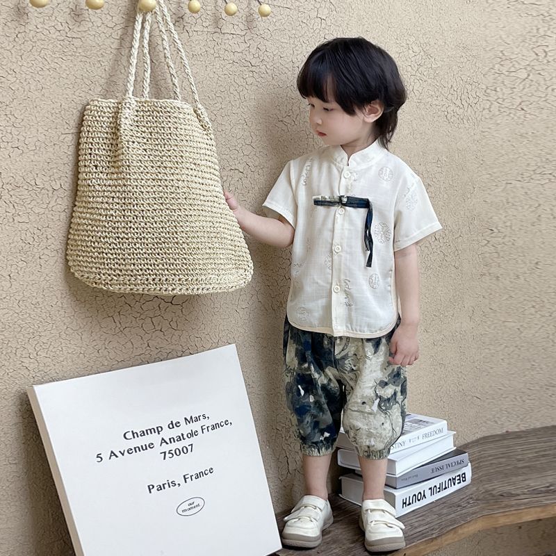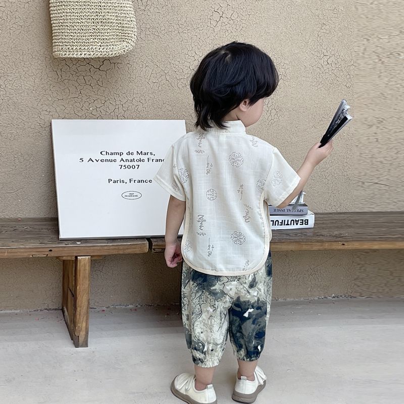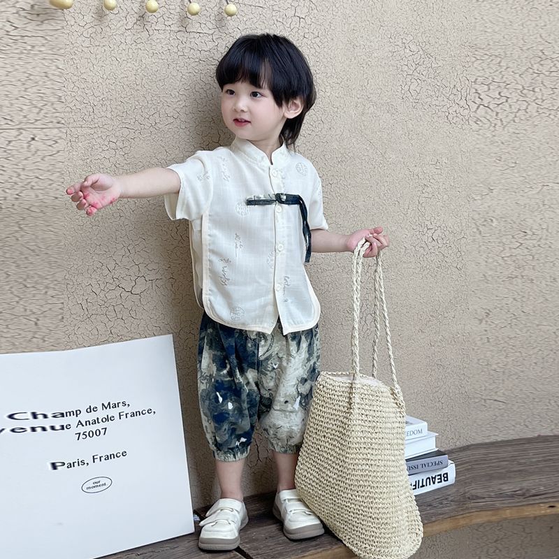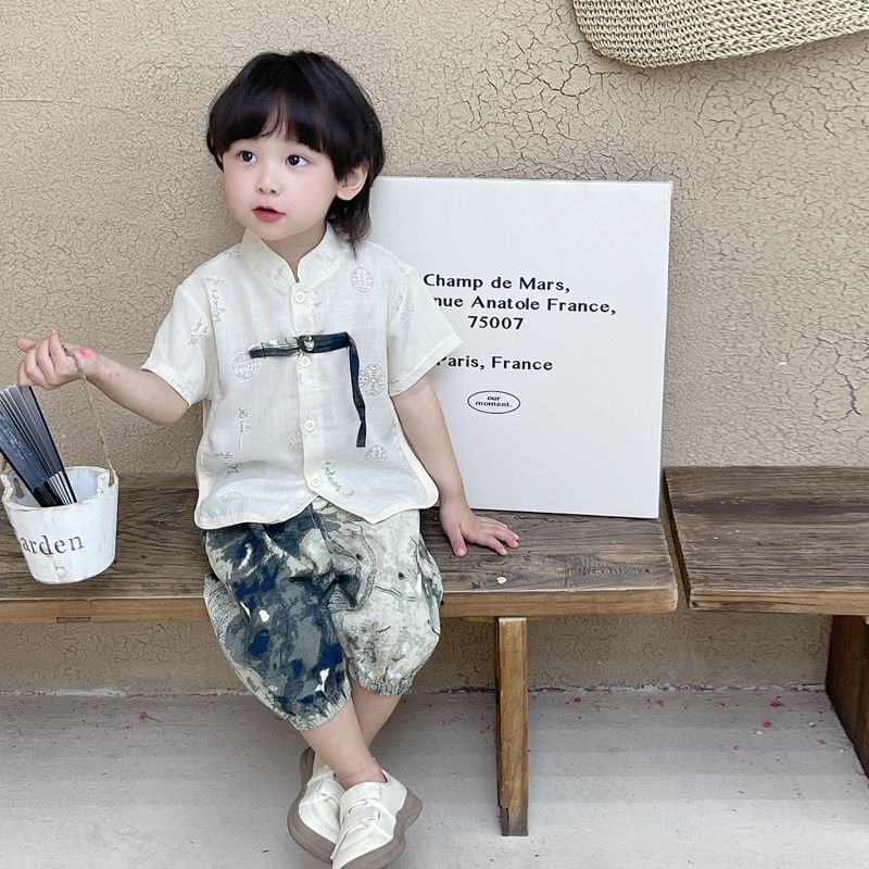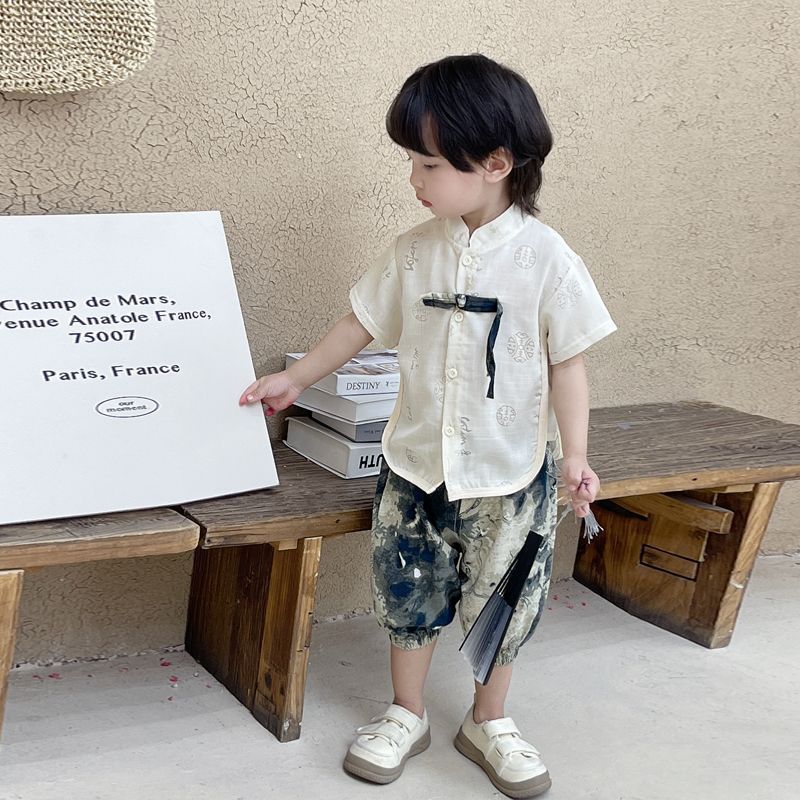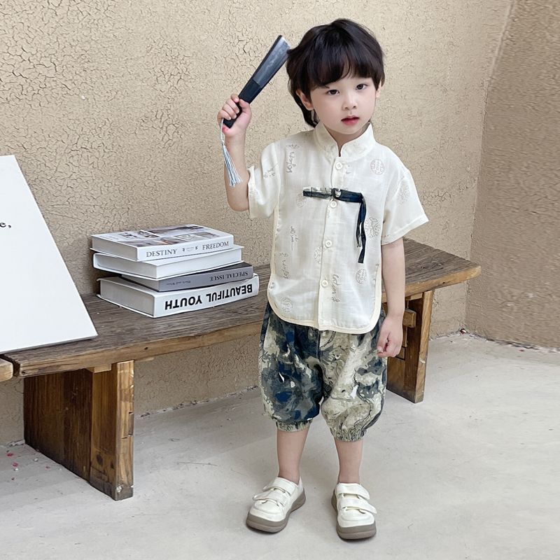 소년 한푸 세트 새로운 중국 여름 옷 아기 중국 스타일 반팔 투피스 어린이 탕 옷 1 살스토어 가기