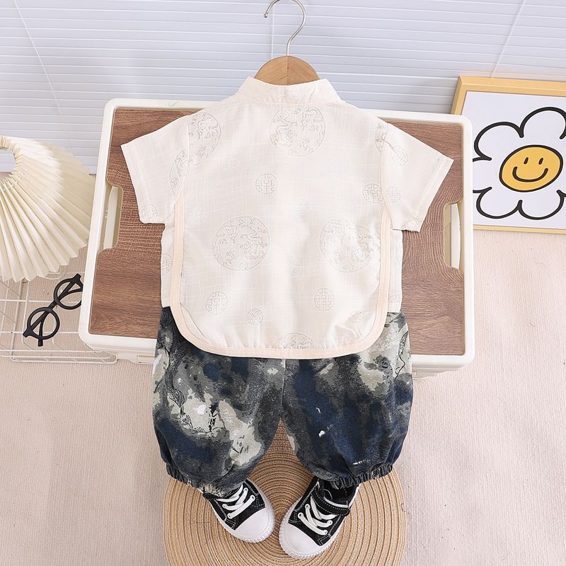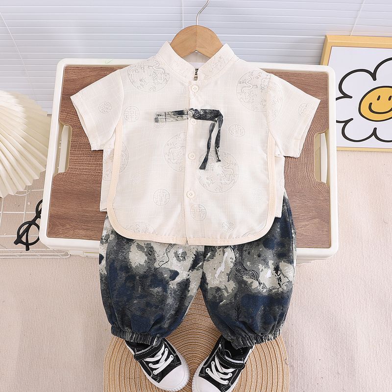소년 한푸 세트 새로운 중국 여름 옷 아기 중국 스타일 반팔 투피스 어린이 탕 옷 1 살