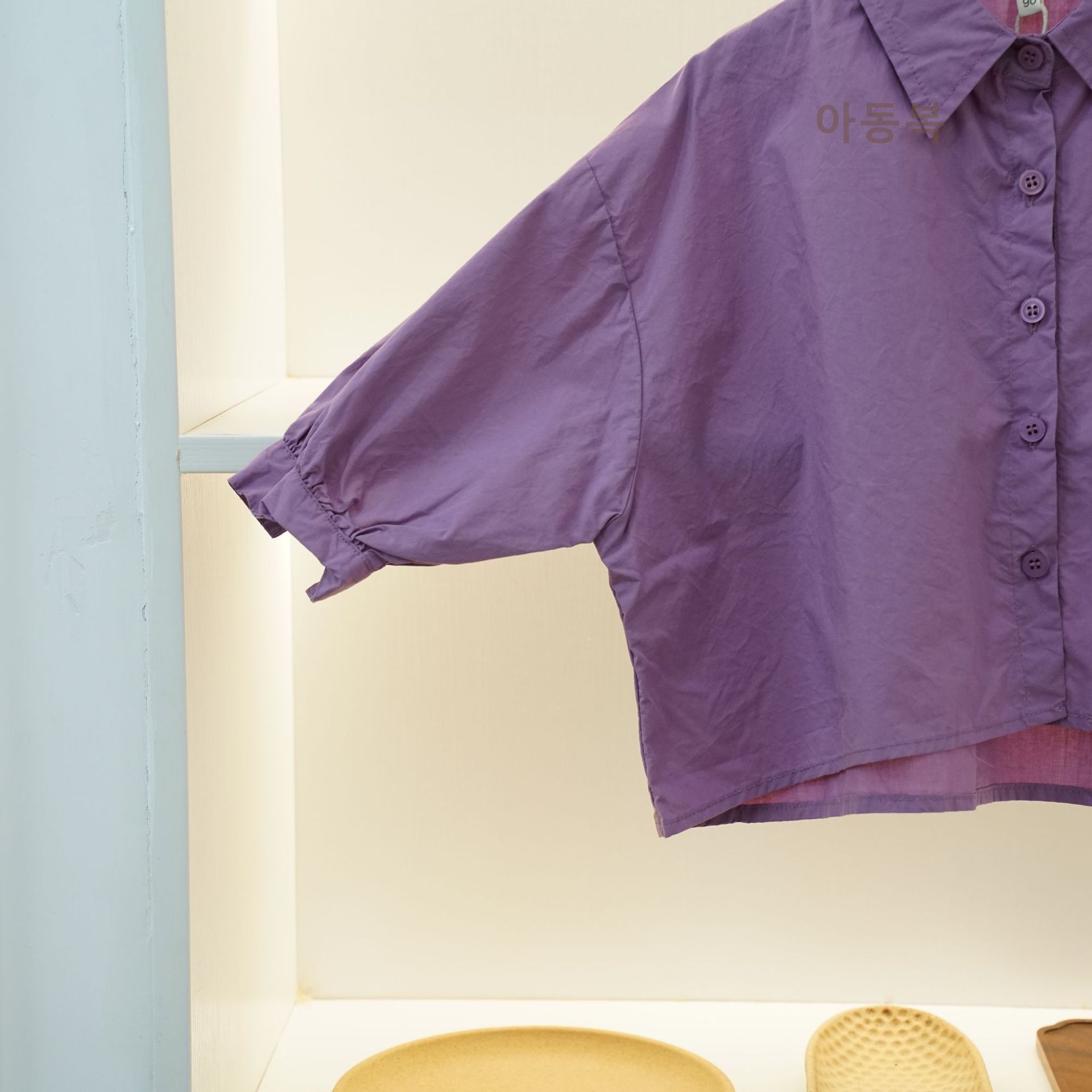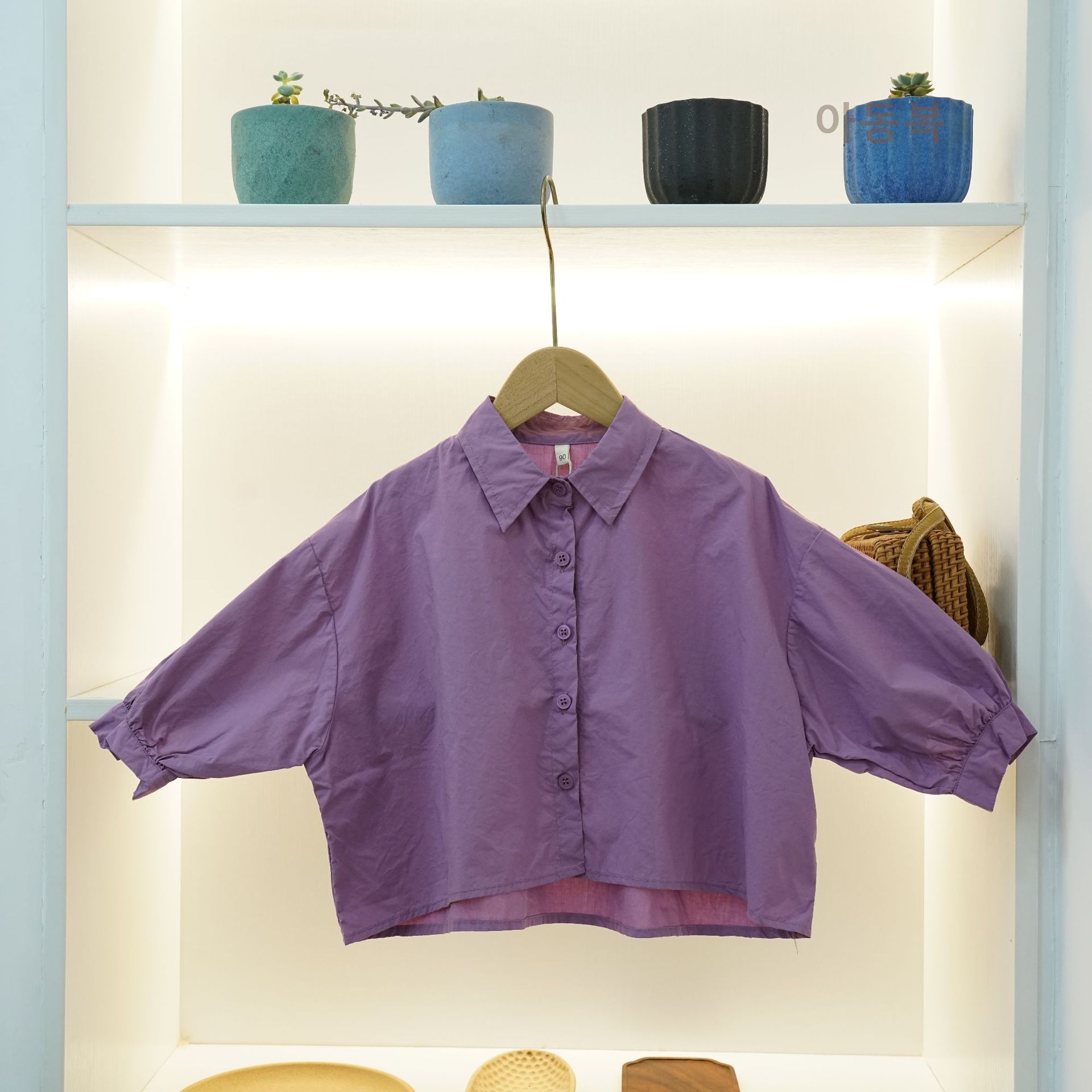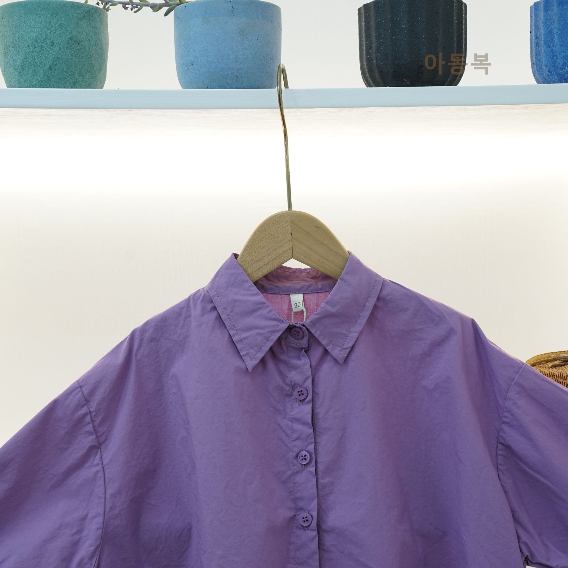 신상품 아동 셔츠 봄 소년 셔츠 한국 스타일 솔리드 컬러 라펠 배트 슬리브 소녀 탑 코튼 캐주얼 다목적스토어 가기