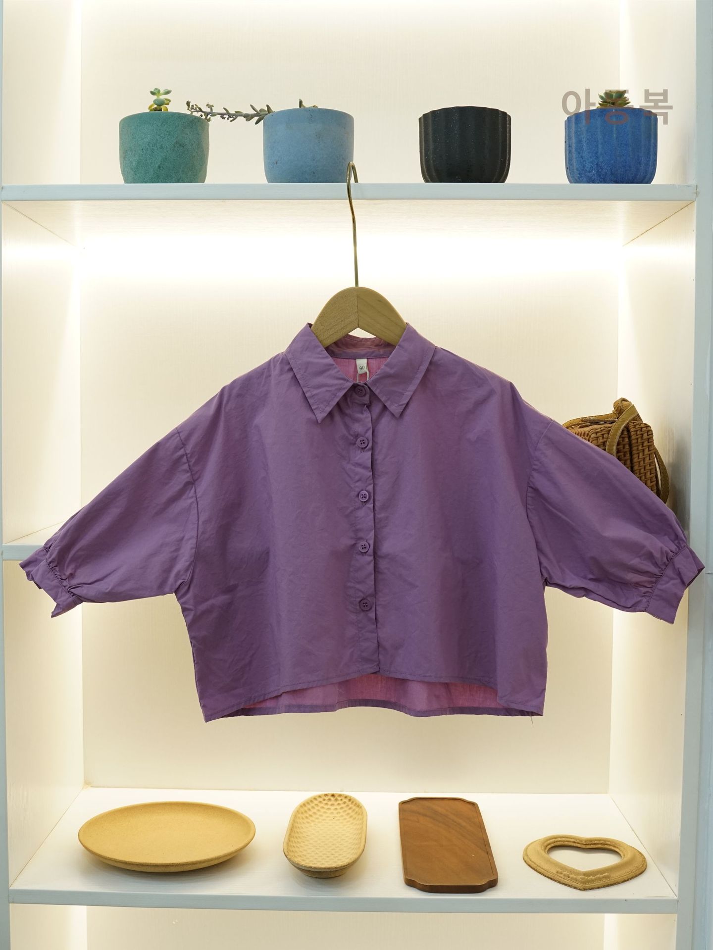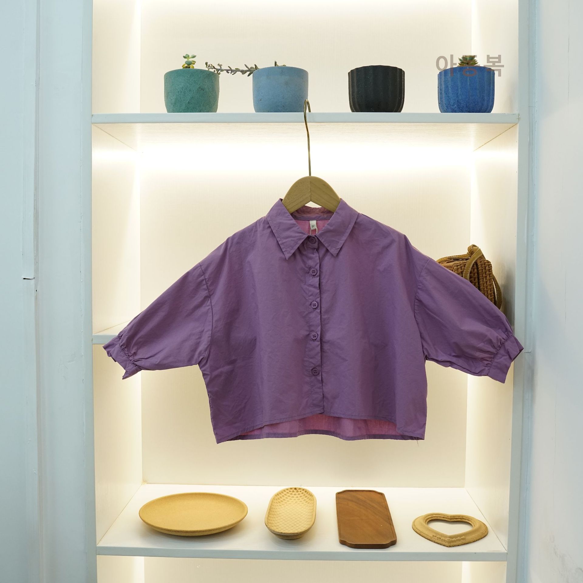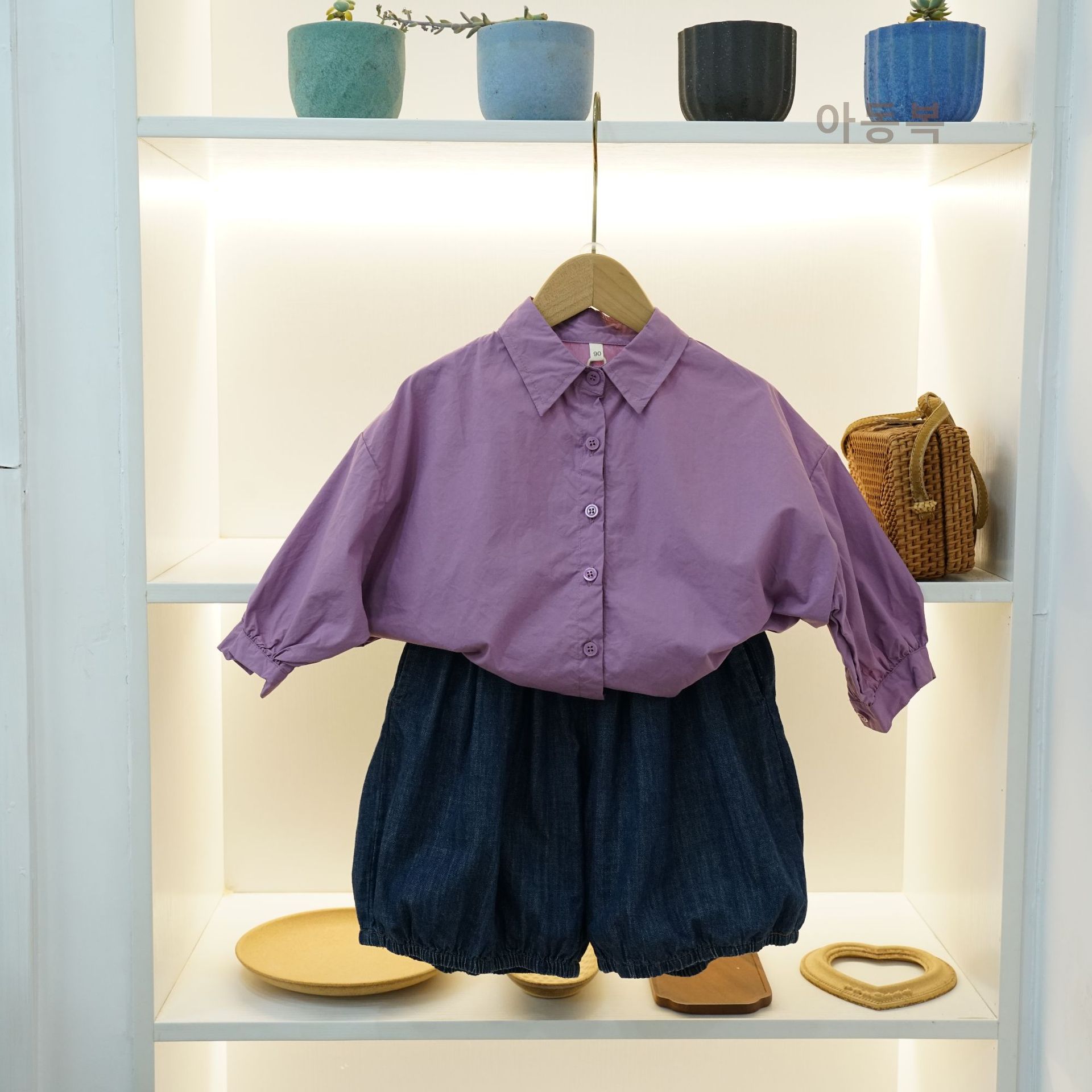 신상품 아동 셔츠 봄 소년 셔츠 한국 스타일 솔리드 컬러 라펠 배트 슬리브 소녀 탑 코튼 캐주얼 다목적스토어 가기