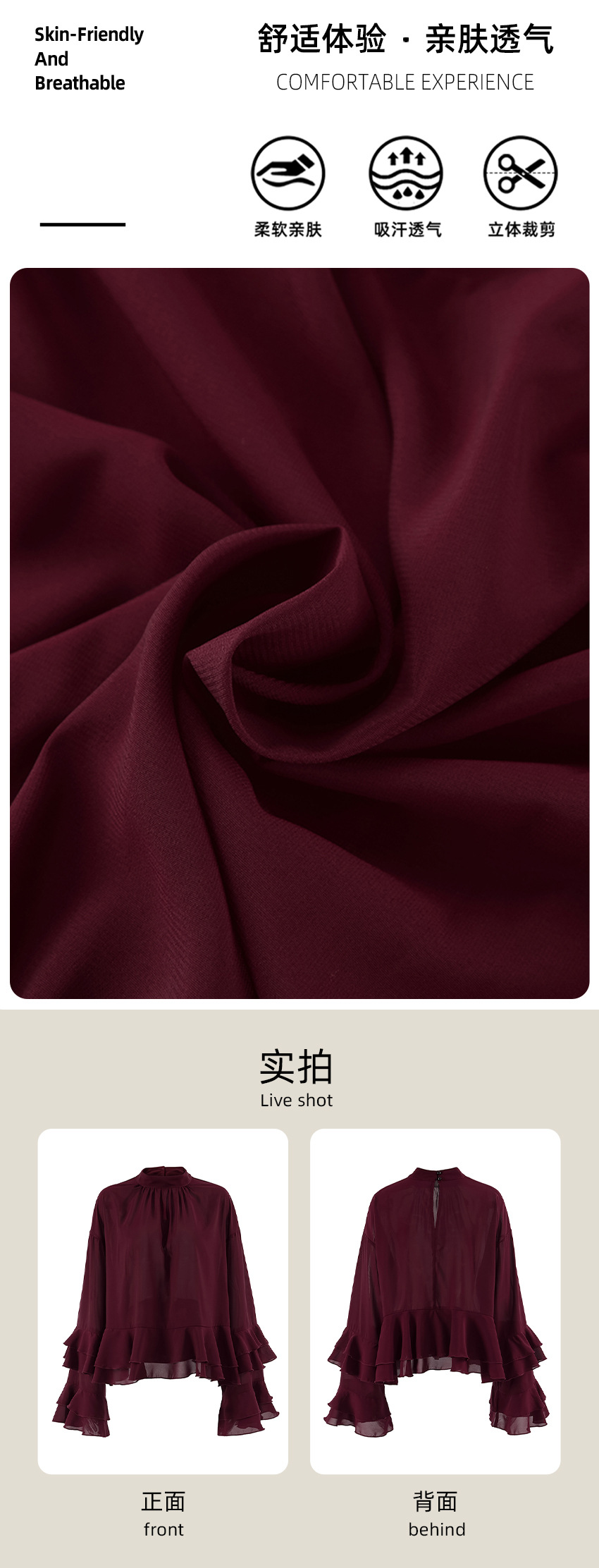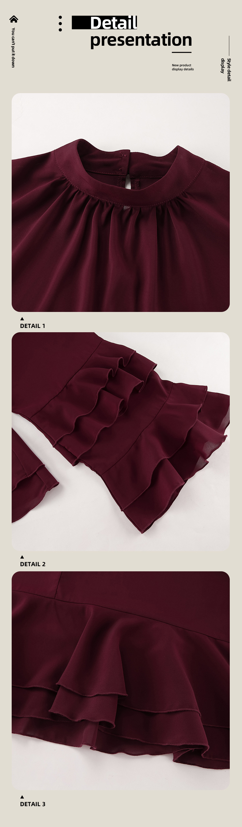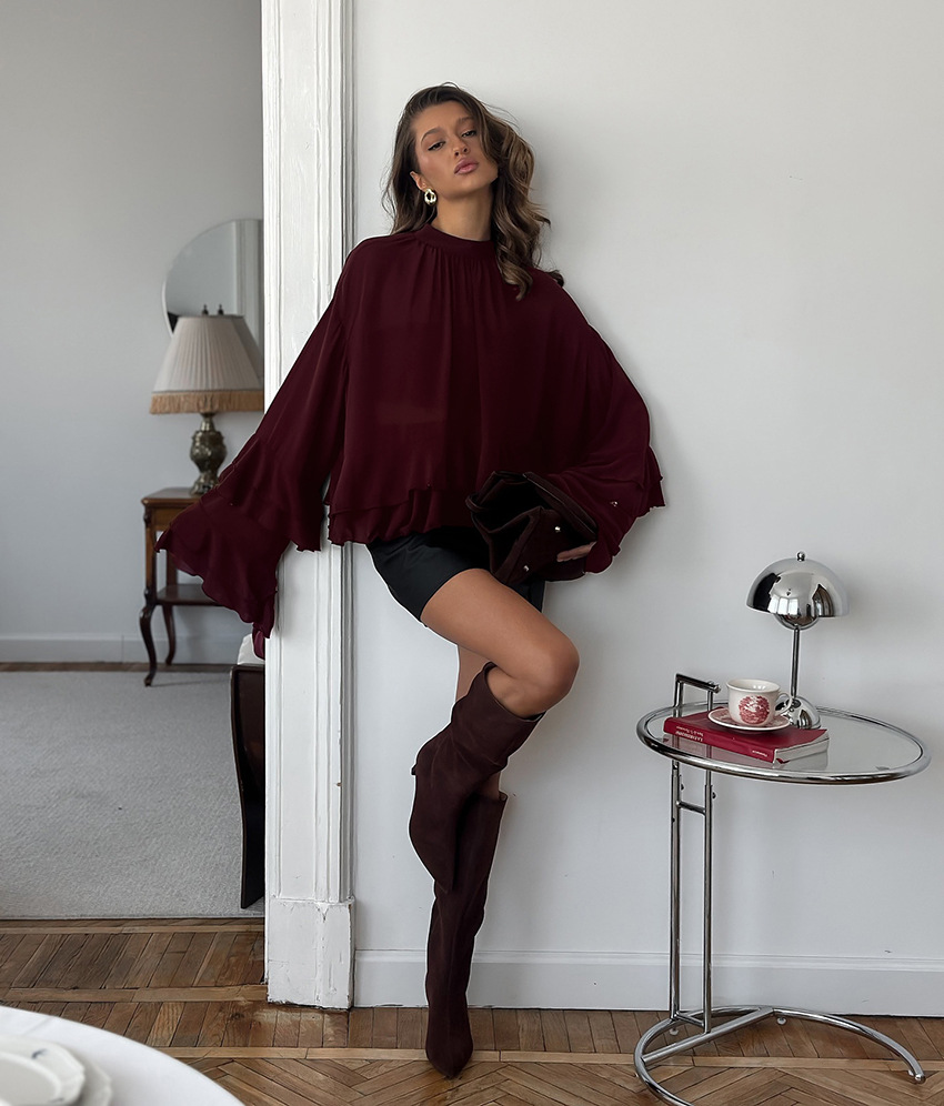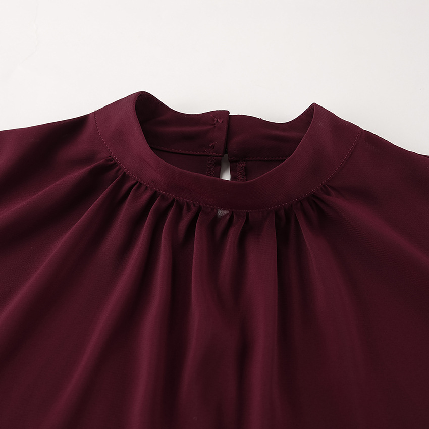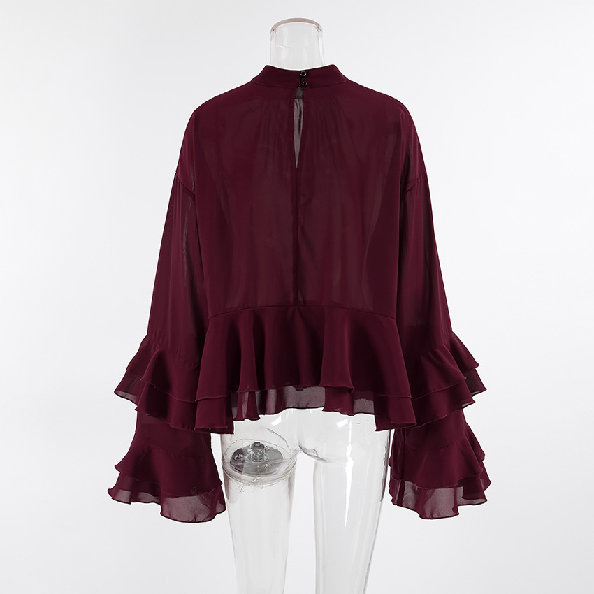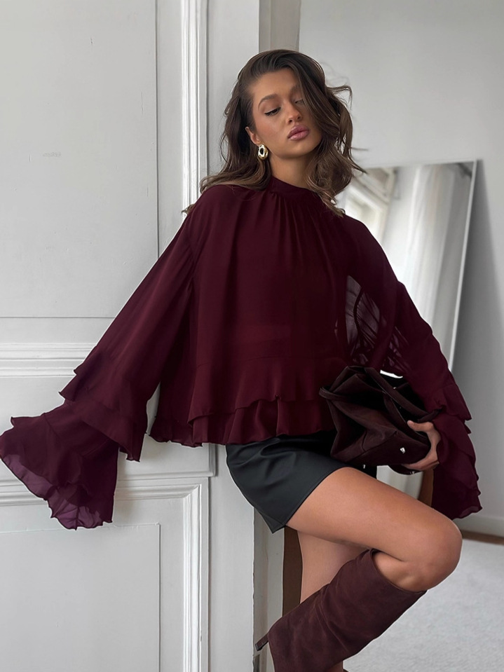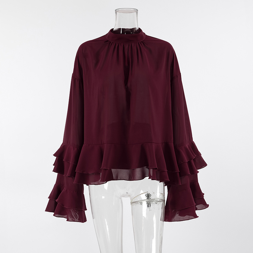 유럽과 미국의 궁정 스타일의 브라운 러플 쉬폰 탑, 여성용 봄 고급 레이스 스탠드 칼라 셔츠, 통근복스토어 가기