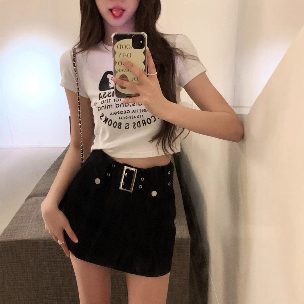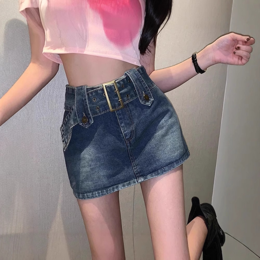데님 스커트 여성 여름 한국 스타일 새로운 복고풍 하이 웨이스트 디자인 틈새 A 라인 핫 소녀 미니 스커트 힙 스커트스토어 가기