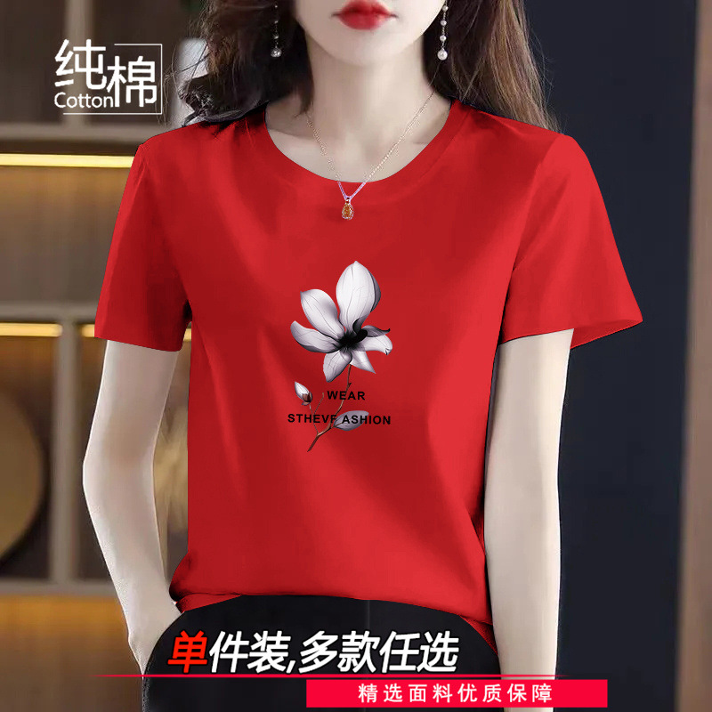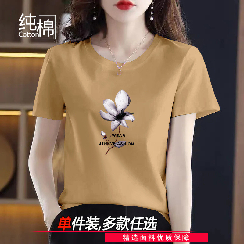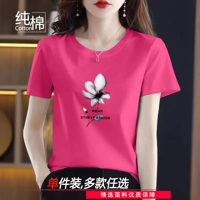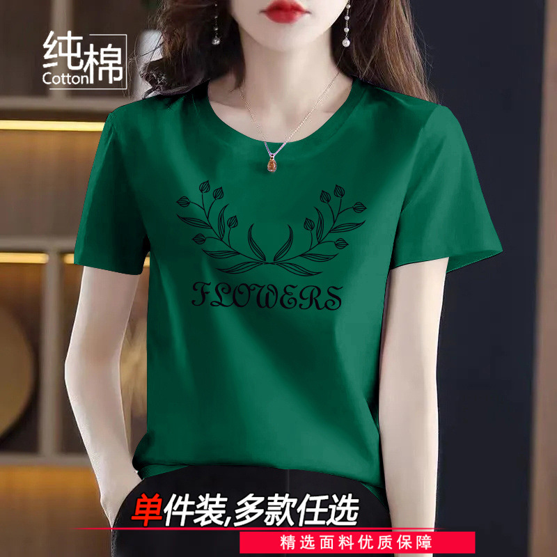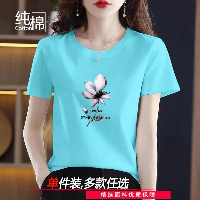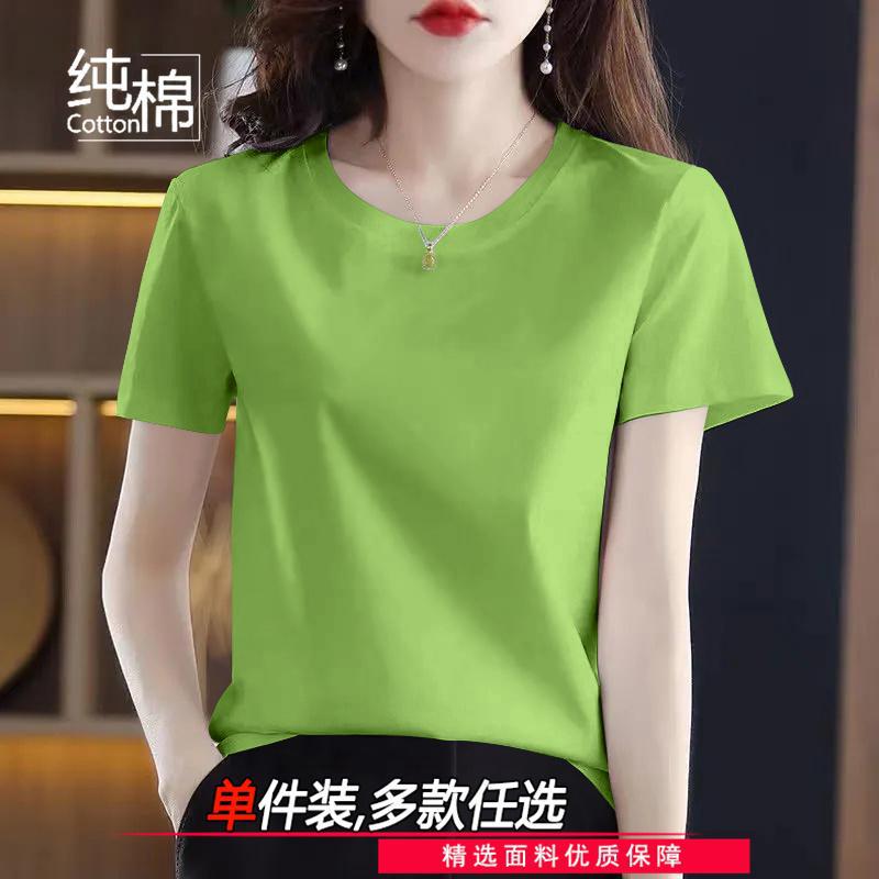 여성을 위한 하이엔드 순면 반팔 티셔츠, 새로운 여름 스타일, 패셔너블하고 루즈하며 슬림하고 다재다능하며 통기성이 뛰어난 탑, 심플한 라운드 넥스토어 가기