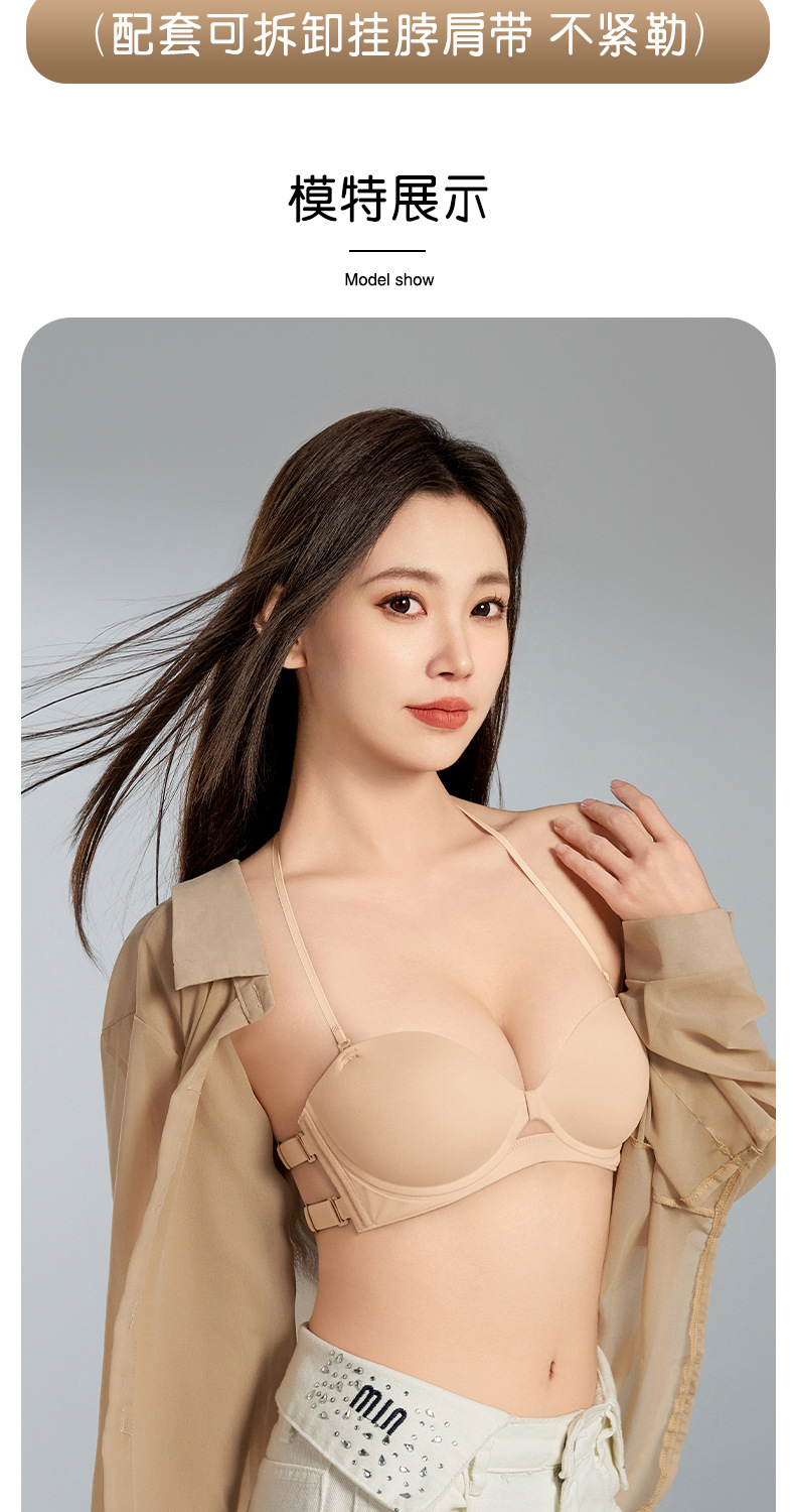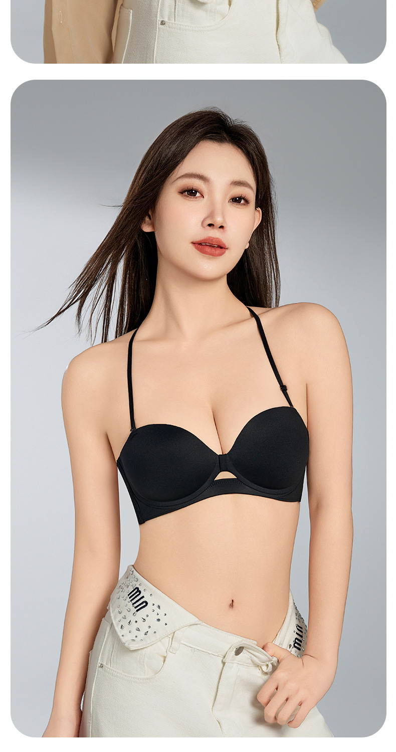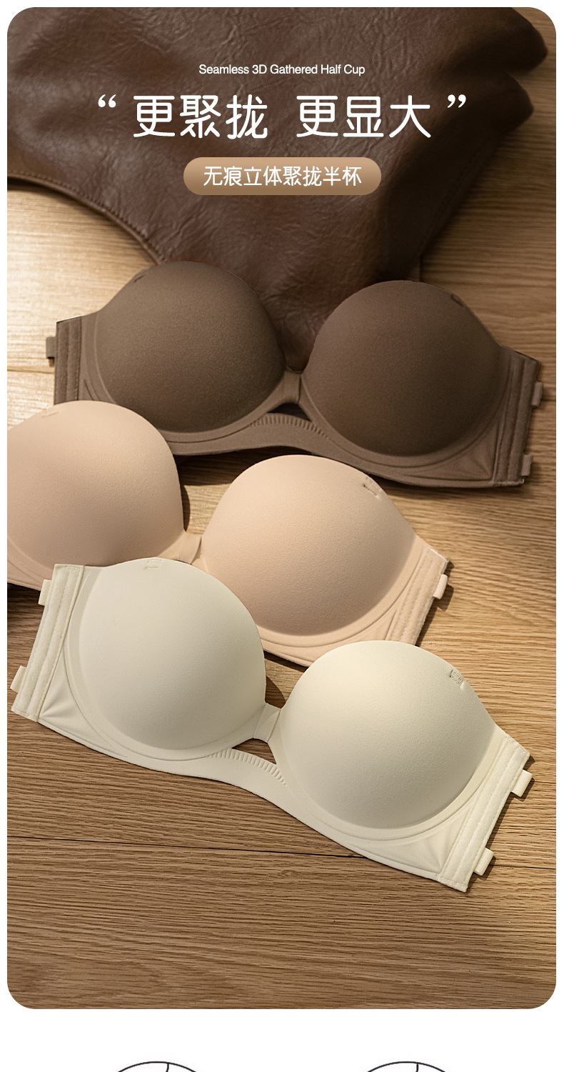 여성을 위한 새로운 섹시한 홀터넥 하프 컵 심리스 속옷, 광택 있고 미끄럼 방지, 작은 가슴 푸시업 라운드 컵 실리콘 스티커 브라스토어 가기