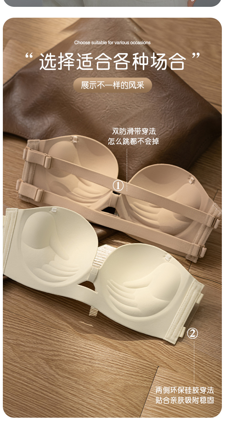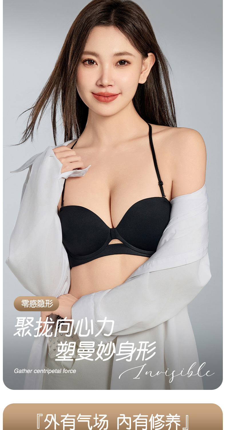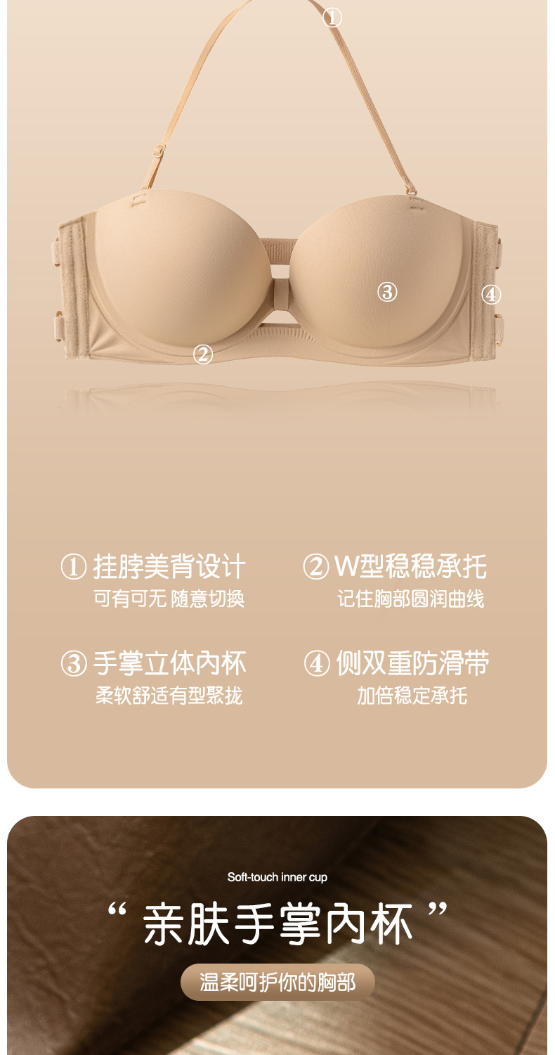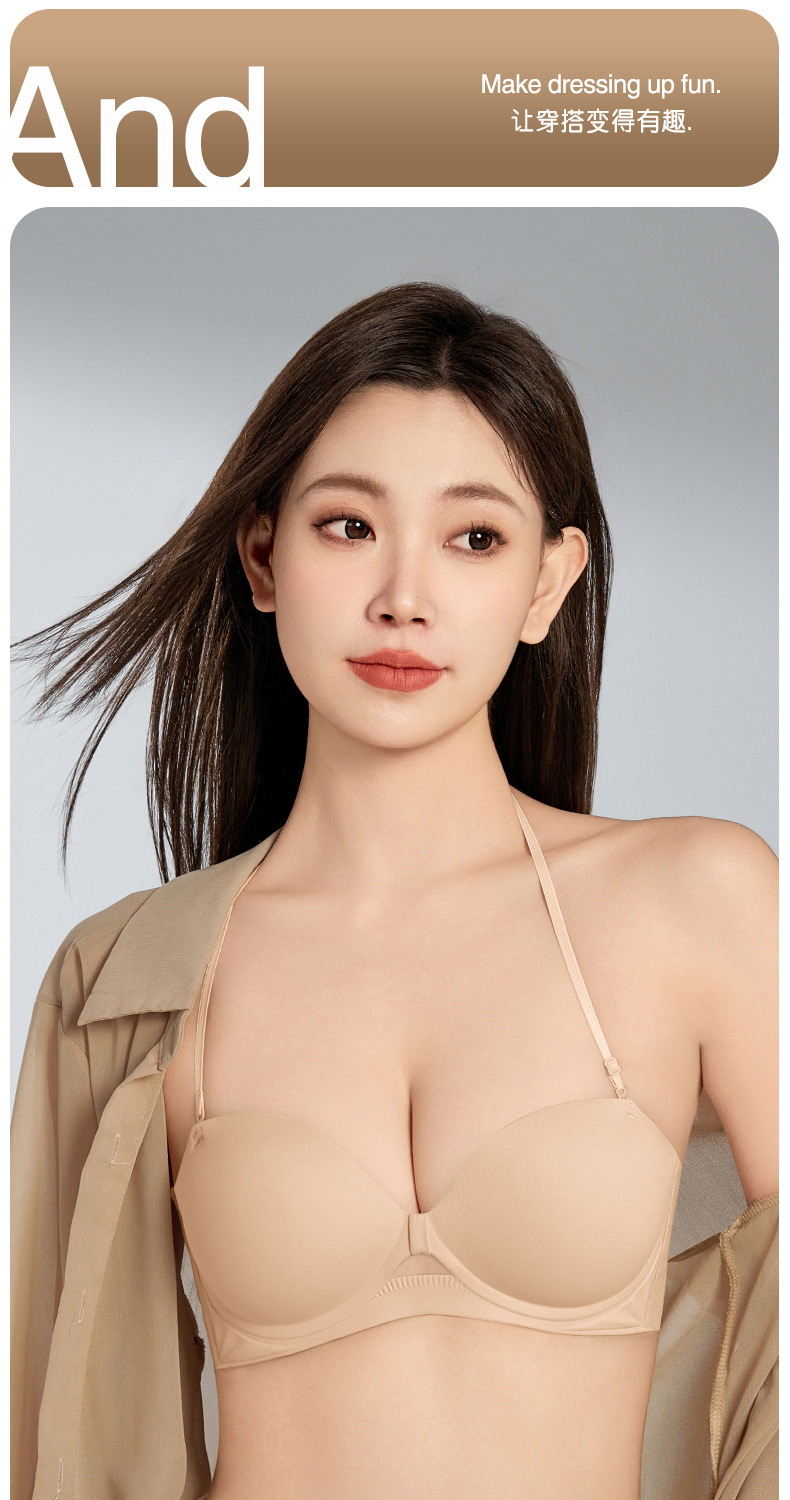여성을 위한 새로운 섹시한 홀터넥 하프 컵 심리스 속옷, 광택 있고 미끄럼 방지, 작은 가슴 푸시업 라운드 컵 실리콘 스티커 브라스토어 가기
