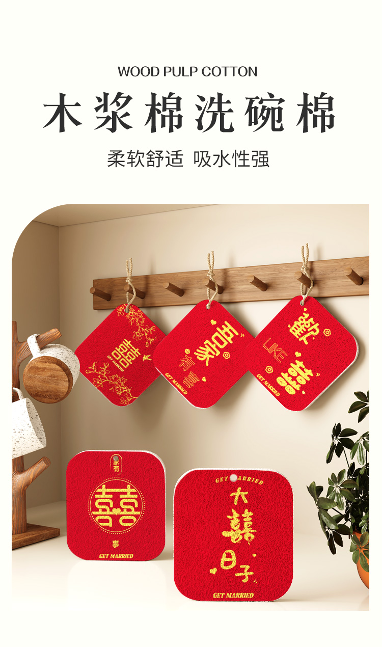 결혼 축하용 목재 펄프 면 식기 세척 수건, 양면 설거지용 브러시, 냄비 청소용 걸레, 압축 스펀지, 흡수성 수세미