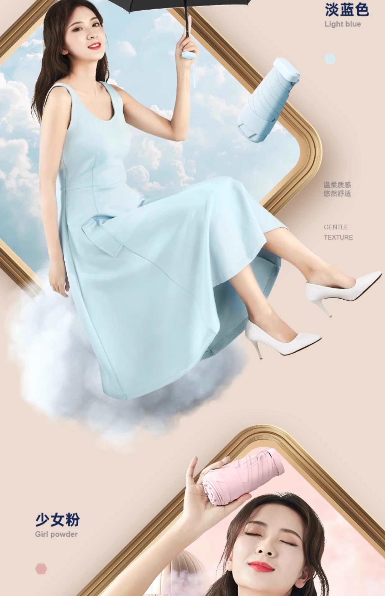 캡슐 태양 우산 여성의 선 스크린 UV 선 스크린 햇빛 우산 이중 사용 여름 초경량 소형 휴대용스토어 가기