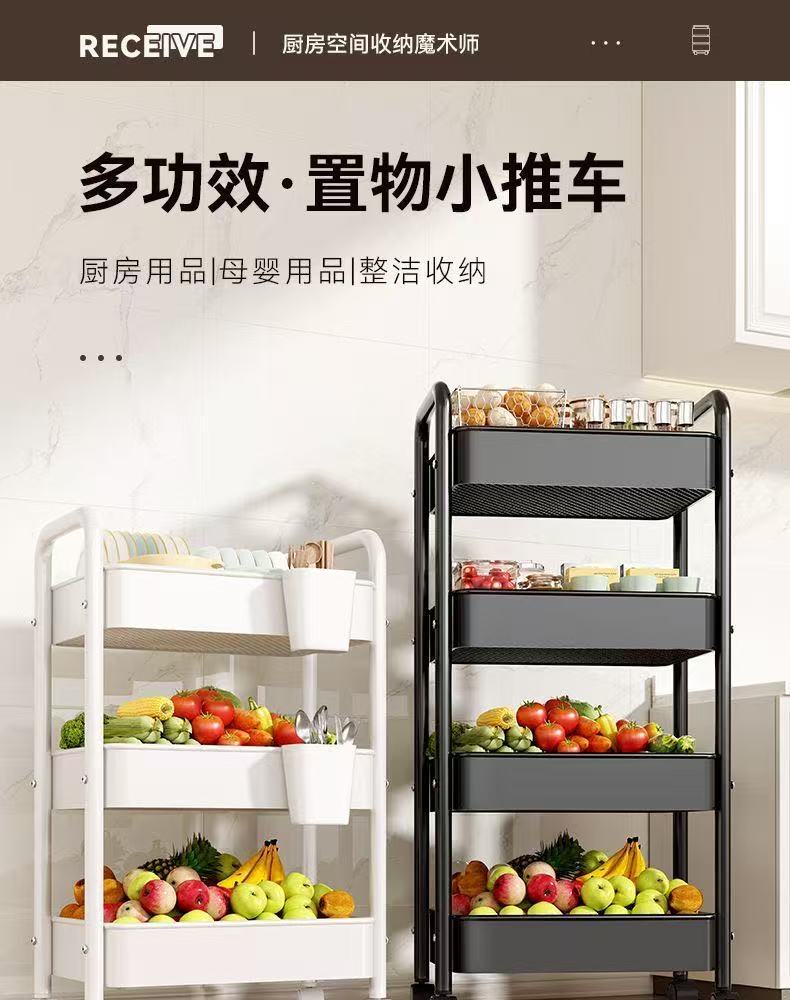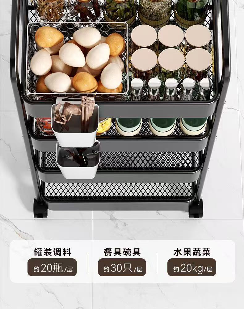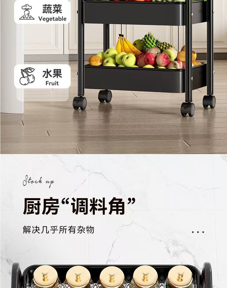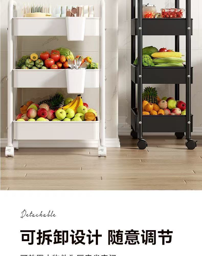 주방 보관 랙 바닥 서 멀티 레이어 휠 가정용 모바일 카트 야채 바구니 및 스낵 보관 랙