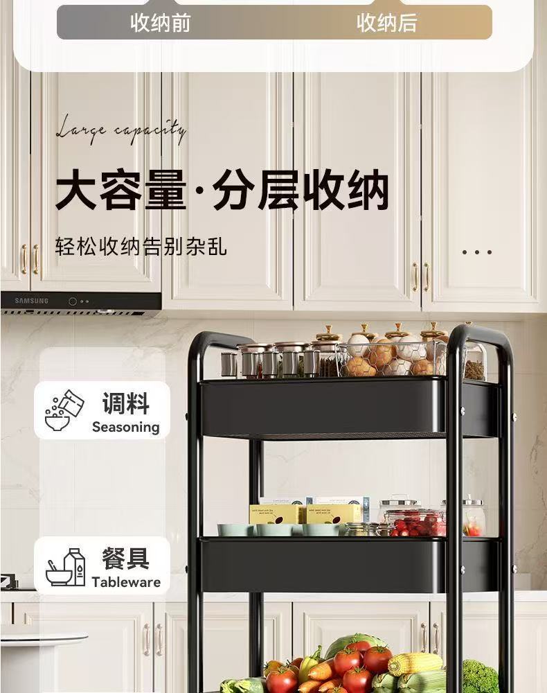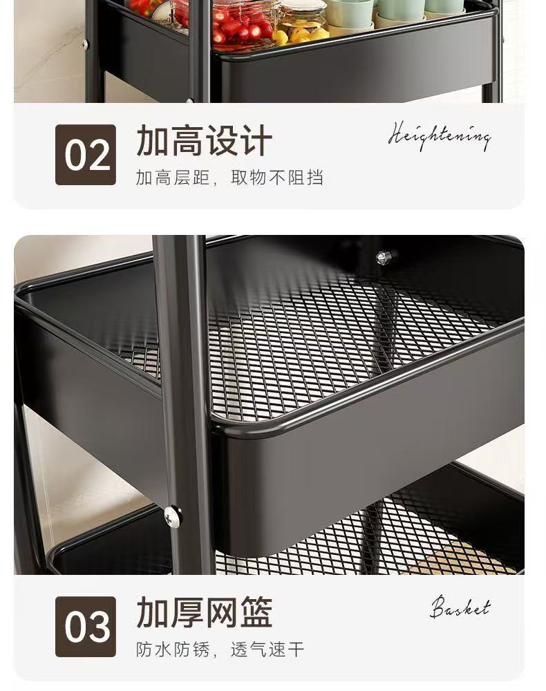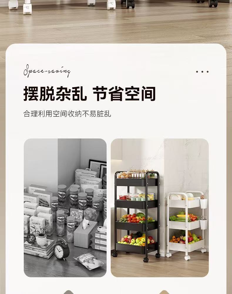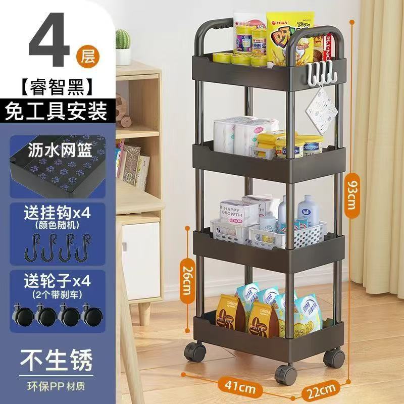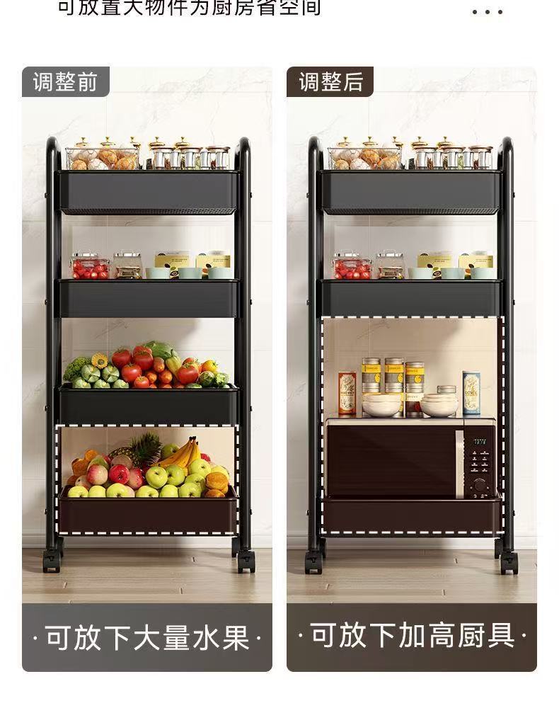 주방 보관 랙 바닥 서 멀티 레이어 휠 가정용 모바일 카트 야채 바구니 및 스낵 보관 랙