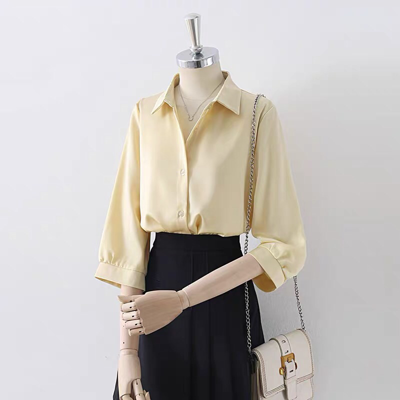 2025 년 초 가을 새 쉬폰 셔츠 여성 고감각 전문 통근 셔츠 여성 기질 7 점 소매 여성용 최고스토어 가기