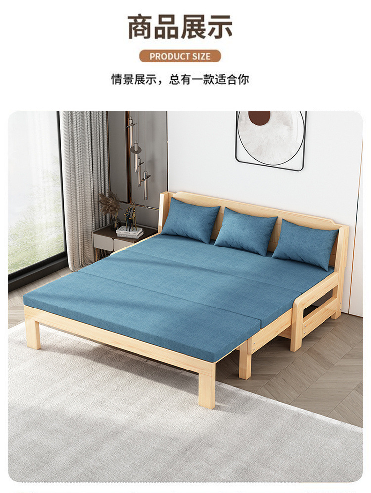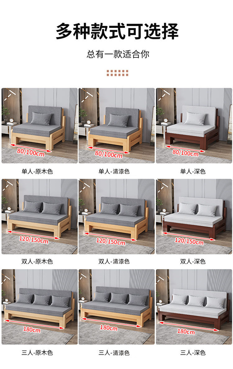 솔리드 우드 소파 침대 통합 이중 목적 거실 접이식 소파 침대 다기능 더블 양스토어 가기