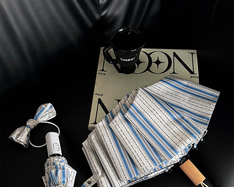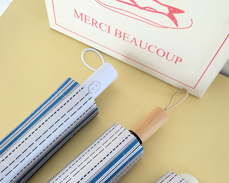 신선한 줄무늬 우산 여성의 맑고 비오는 이중 목적 자동 태양 보호 자외선 보호 태양 우산 작고 편리한 햇빛 우산