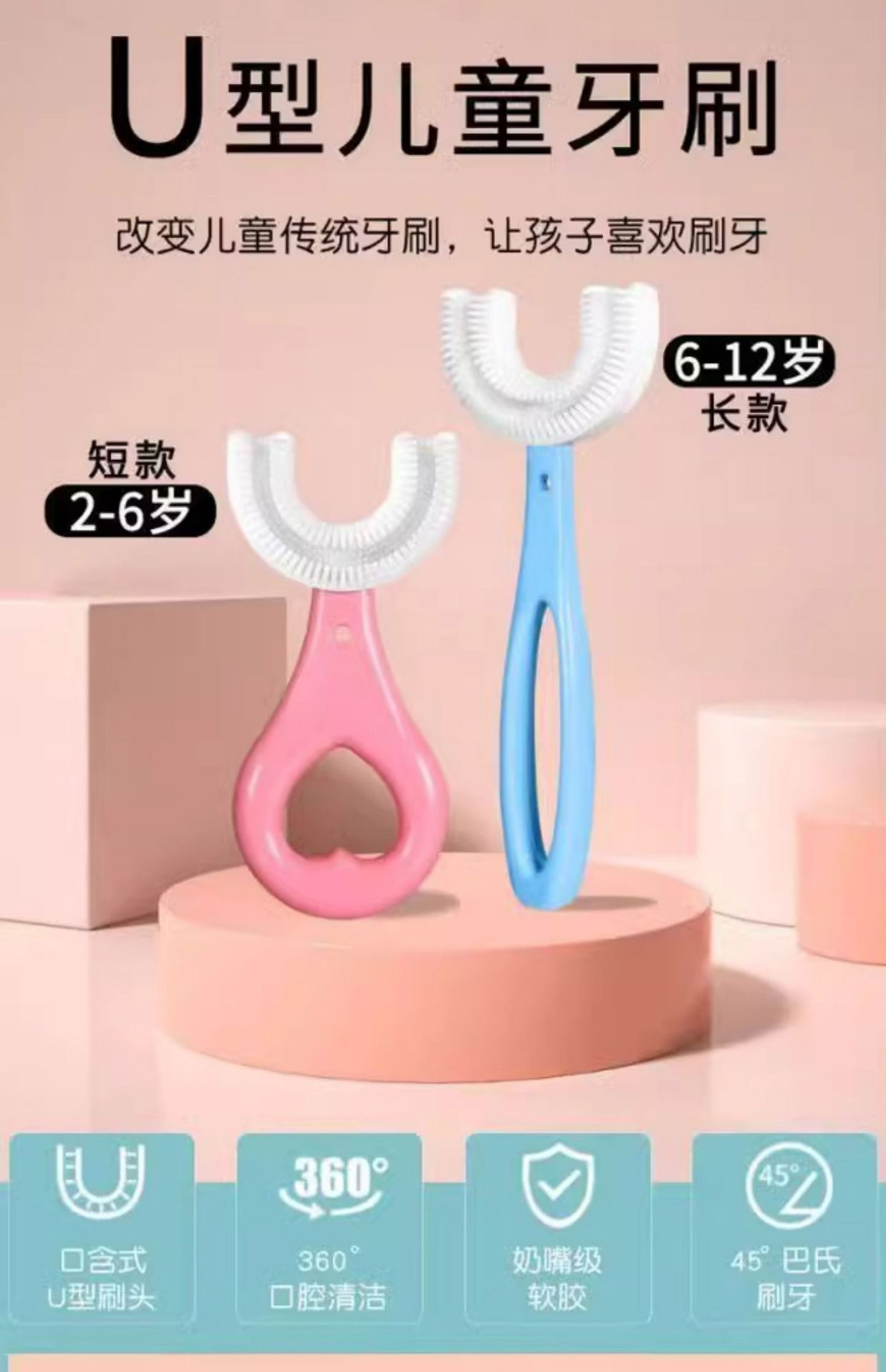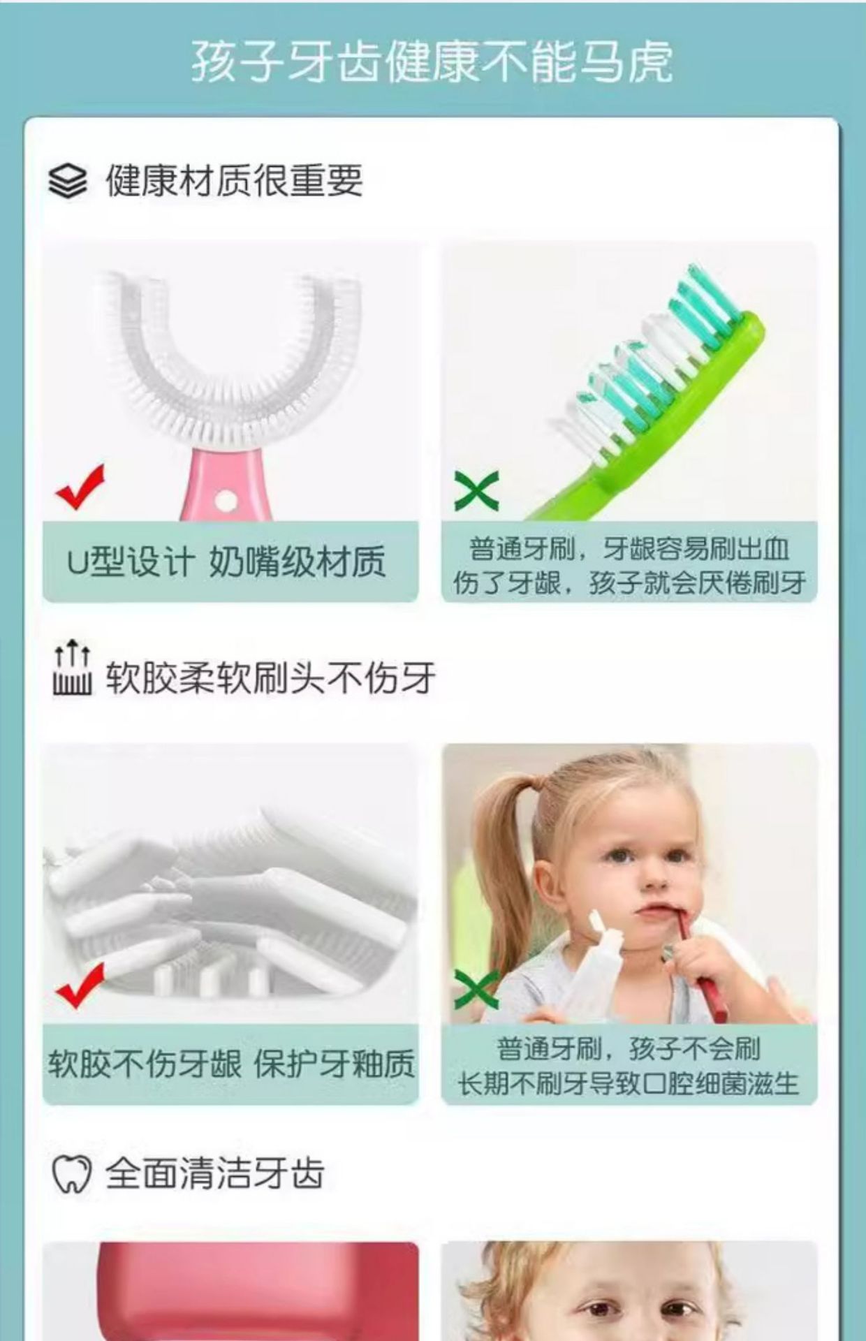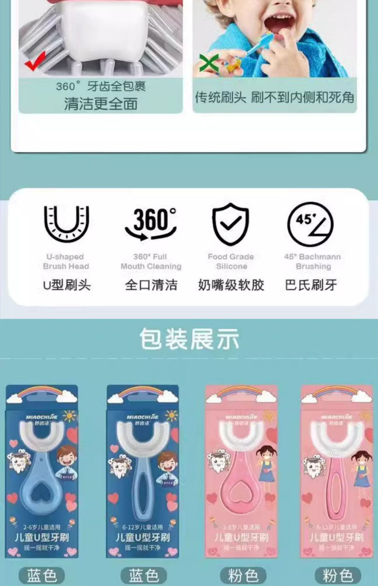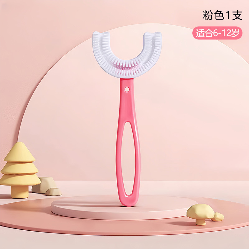 2-12 세 어린이의 U 자형 실리콘 칫솔 부드러운 고무는 어린이 및 아기 치약 세트 치아 청소 및 칫솔질 유물에 적합합니다.
