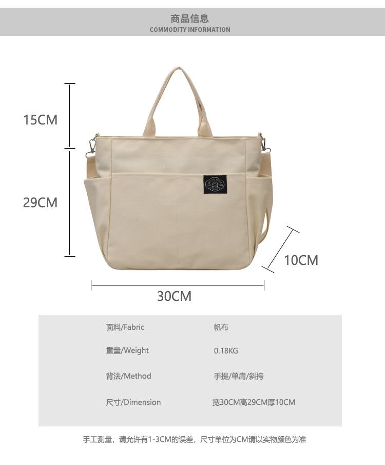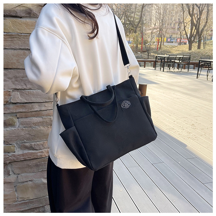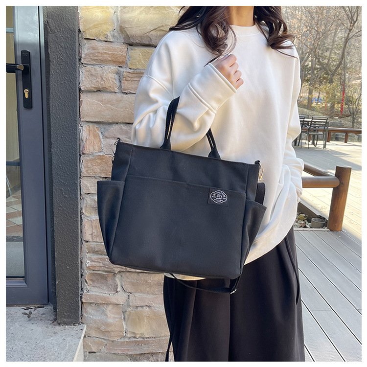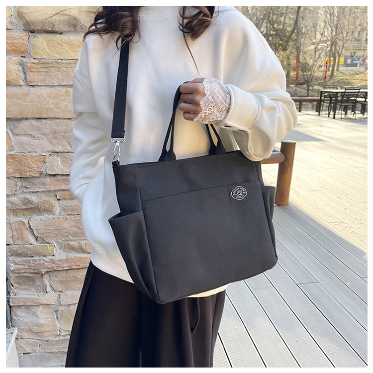 독창적인 디자인 일본 문학 간단한 통근 휴대용 크로스 바디 캔버스 캐주얼 패션 다용도 학생 토트 백