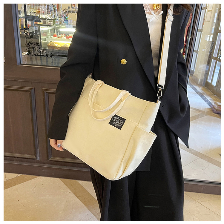 독창적인 디자인 일본 문학 간단한 통근 휴대용 크로스 바디 캔버스 캐주얼 패션 다용도 학생 토트 백스토어 가기
