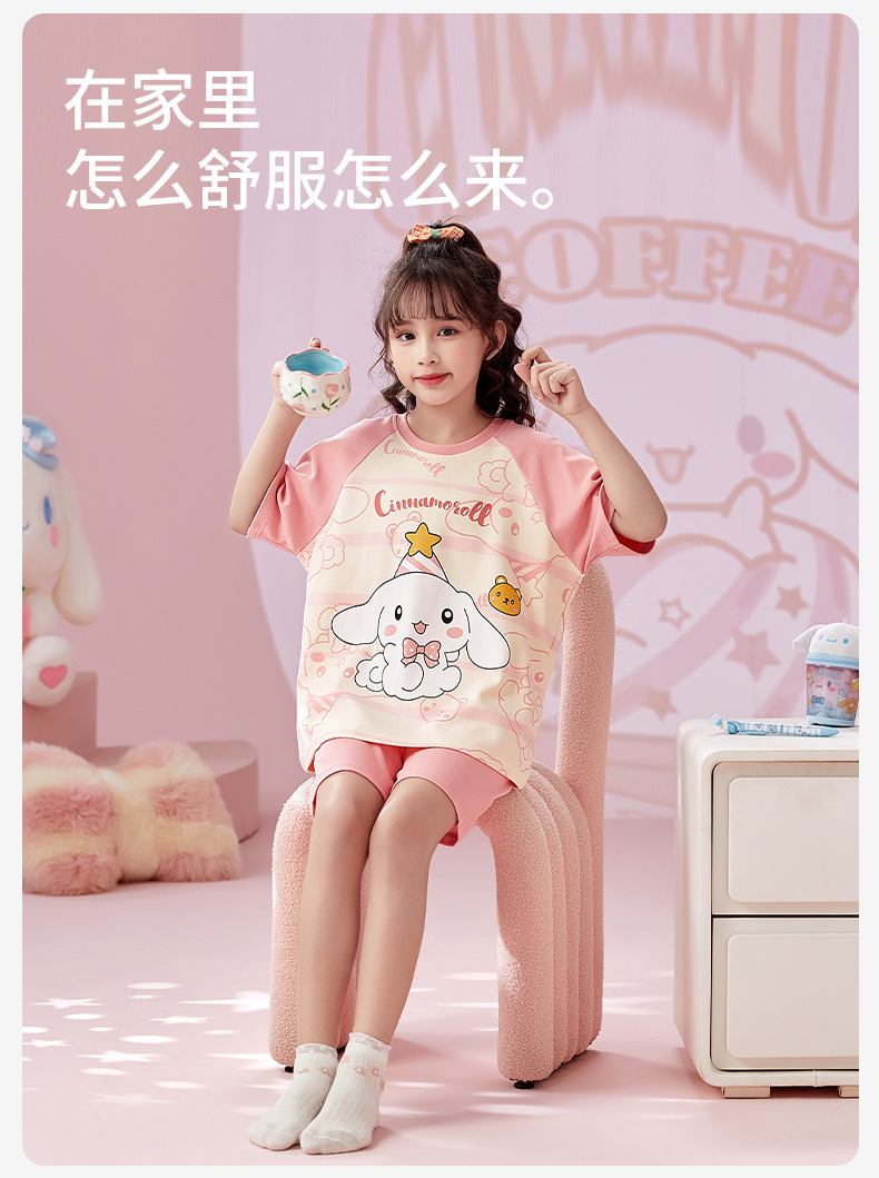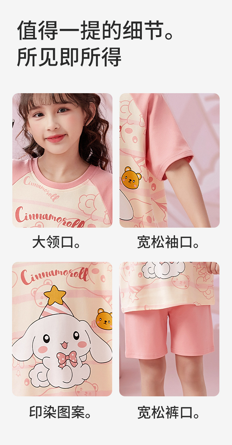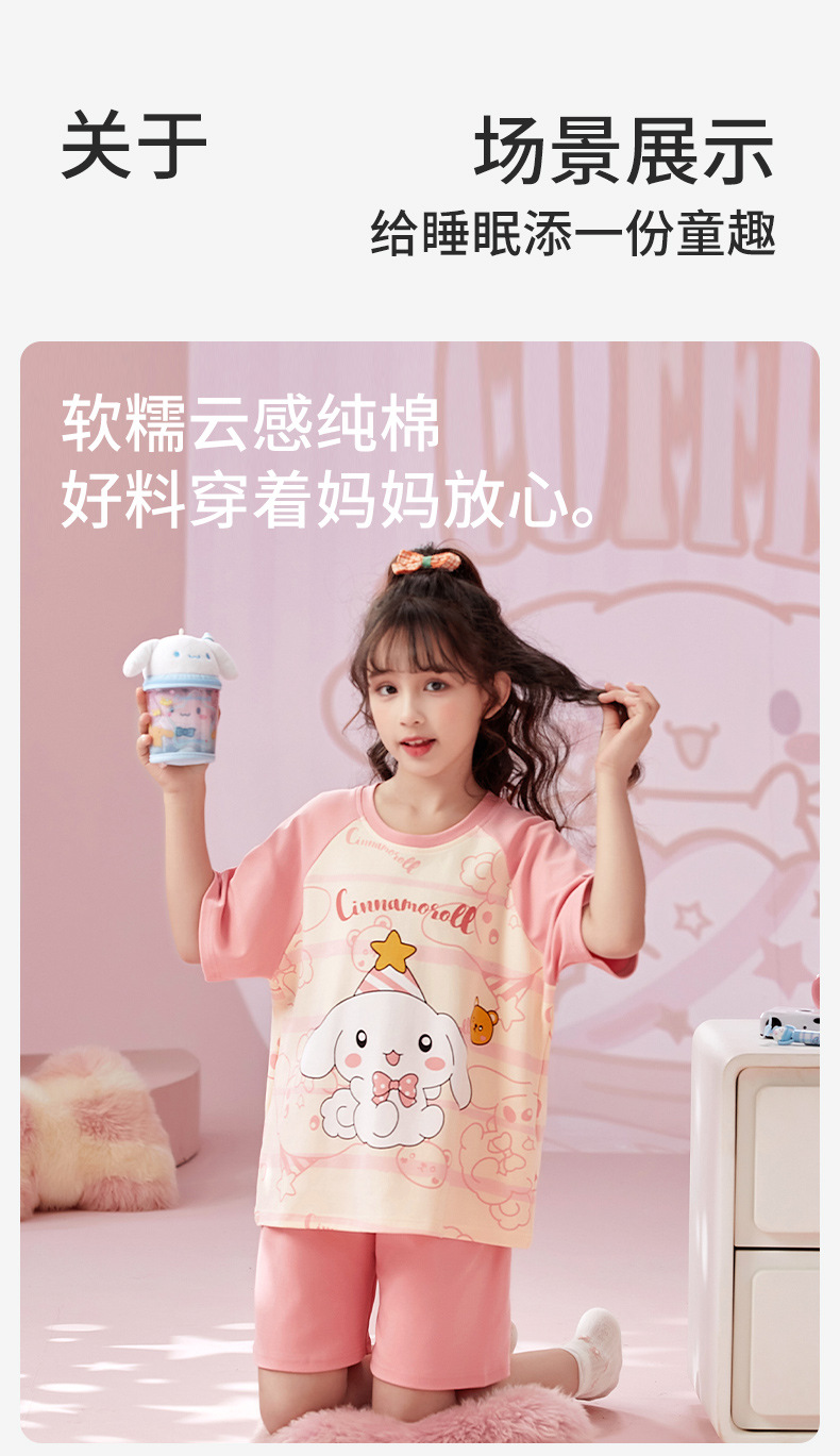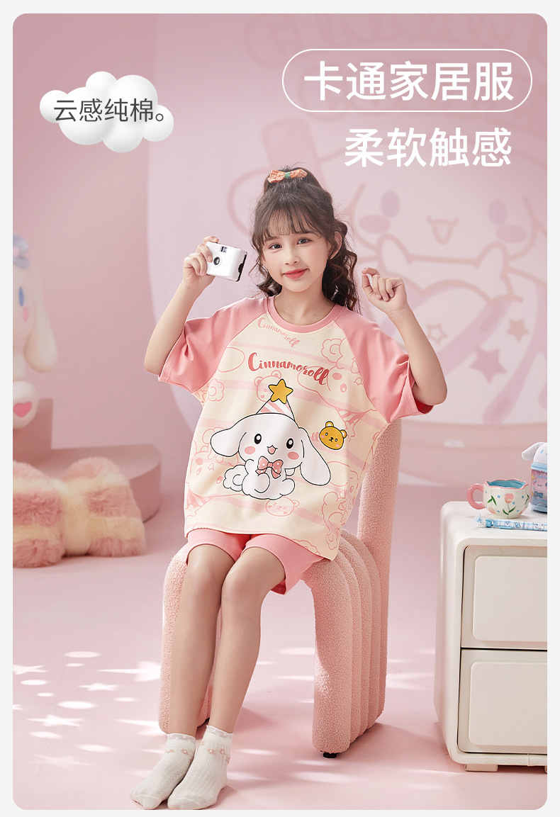 여름 어린이 순면 잠옷 소녀의 여름 얇은 반팔 세트 중대형 어린이 만화 소녀의 집 옷스토어 가기