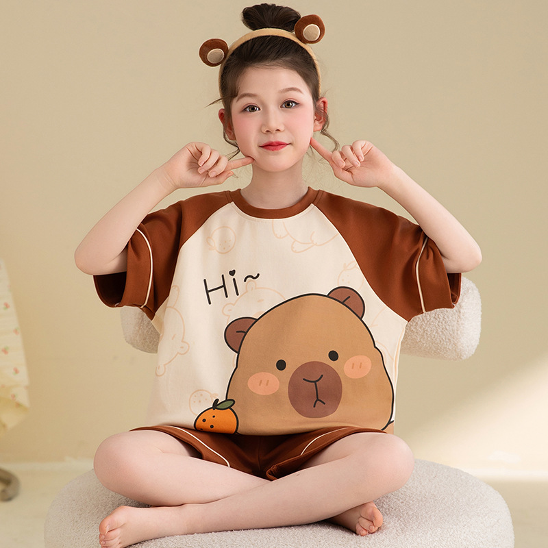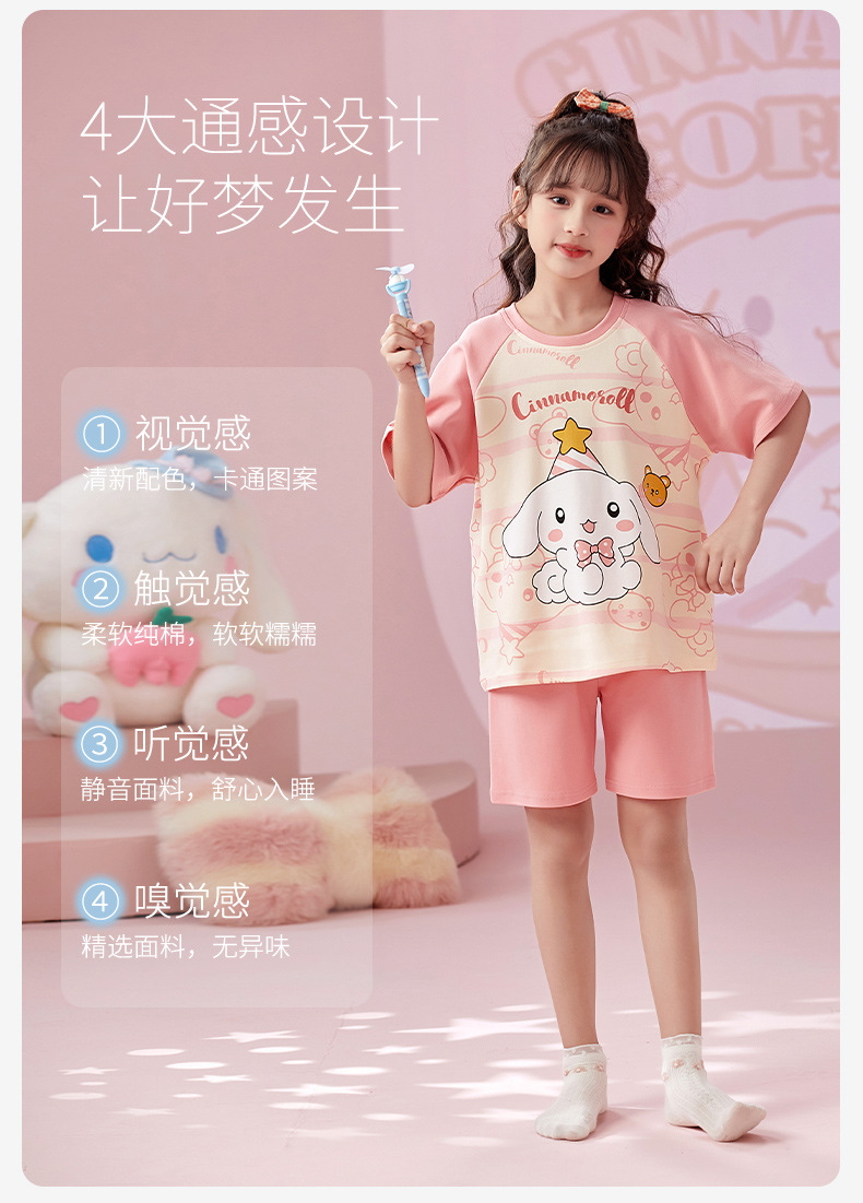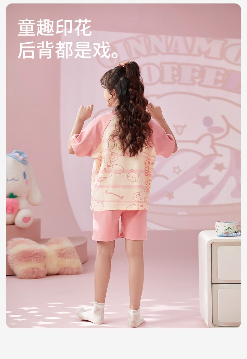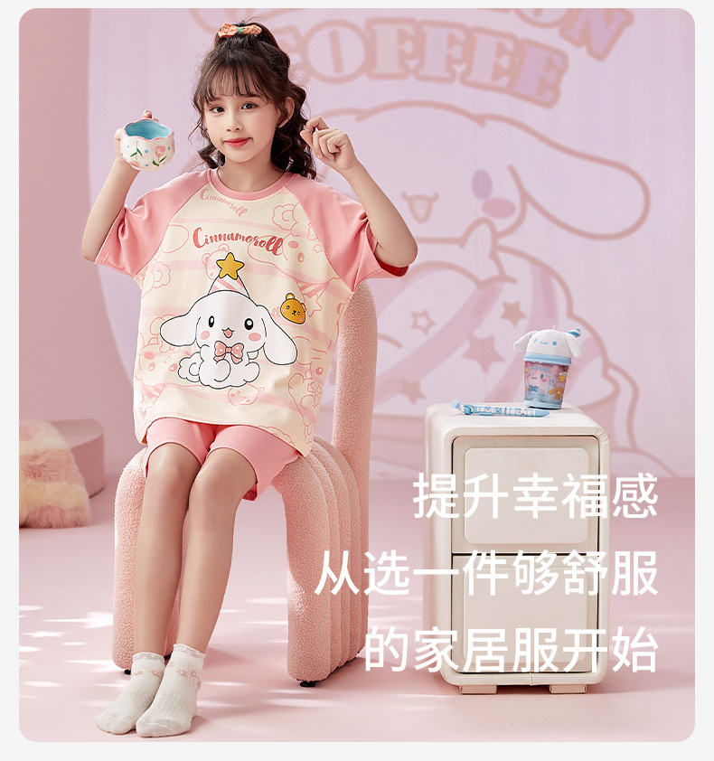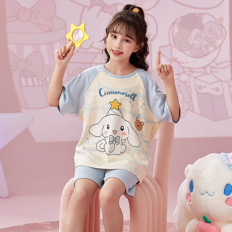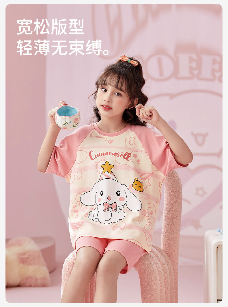 여름 어린이 순면 잠옷 소녀의 여름 얇은 반팔 세트 중대형 어린이 만화 소녀의 집 옷스토어 가기