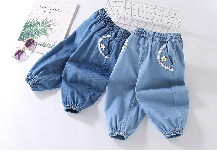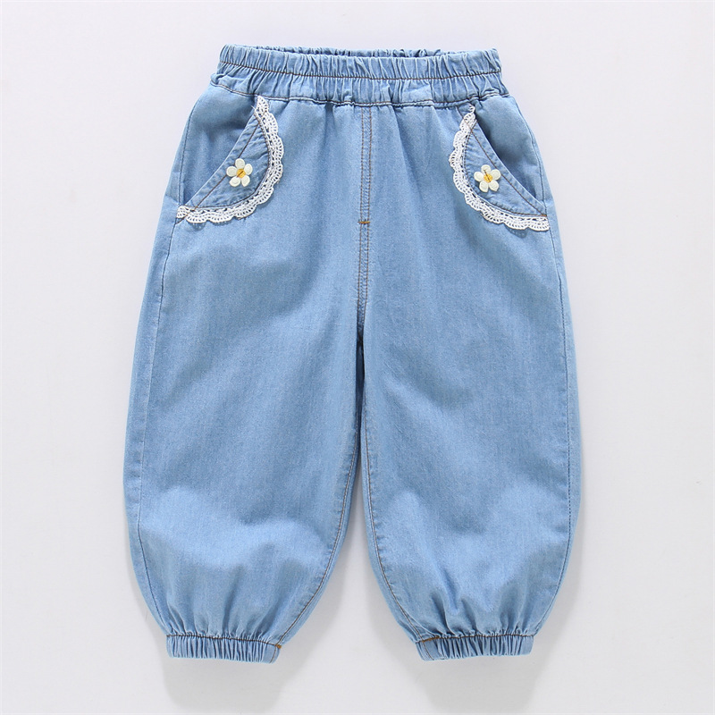 2025 여름 얇은 소녀 청바지 어린이 올매치 와이드 아기 바지 아동면 바지스토어 가기