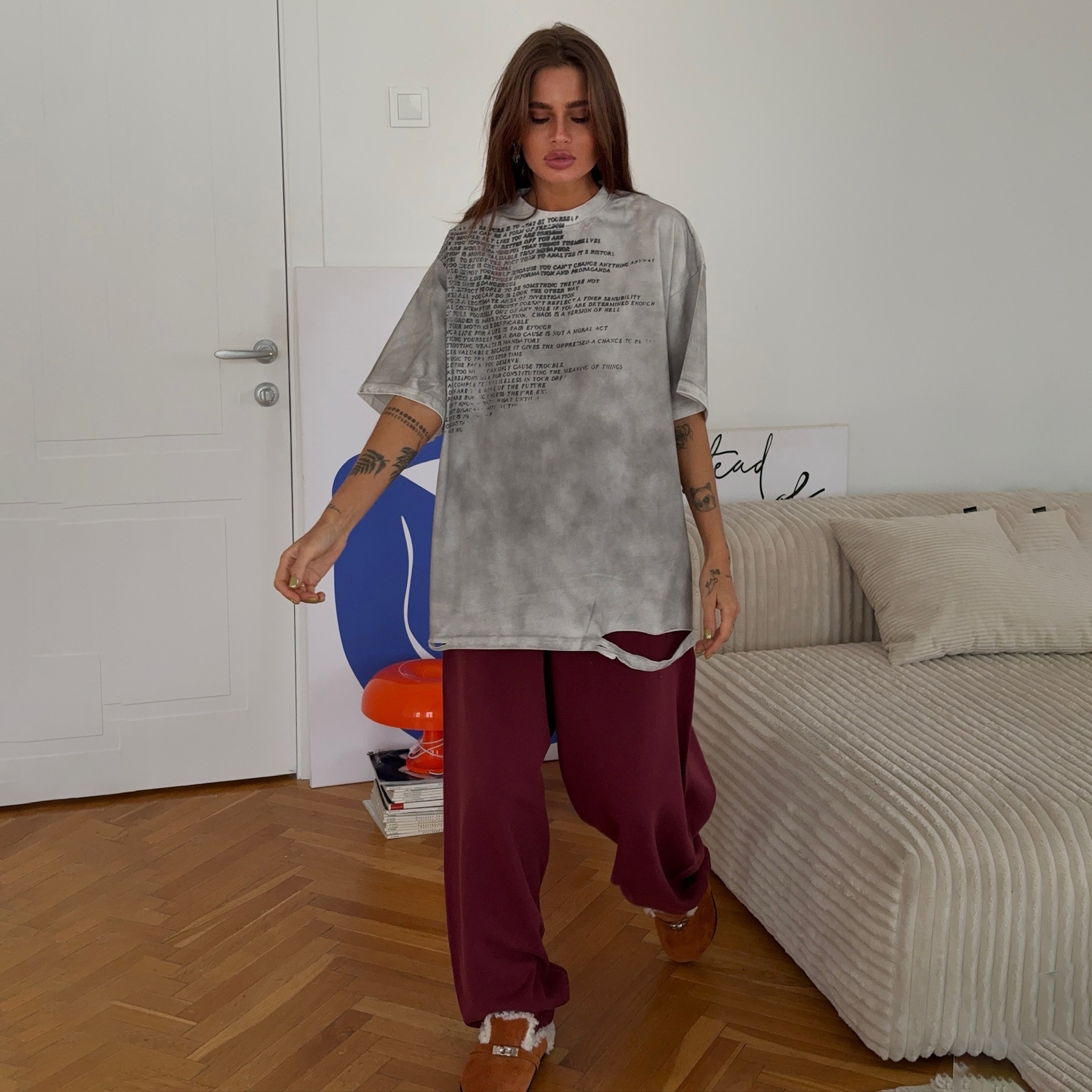 美式高街ins潮牌做旧字母印花夏季T恤男女同款宽松休闲五分袖批发