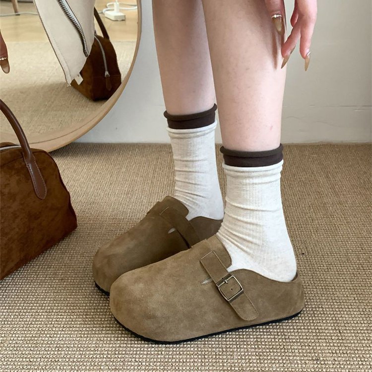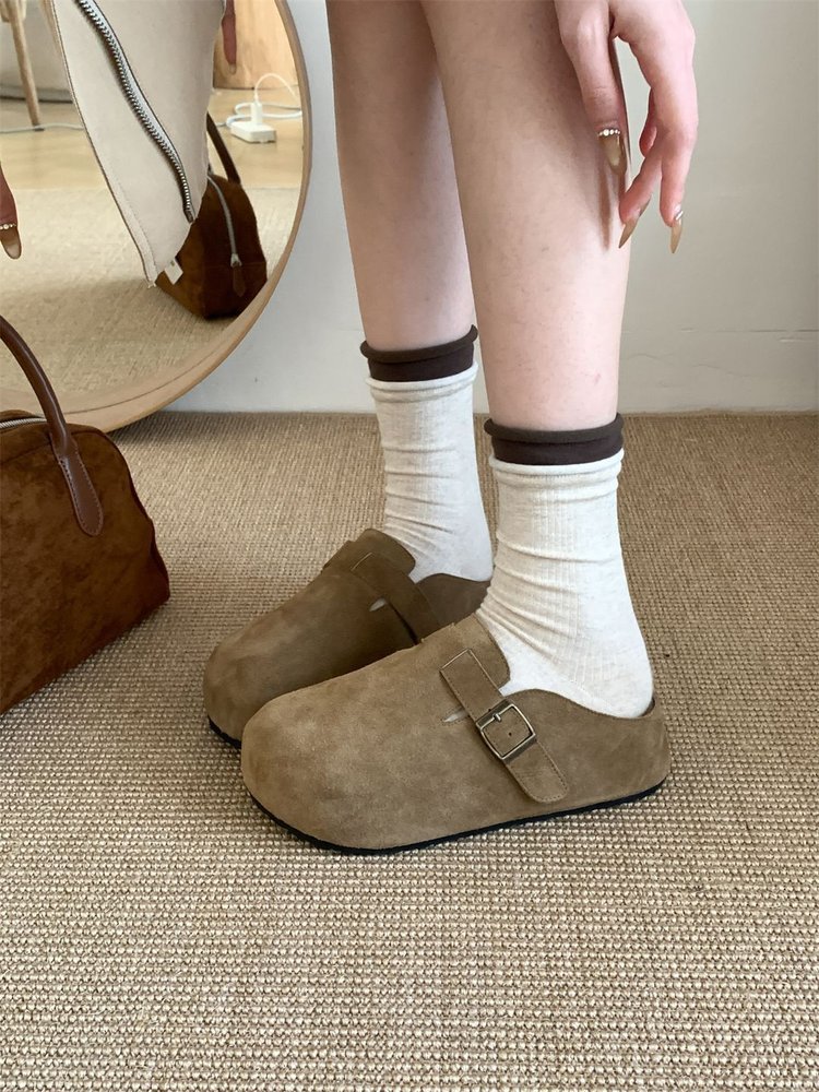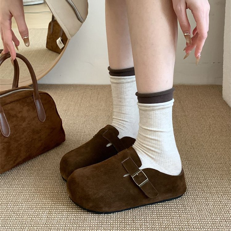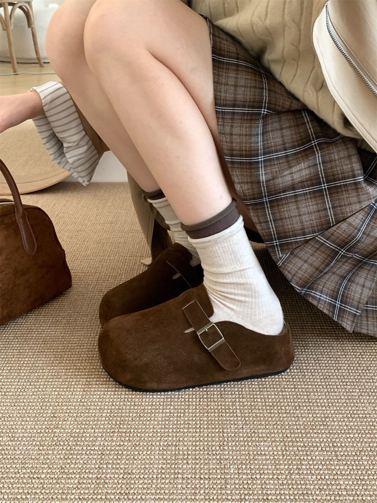 Bocken 플랫폼 신발 여성 2025 Spring Bocken Slip-on 게으른 신발-Baotou 하프 슬리퍼 모리 스타일 내부 높이 증가 단층 신발스토어 가기