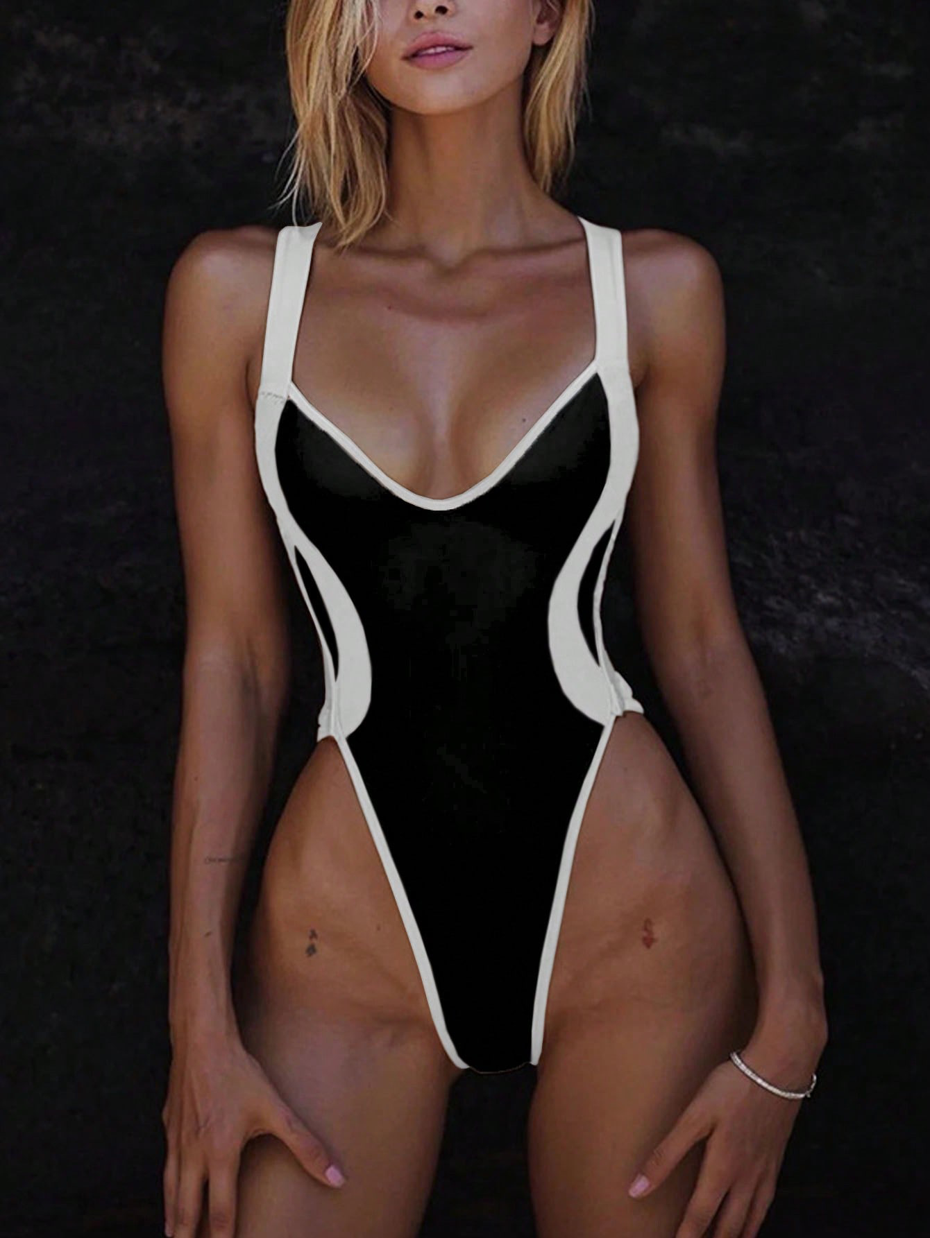 유럽 및 미국 해외 직구 여성 섹시하고 단정한 원피스 수영복 신상 스플라이싱 비키니 고급스러운 느낌 재고 도매