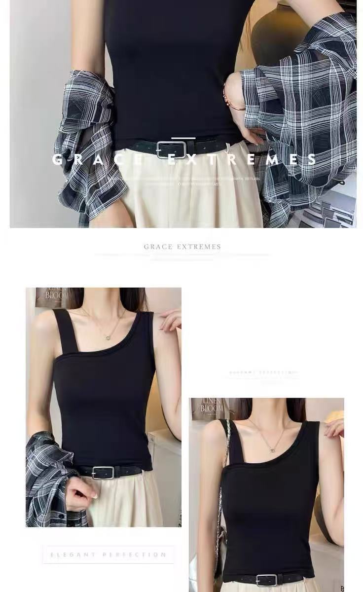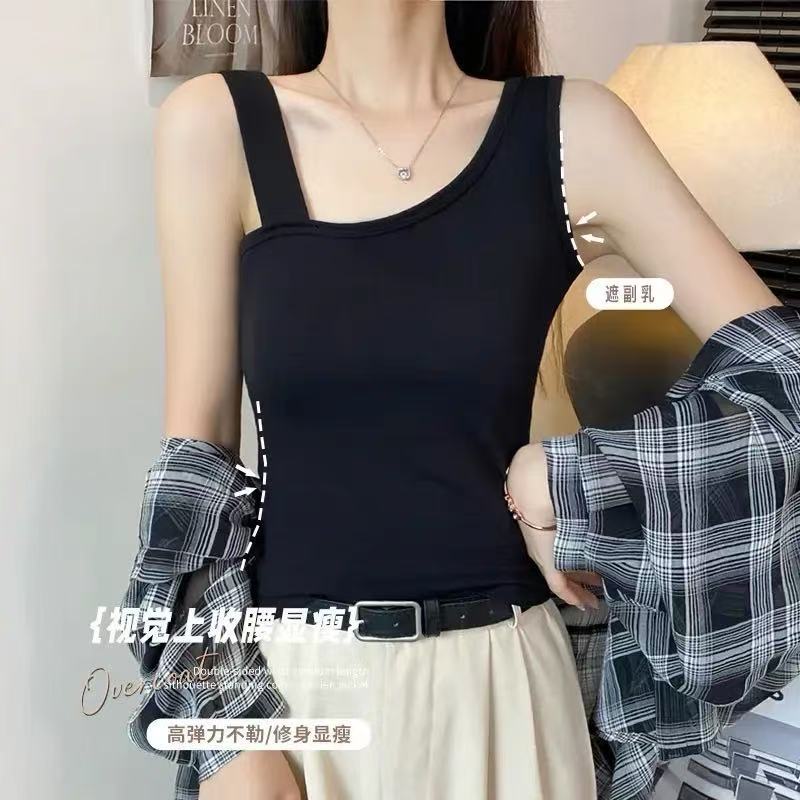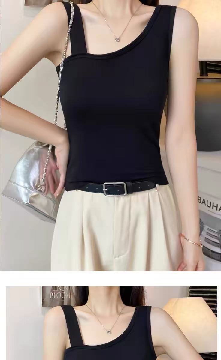 검은 어깨 카미 솔 여성의 여름 내복 아름다운 뒷면 디자인 센스 슬림베이스 민소매 어깨 탑스토어 가기