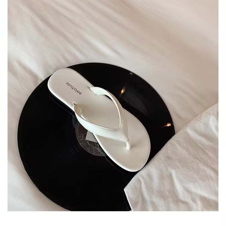 2025년 신상 봄 인조 PU 신발 플랫 바닥 슬리퍼 여성용 경량 고무 밑창 해변 휴가 신발스토어 가기
