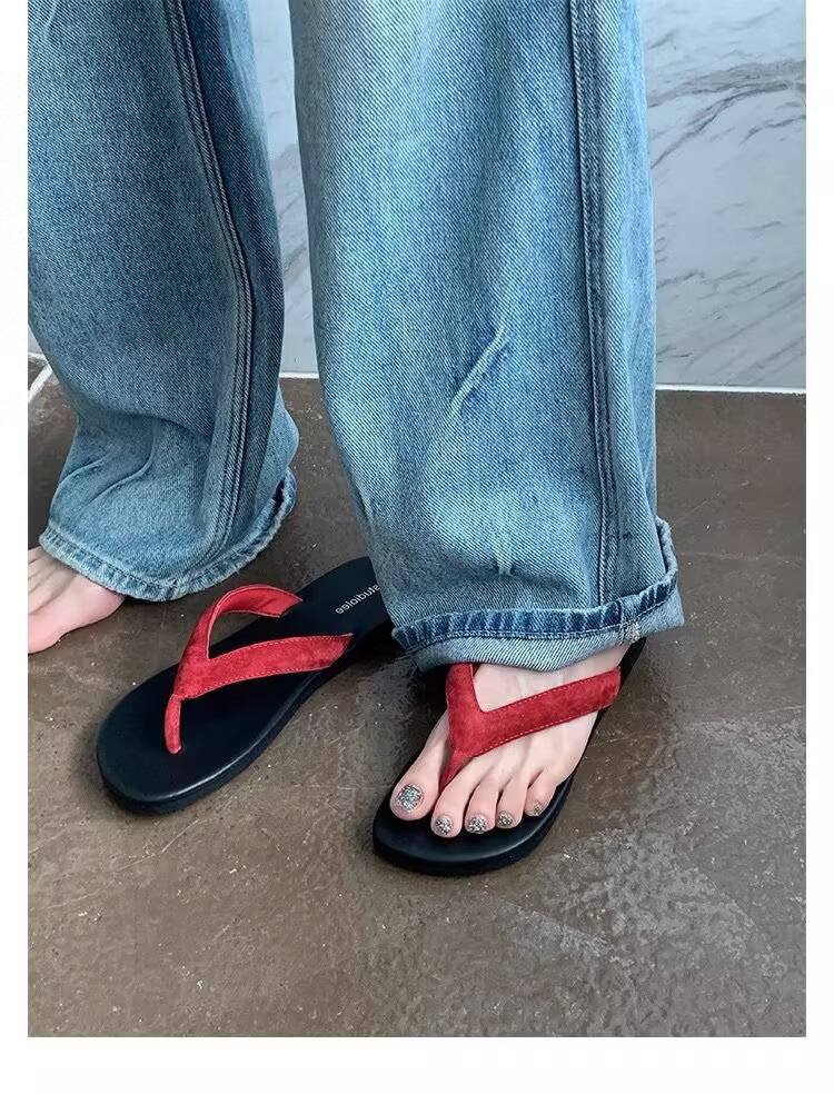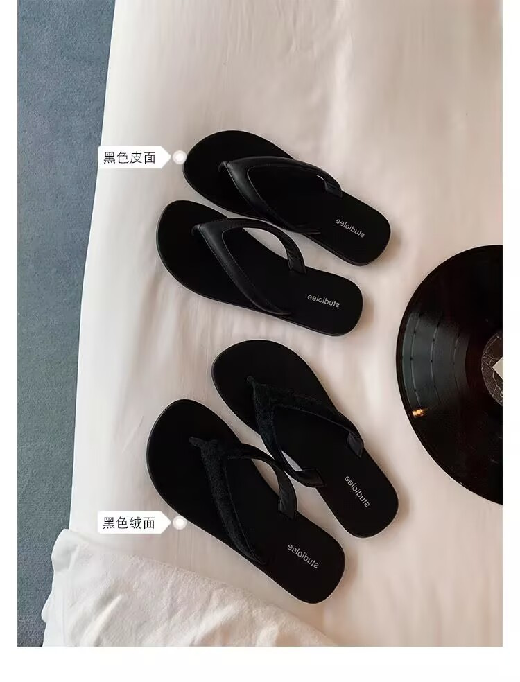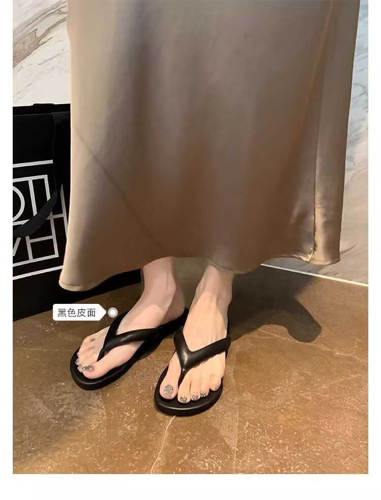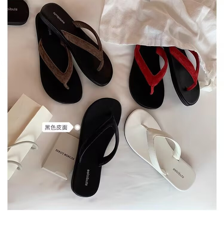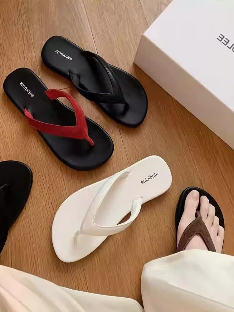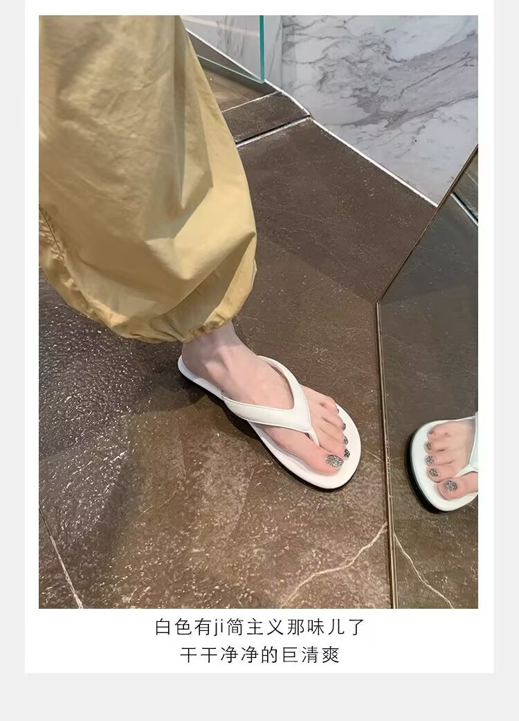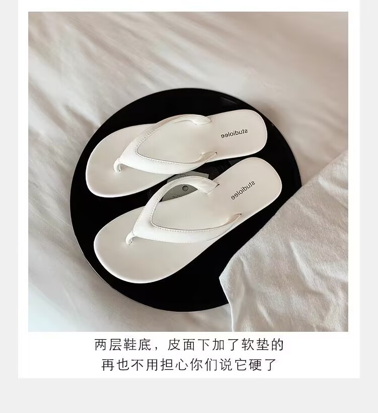 2025년 신상 봄 인조 PU 신발 플랫 바닥 슬리퍼 여성용 경량 고무 밑창 해변 휴가 신발