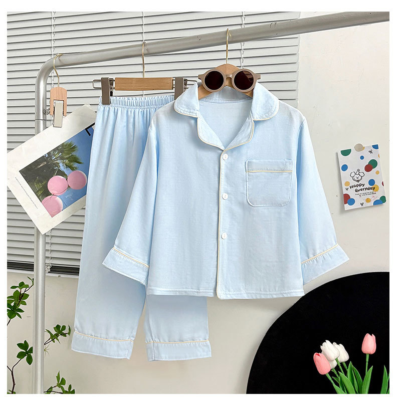 어린이 봄과 여름 잠옷 세트 소년 소녀 옷깃 홈 옷 아기의 긴 소매 2 조각 세트 메쉬 섬유 느슨한