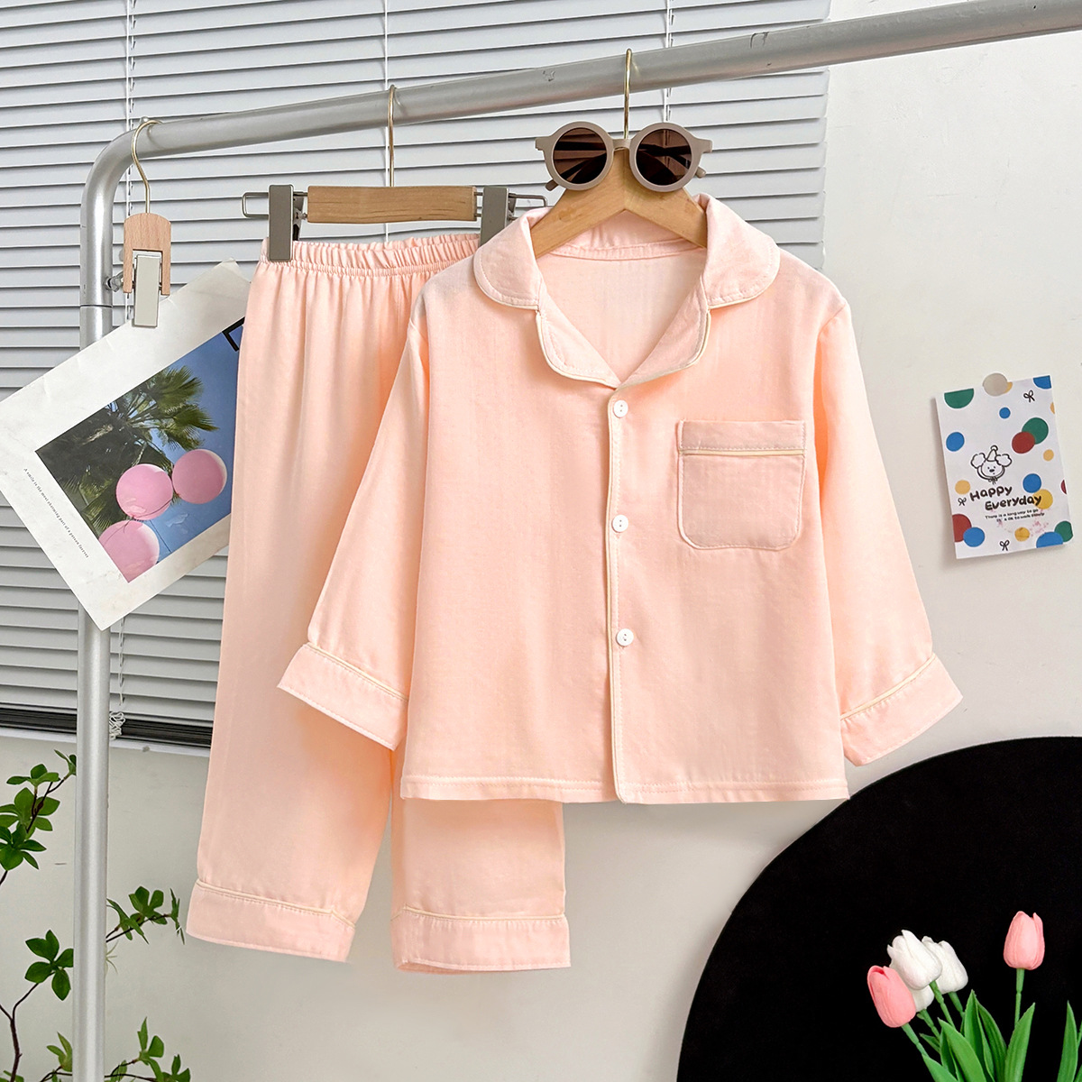 • 봄 여름 단색 홈복 - 핑크