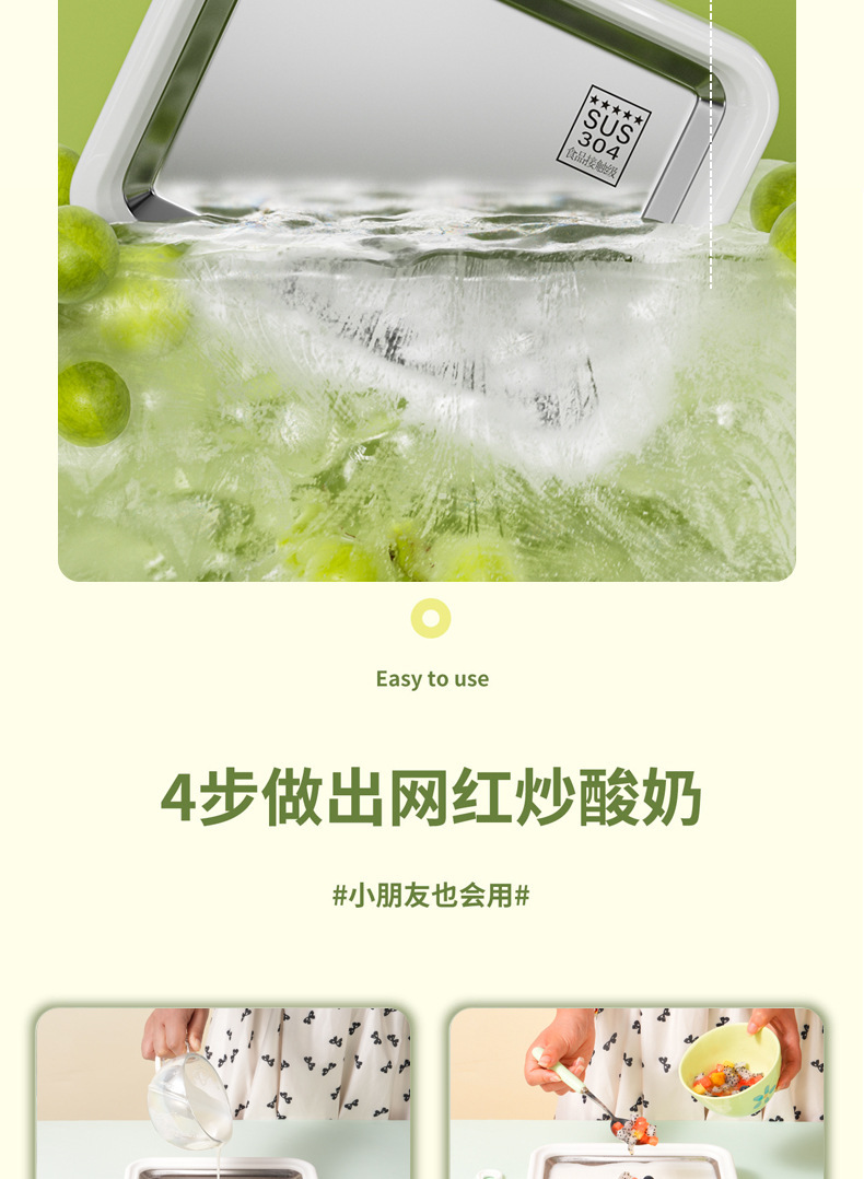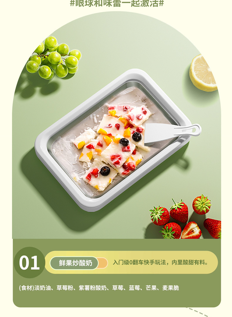 국경 새 스타일 튀긴 아이스 플레이트 가정용 어린이 작은 수제 튀김 신 우유 기계 과일 아이스크림 스테인레스 스틸 튀김 아이스 머신