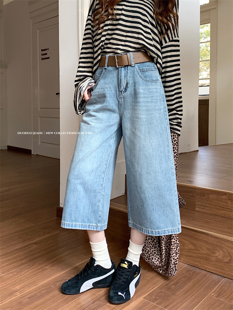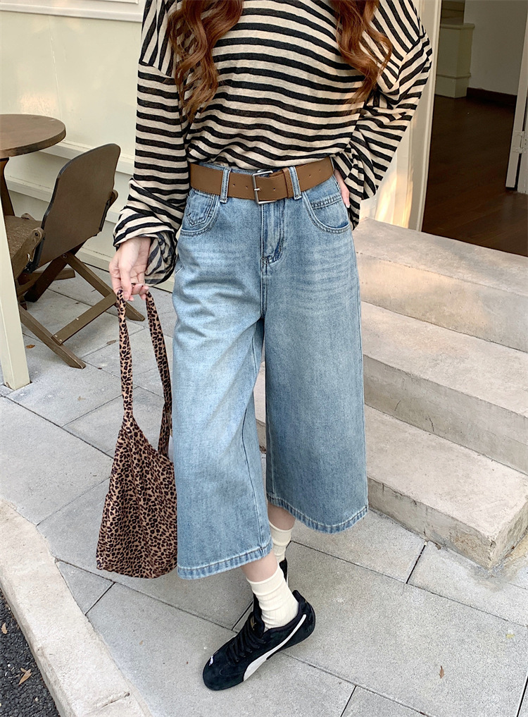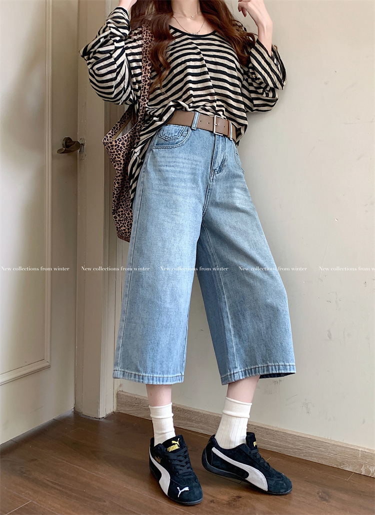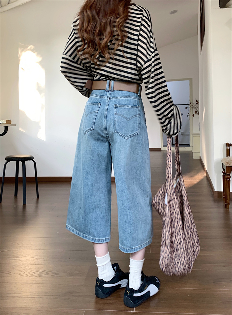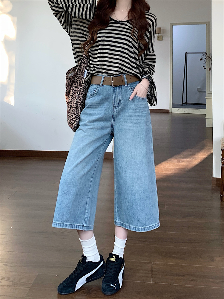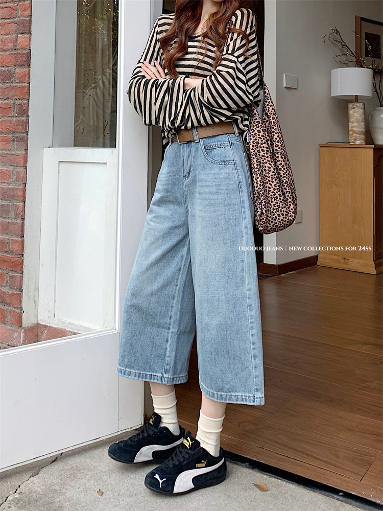 리얼 샷 ~ 미국 복고풍 하이 스트리트 청바지 여성 여름 하이 허리 슬림 스트레이트 레그 와이드 레그 팬츠 79635