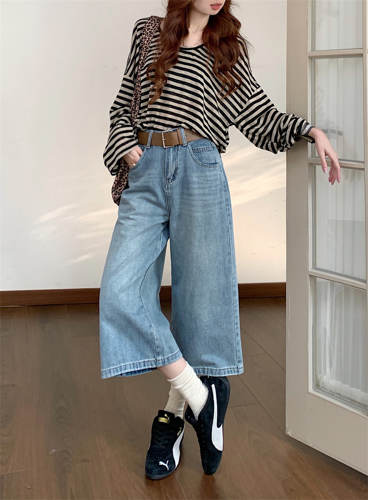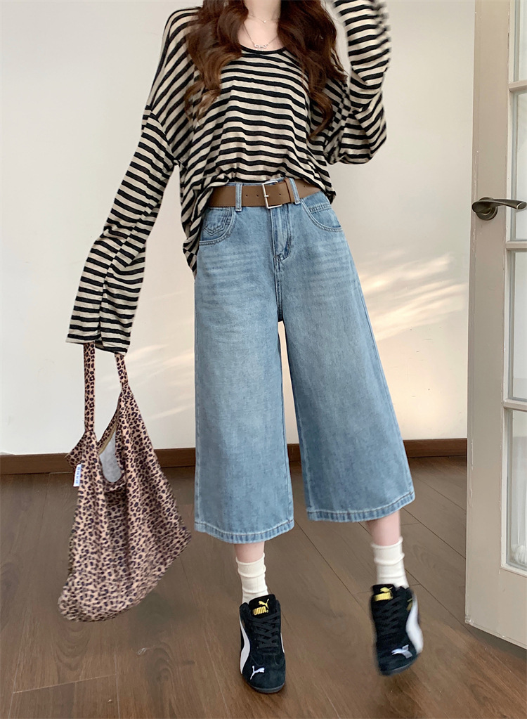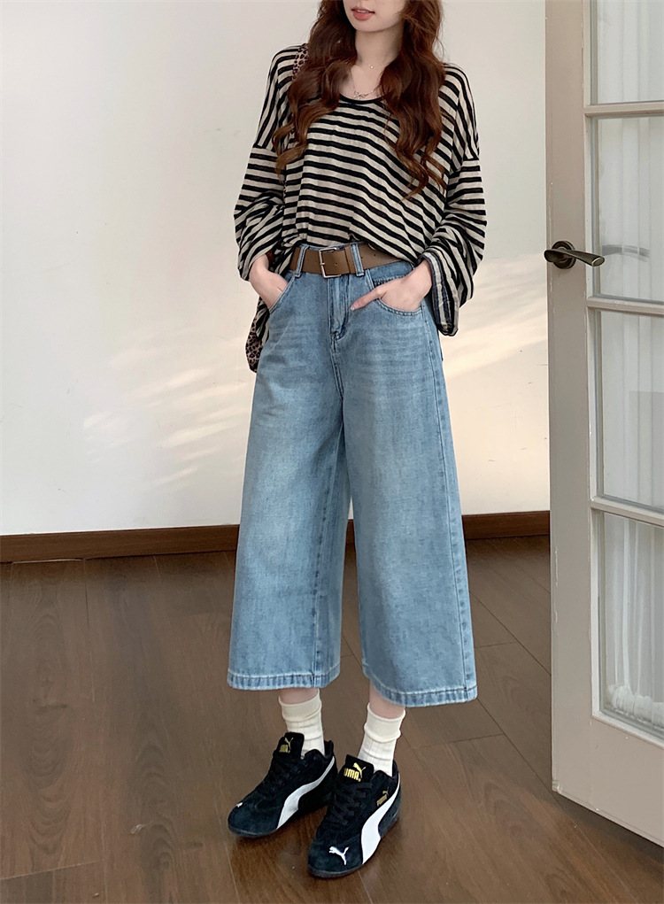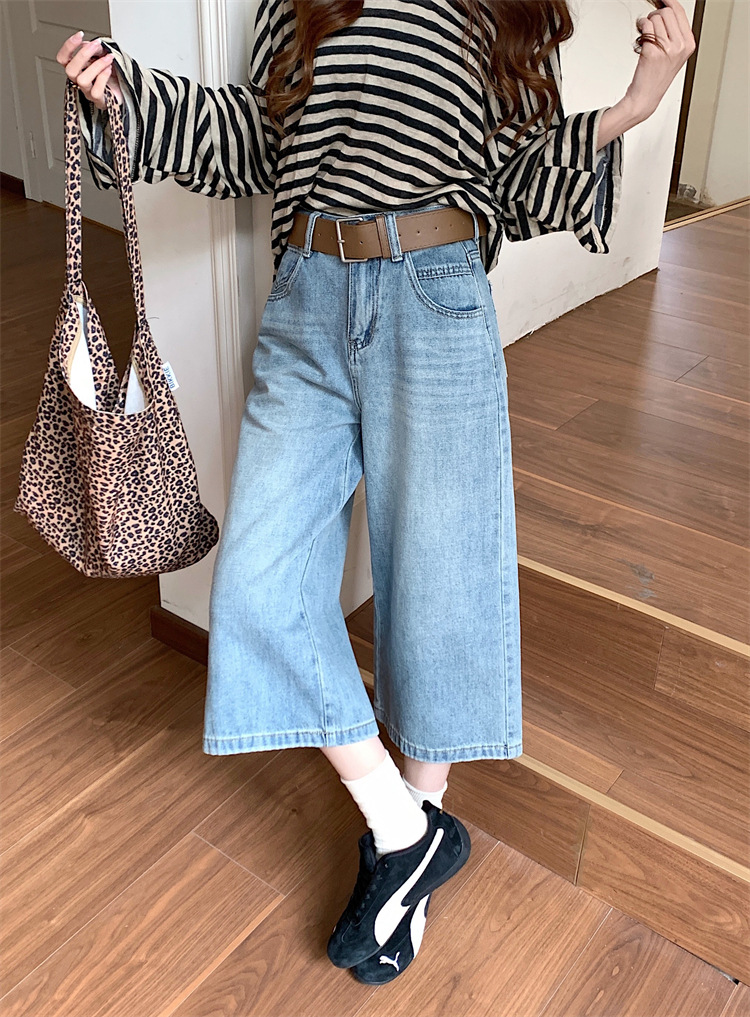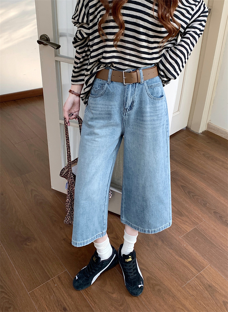 리얼 샷 ~ 미국 복고풍 하이 스트리트 청바지 여성 여름 하이 허리 슬림 스트레이트 레그 와이드 레그 팬츠 79635