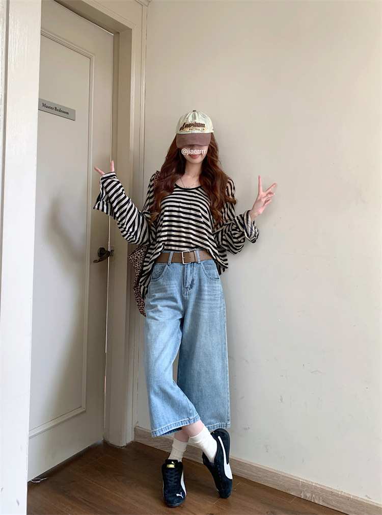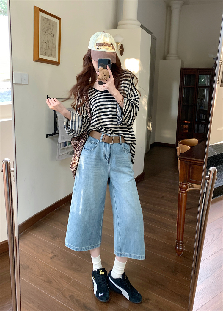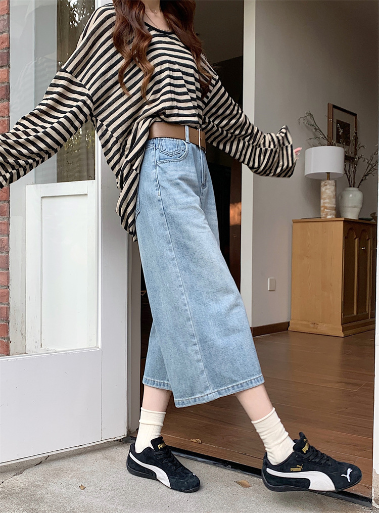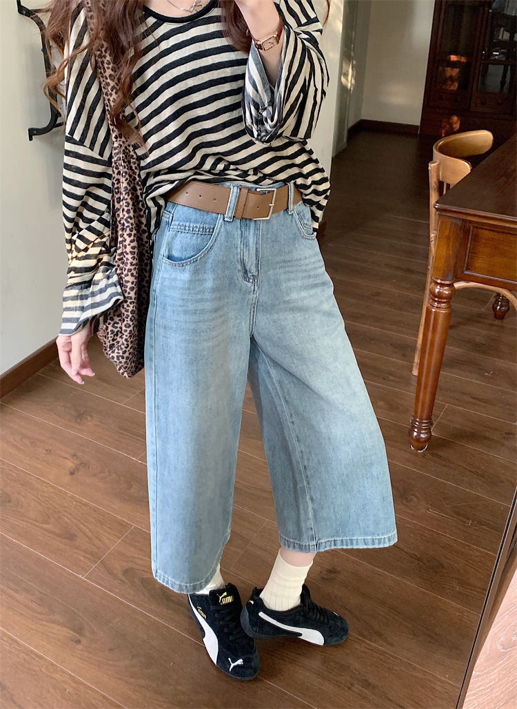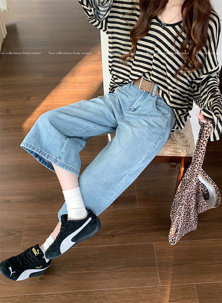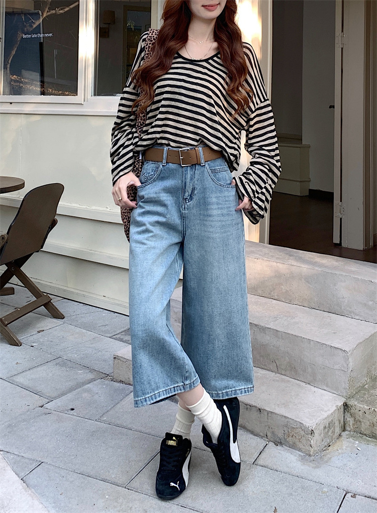 리얼 샷 ~ 미국 복고풍 하이 스트리트 청바지 여성 여름 하이 허리 슬림 스트레이트 레그 와이드 레그 팬츠 79635