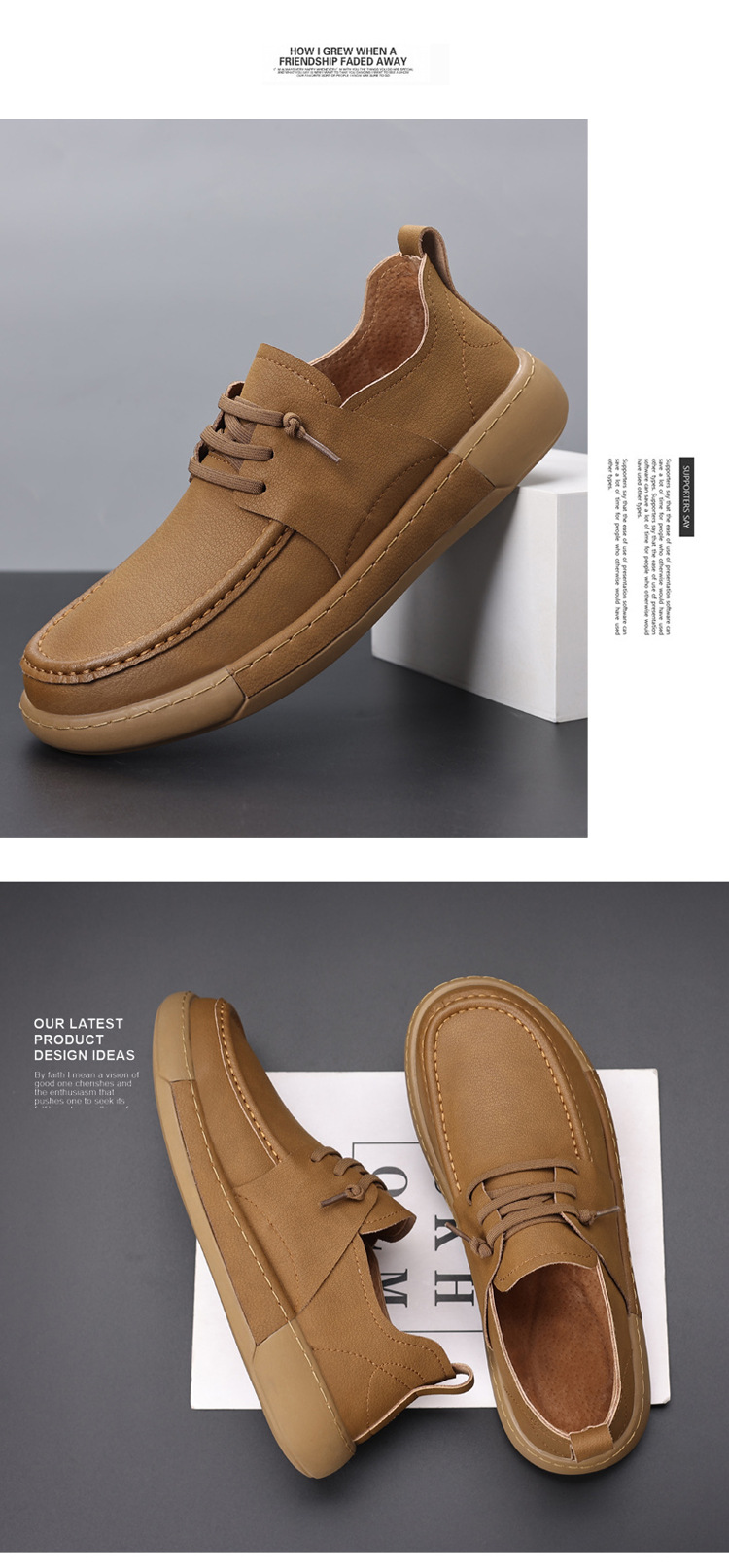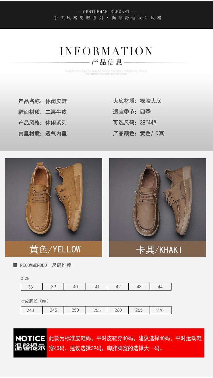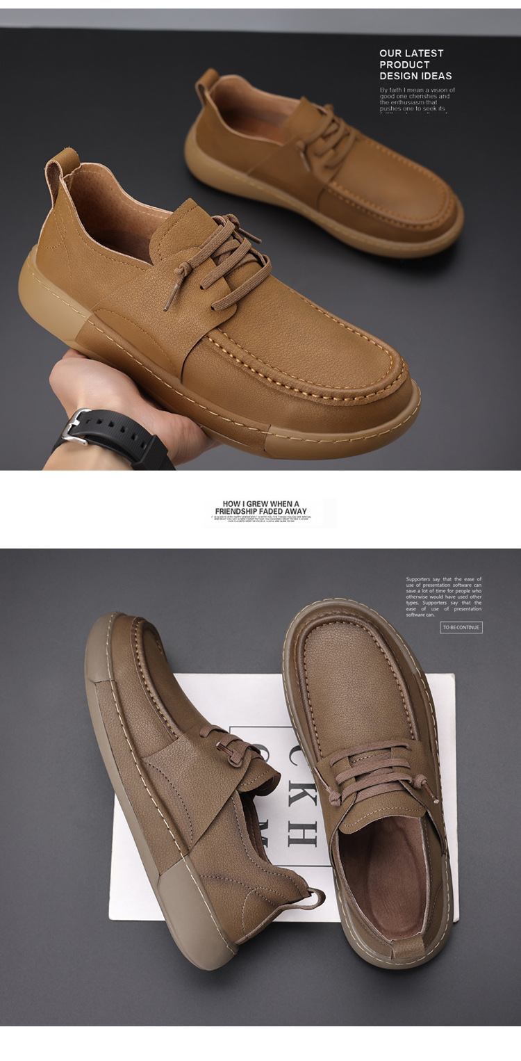 남성 신발 캐주얼 가죽 신발 2025 야외 작업 신발 경량 슬립 온 핸드 스티치 대형 가죽 신발 트렌디 남성 스타일스토어 가기