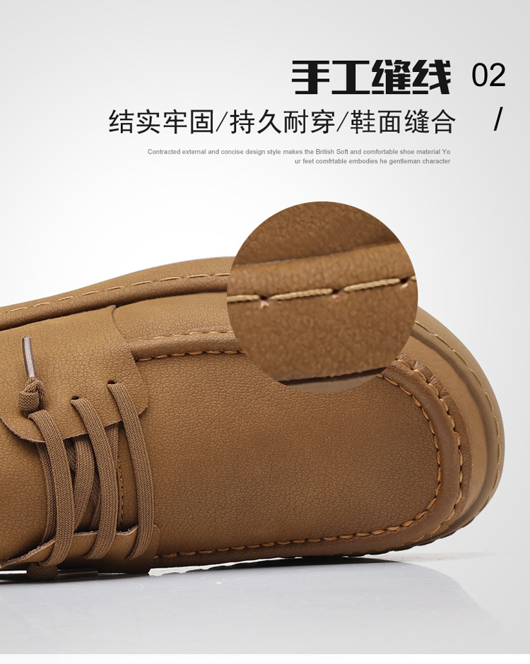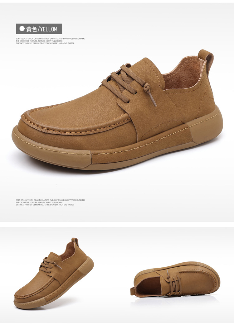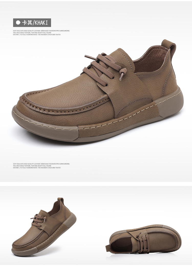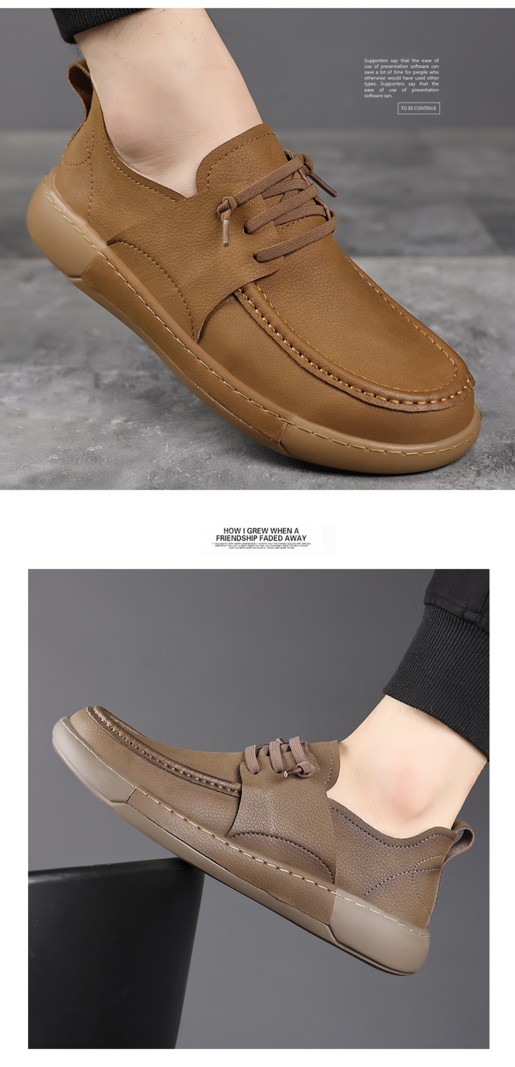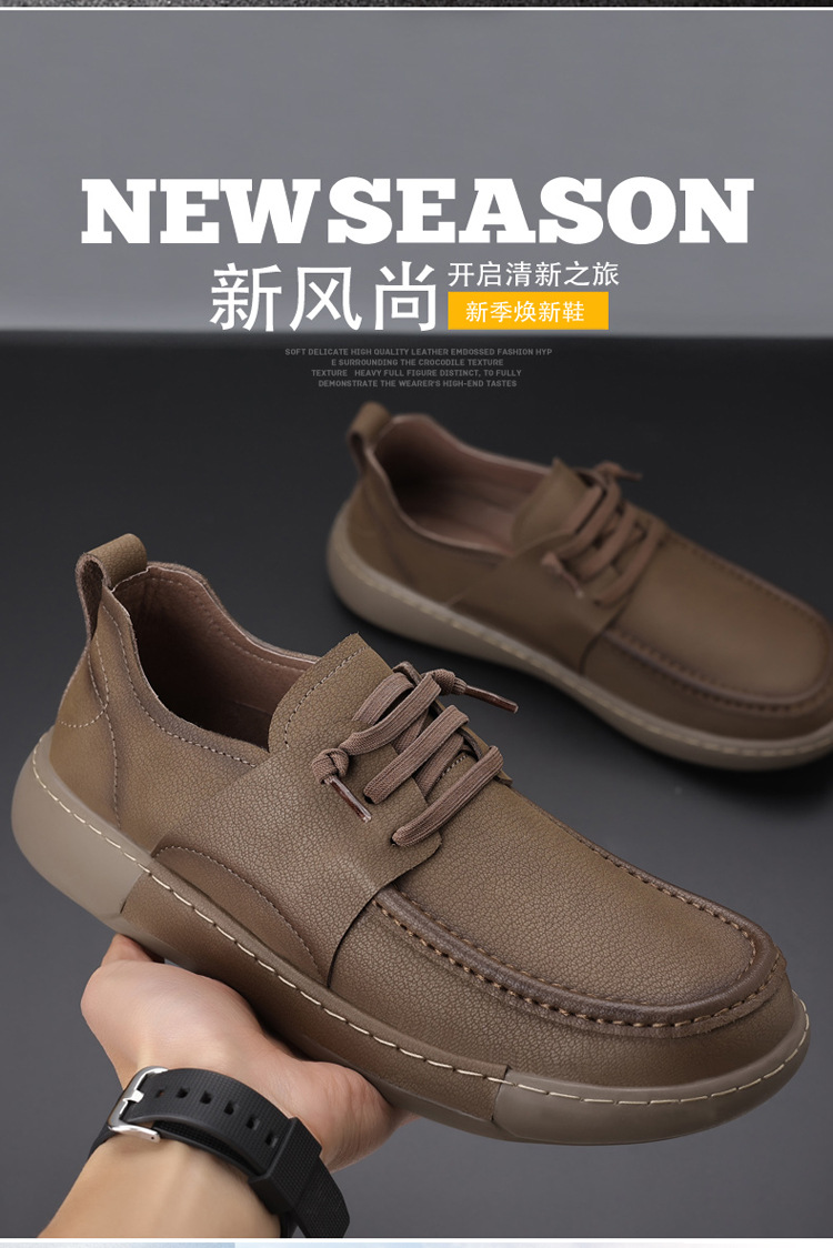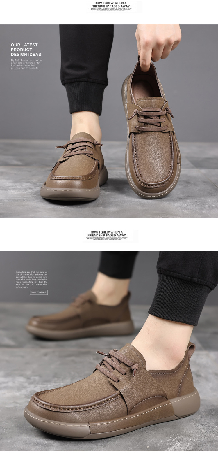 남성 신발 캐주얼 가죽 신발 2025 야외 작업 신발 경량 슬립 온 핸드 스티치 대형 가죽 신발 트렌디 남성 스타일