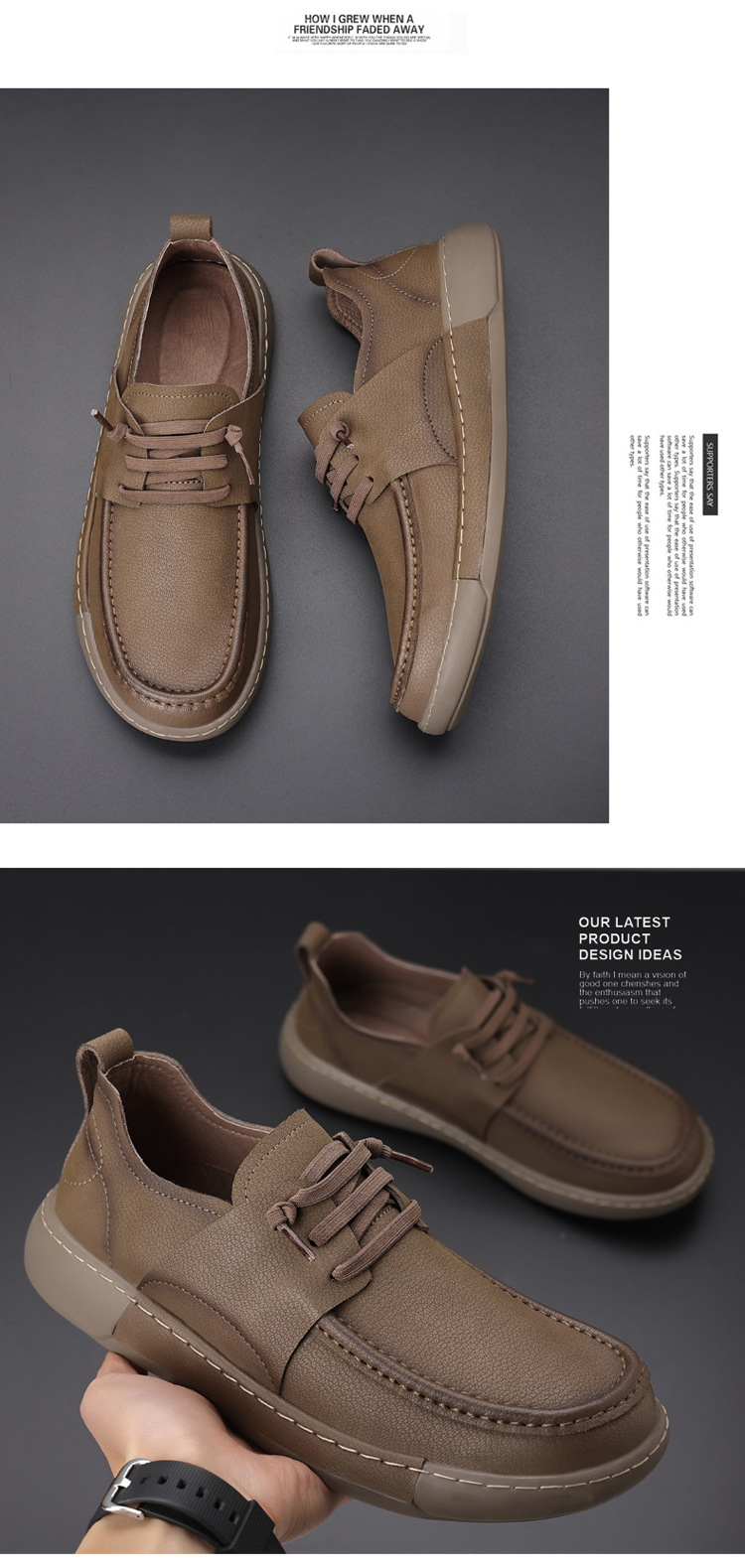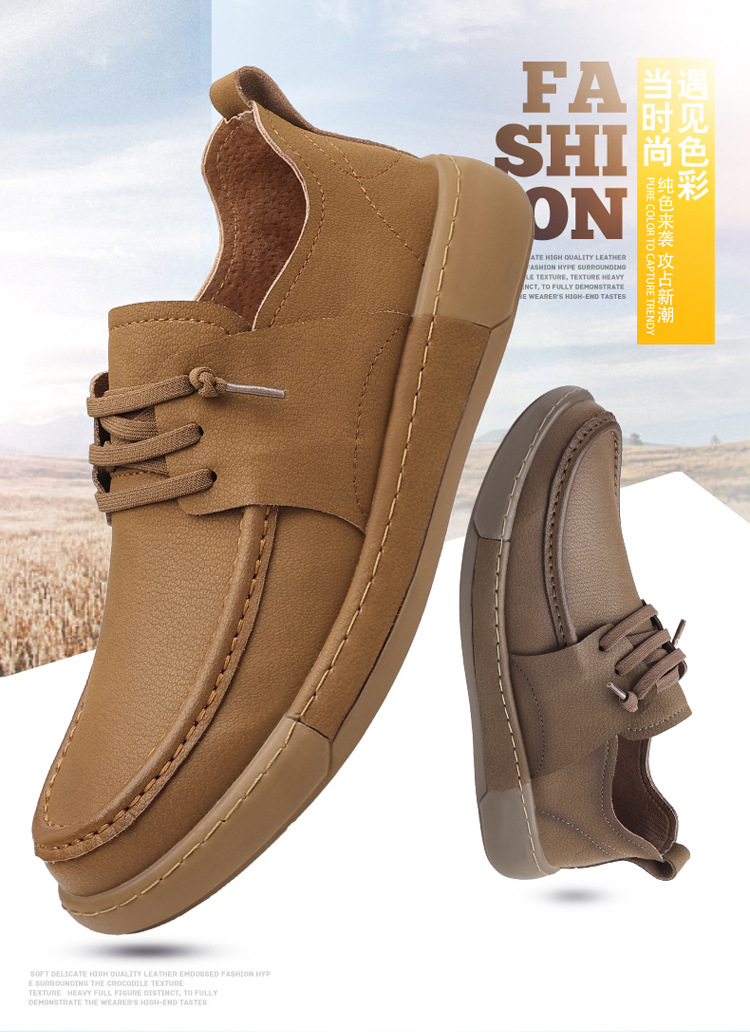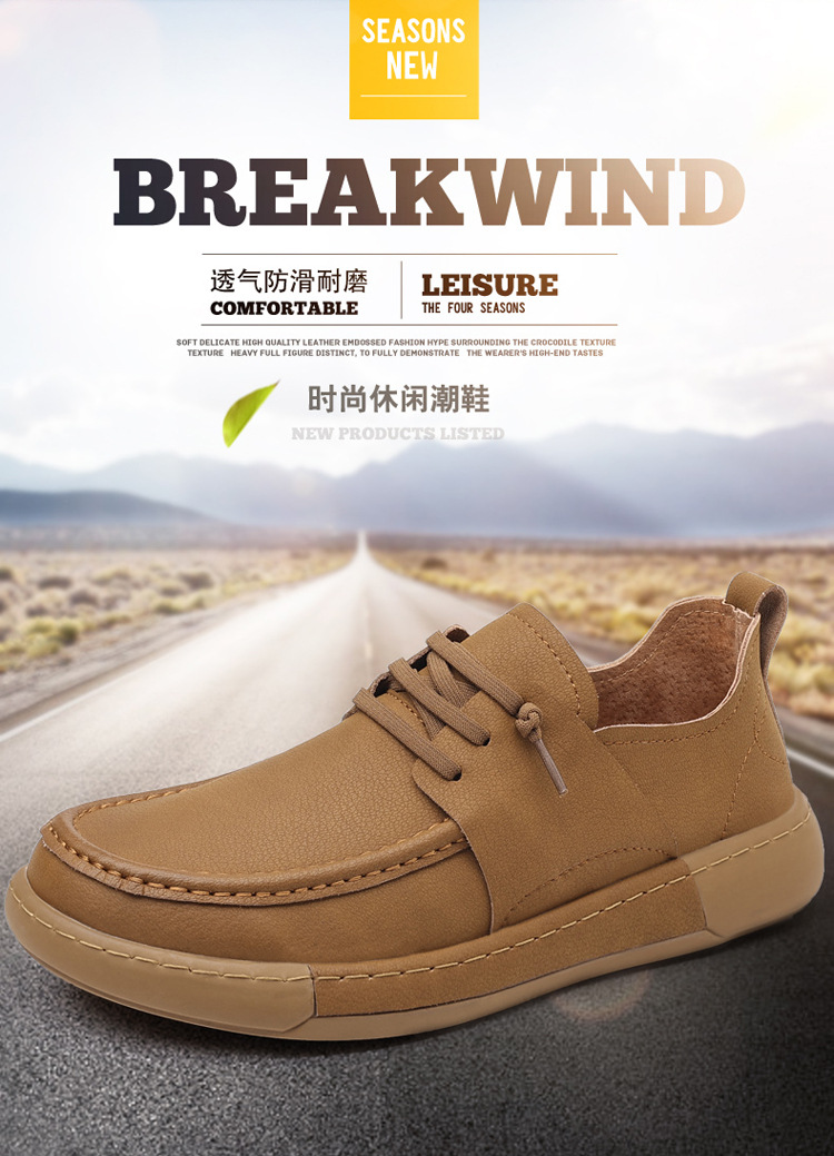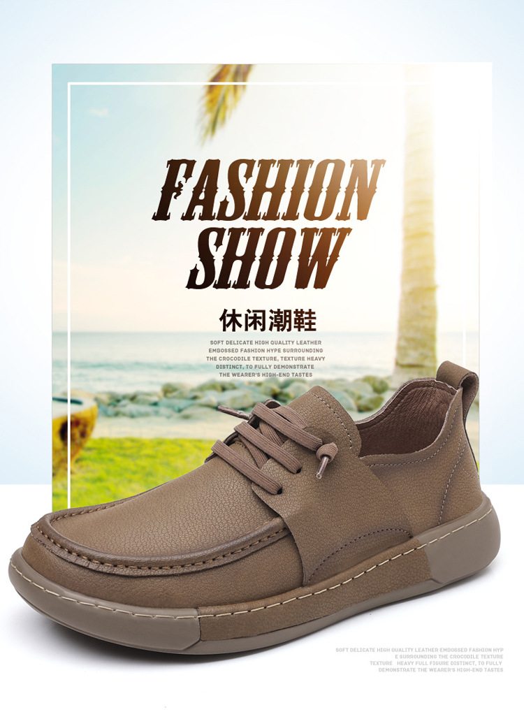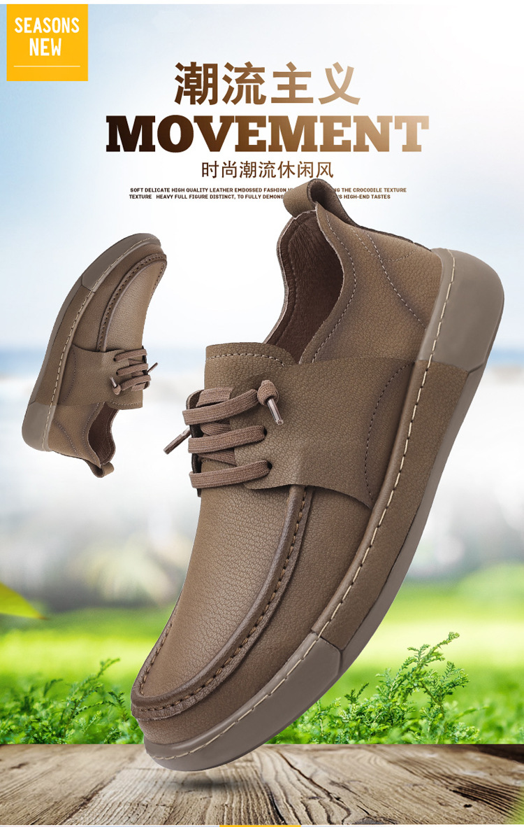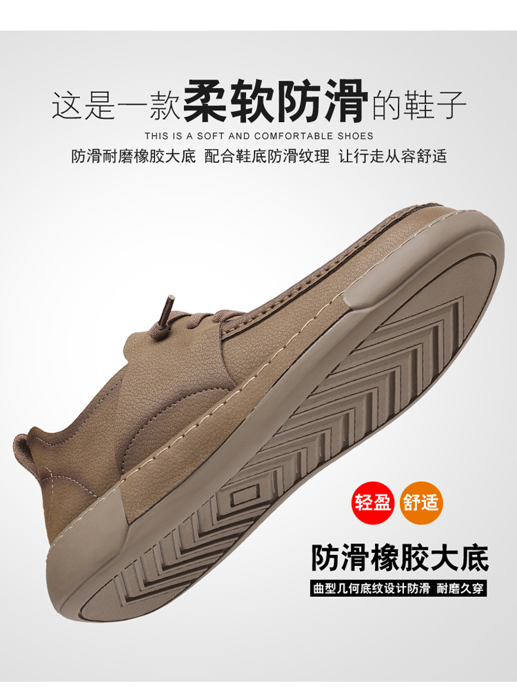 남성 신발 캐주얼 가죽 신발 2025 야외 작업 신발 경량 슬립 온 핸드 스티치 대형 가죽 신발 트렌디 남성 스타일