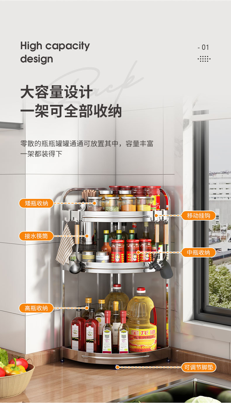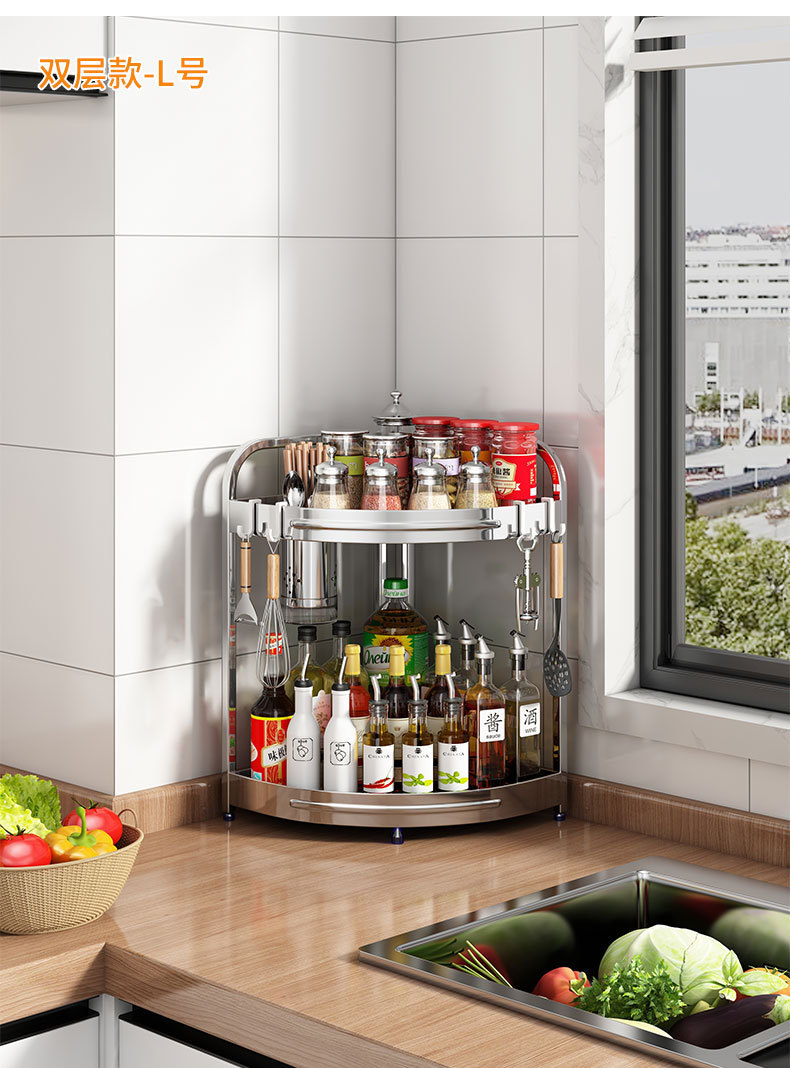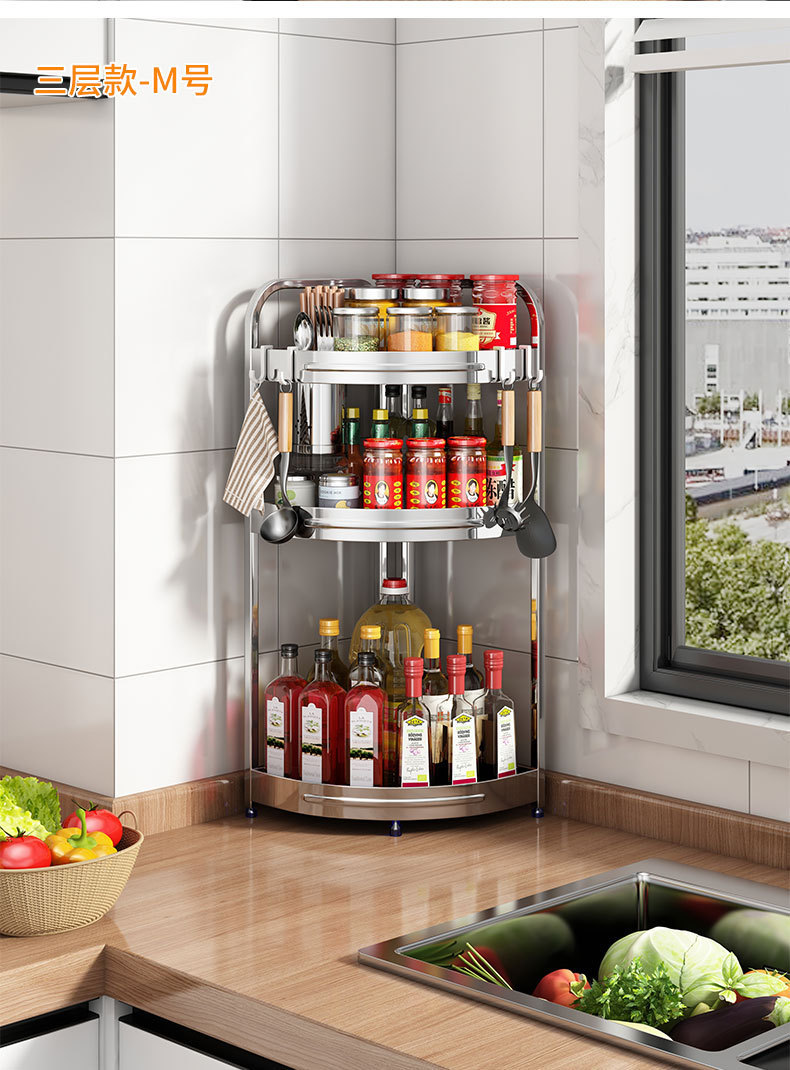 스테인레스 스틸 주방 보관함 코너 삼각대 기름 소금 소스 식초 다기능 가정용 조리대 조미료 보관함스토어 가기