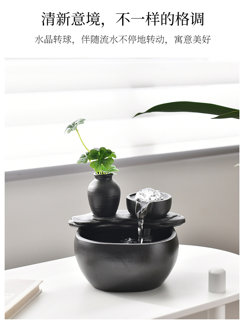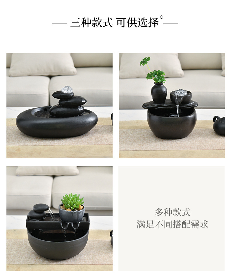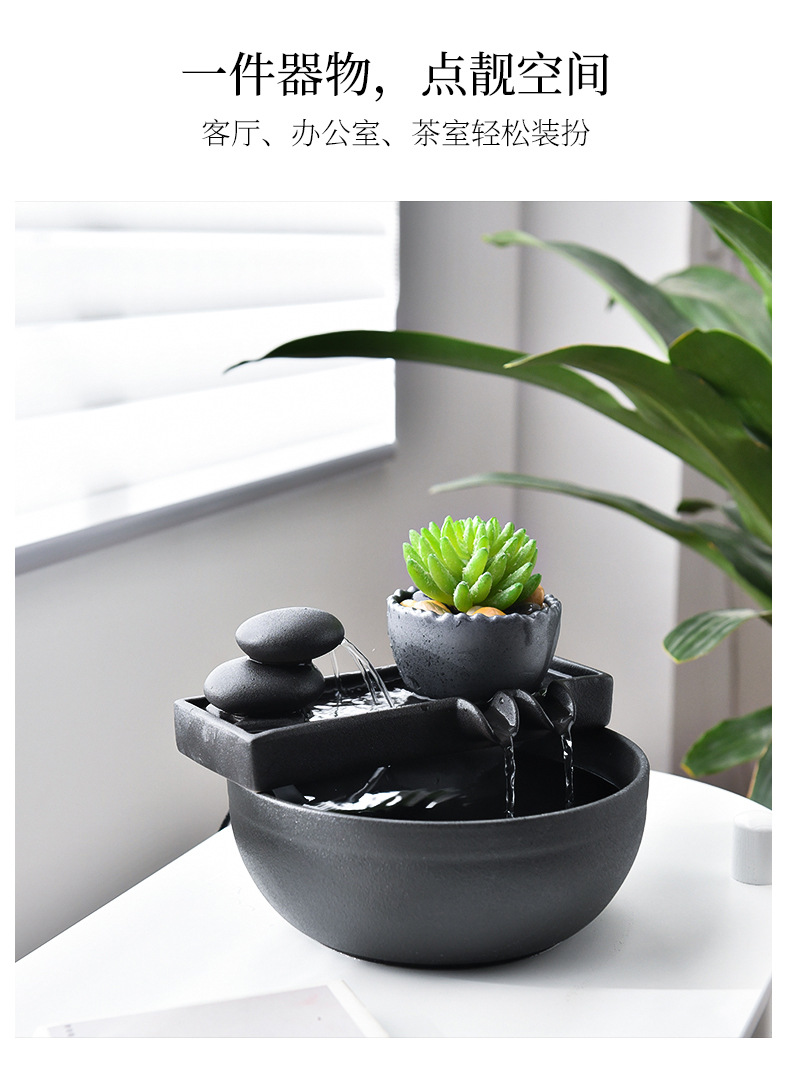 현대 간단한 흐르는 물 분수 가습 장식품 세라믹 홈 거실 사무실 데스크탑 TV 캐비닛 오프닝 선물