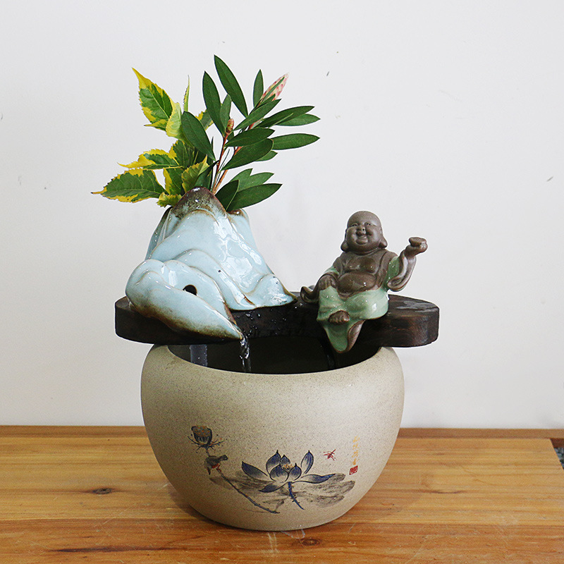 현대 간단한 흐르는 물 분수 가습 장식품 세라믹 홈 거실 사무실 데스크탑 TV 캐비닛 오프닝 선물스토어 가기